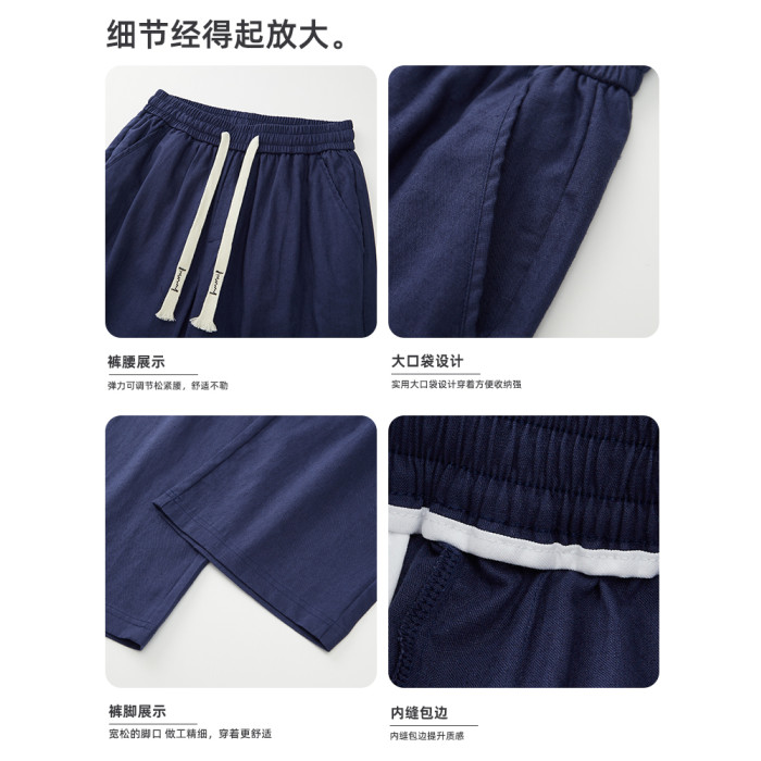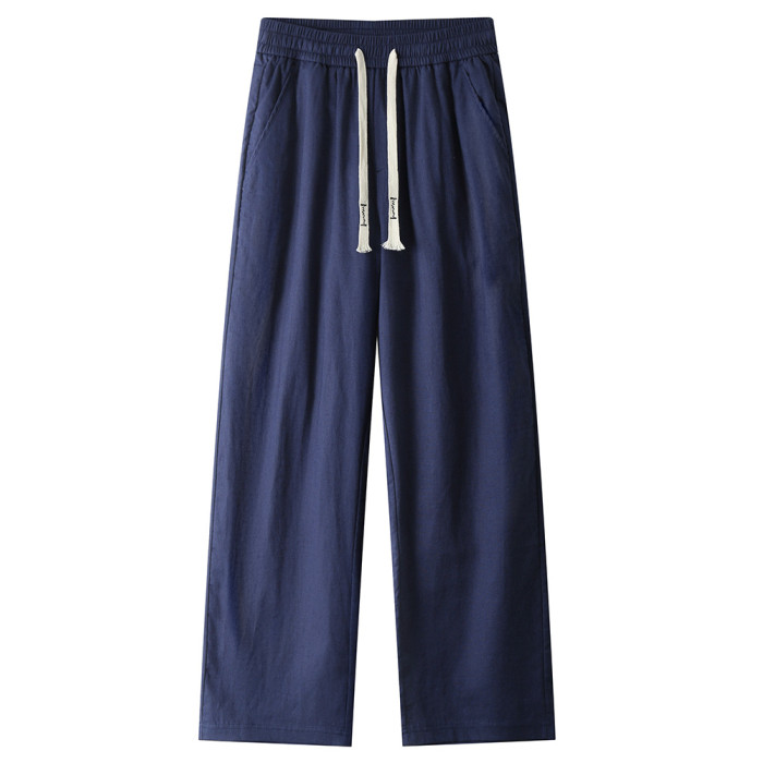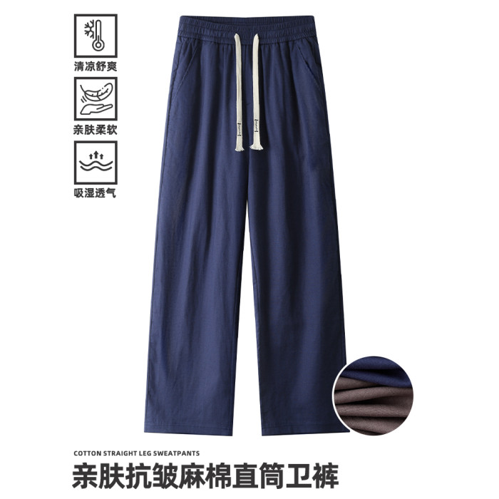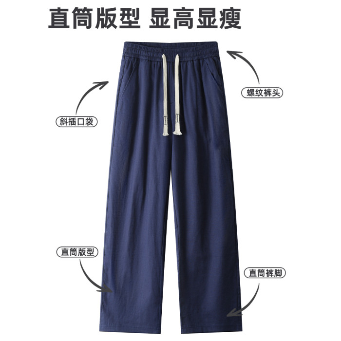 高品質春夏褲子棉麻亞麻濶腿褲男長褲薄款青少年休閒褲直筒褲子男