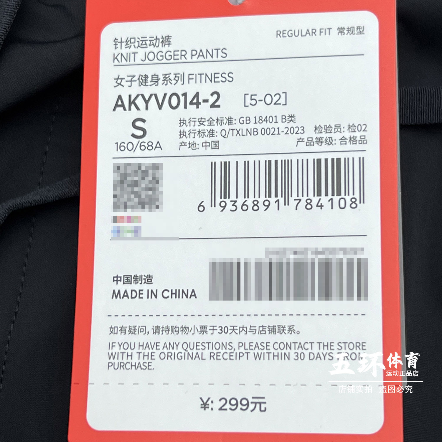 李甯衛褲 2025夏季新品女子束腳防曬冰感舒適針織運動褲AKYV014
