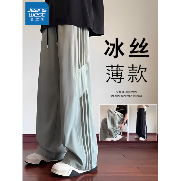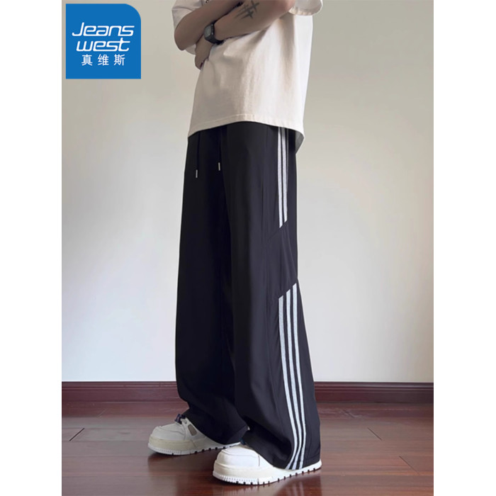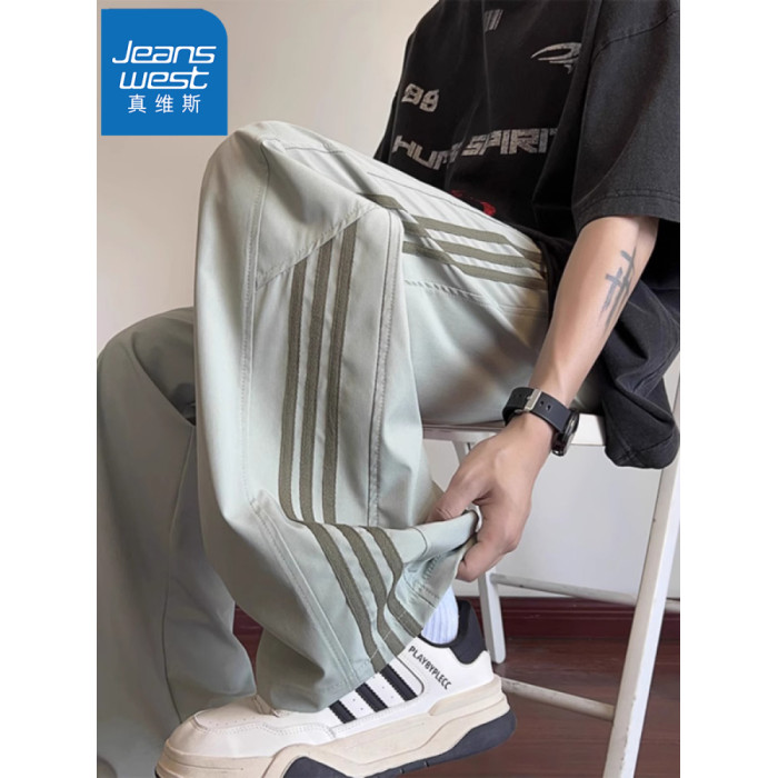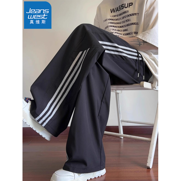 真維斯夏季條紋濶腿褲男2025新款男士休閒長褲薄款青少年運動褲男