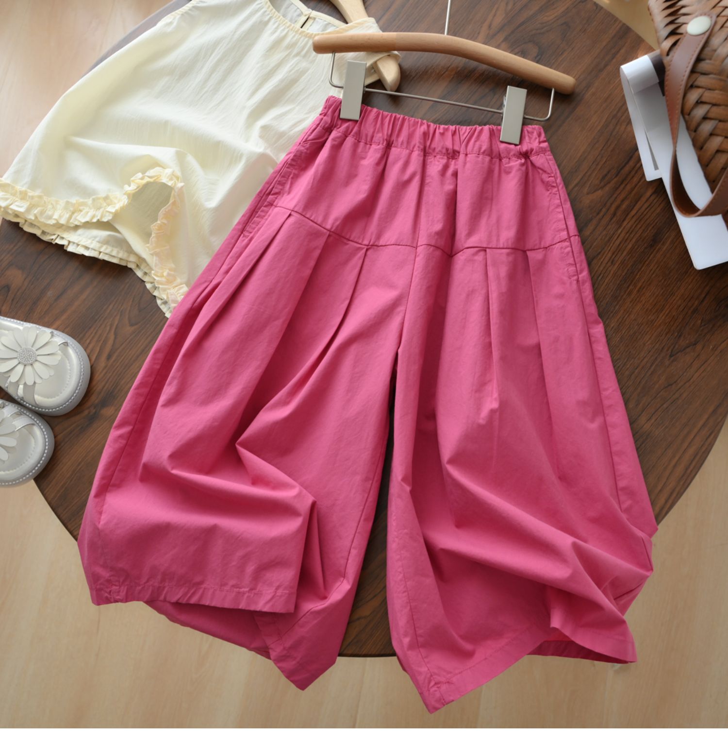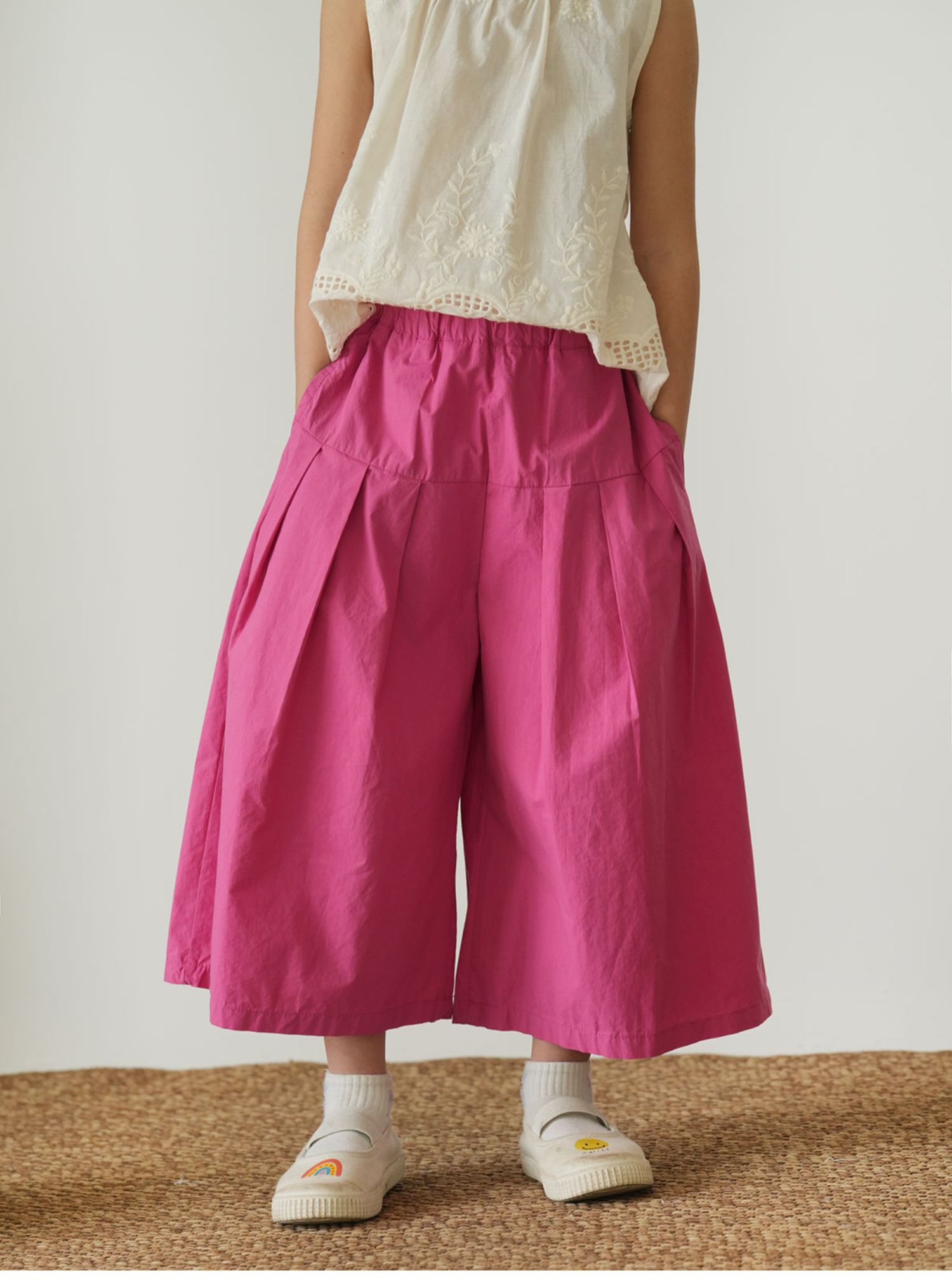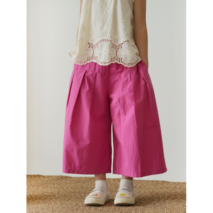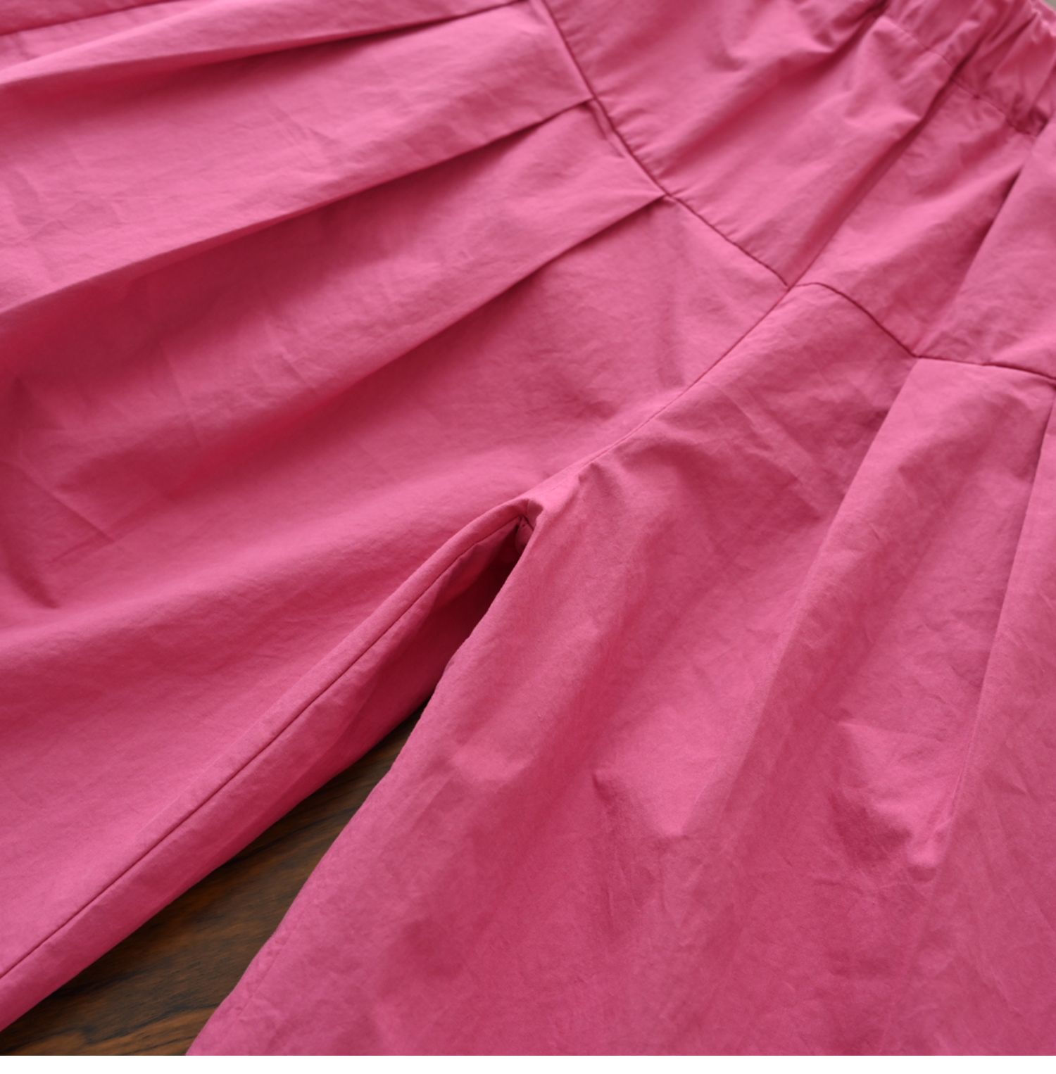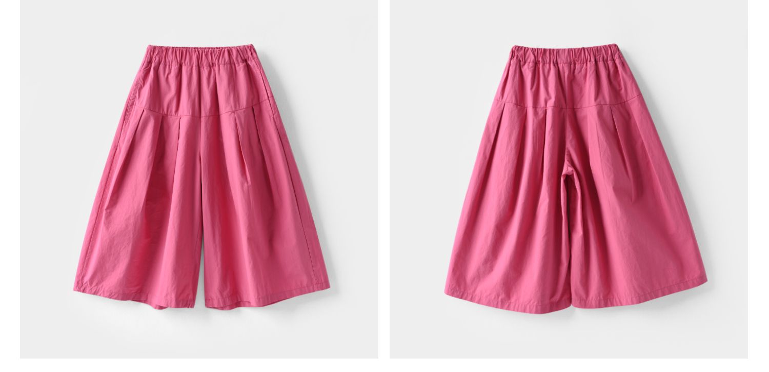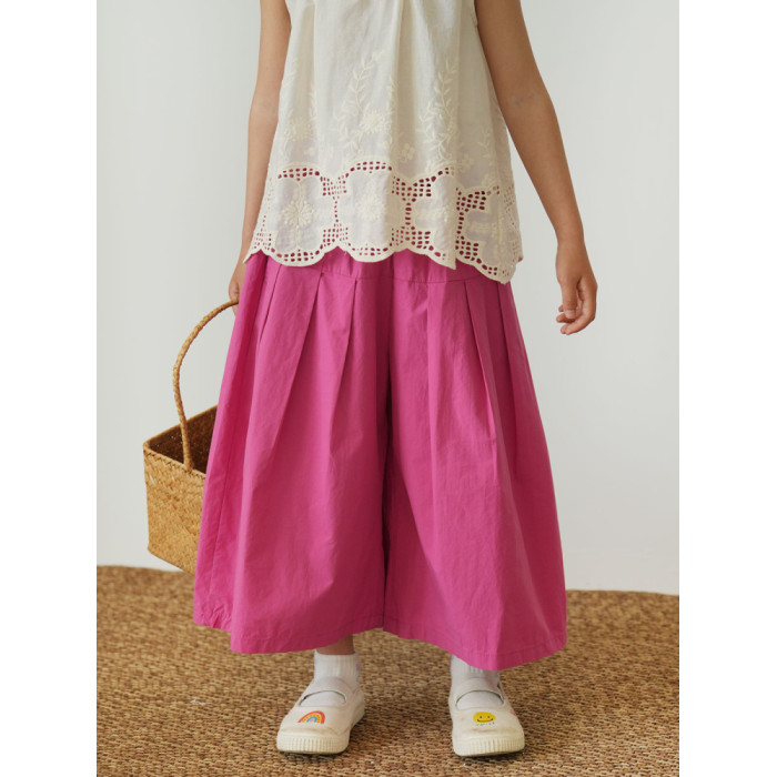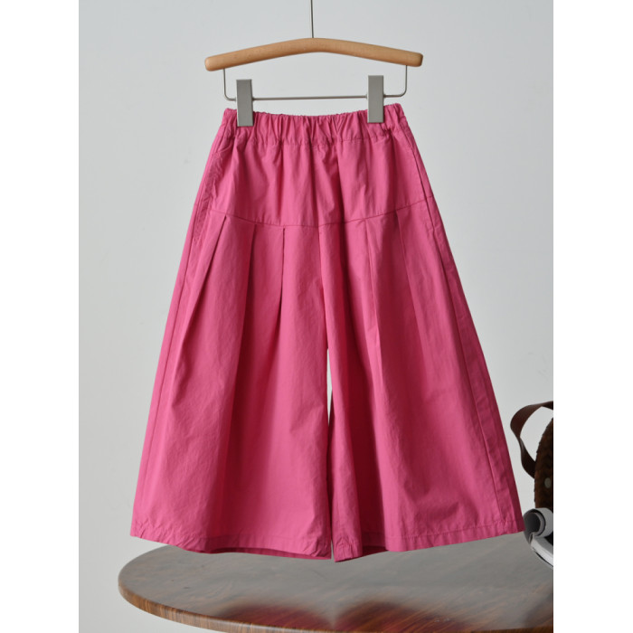 60支水洗全棉 兒童寬松濶腿花苞褲 女童玫紅百搭八分褲 夏款 童裝