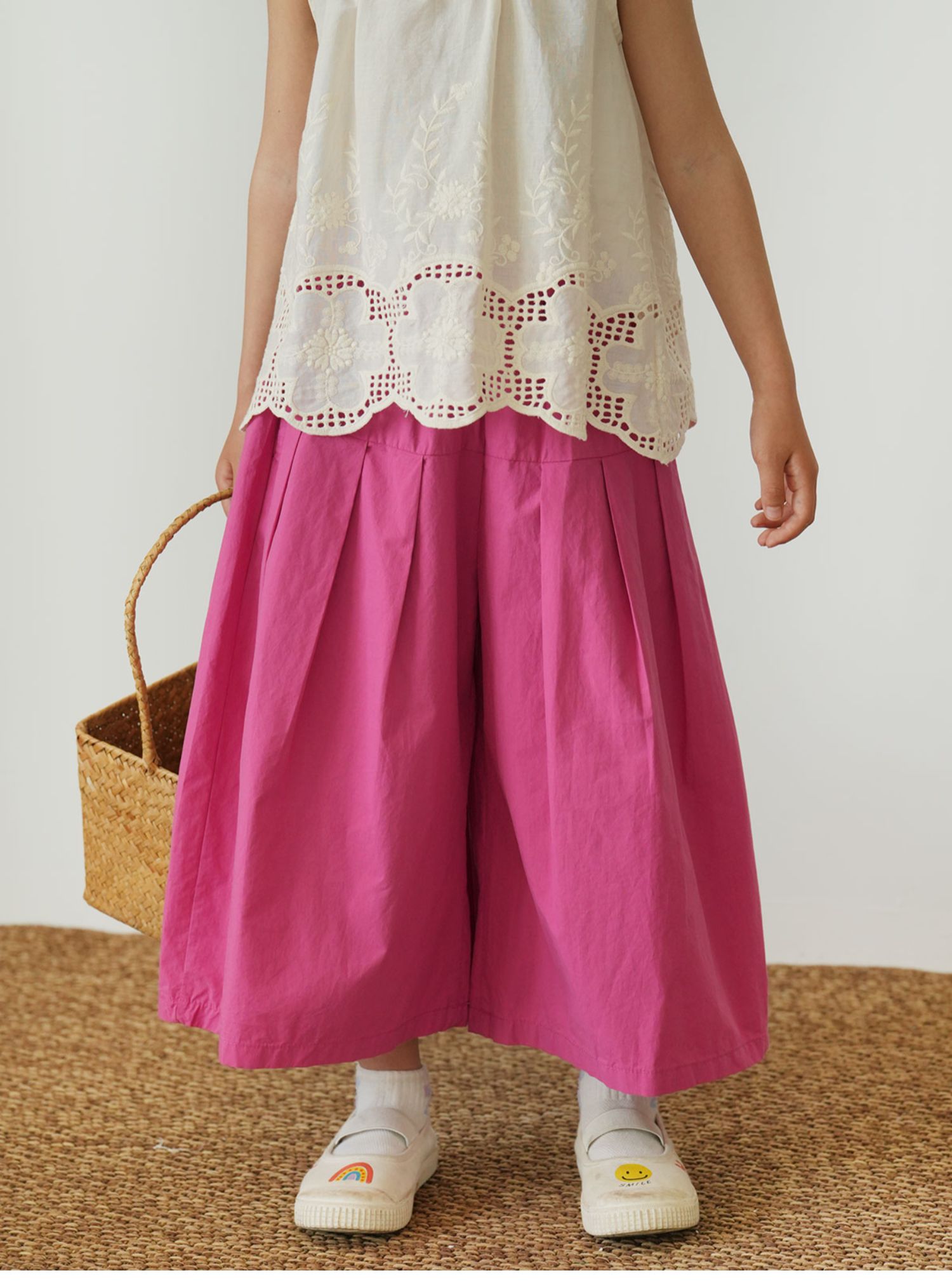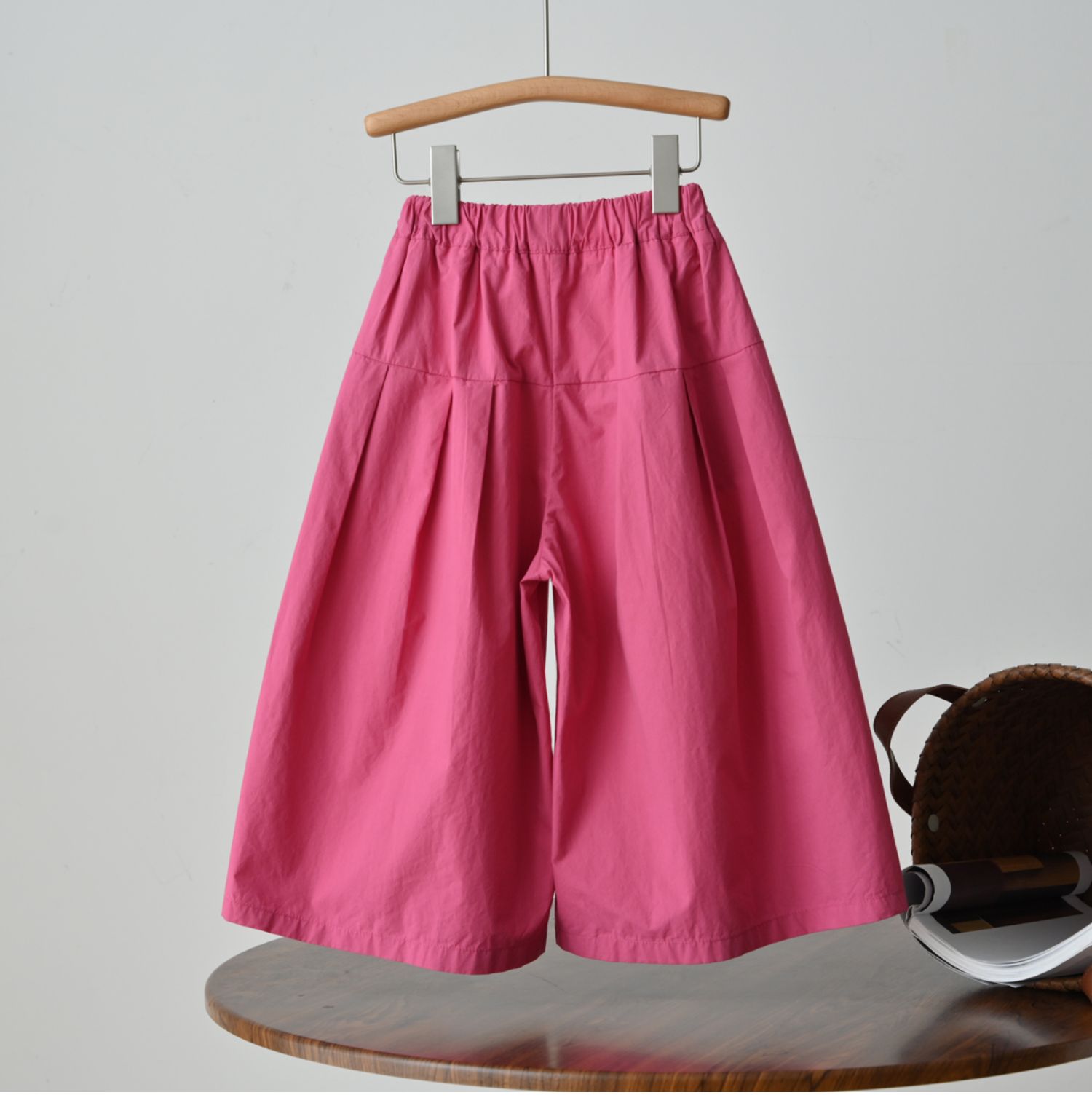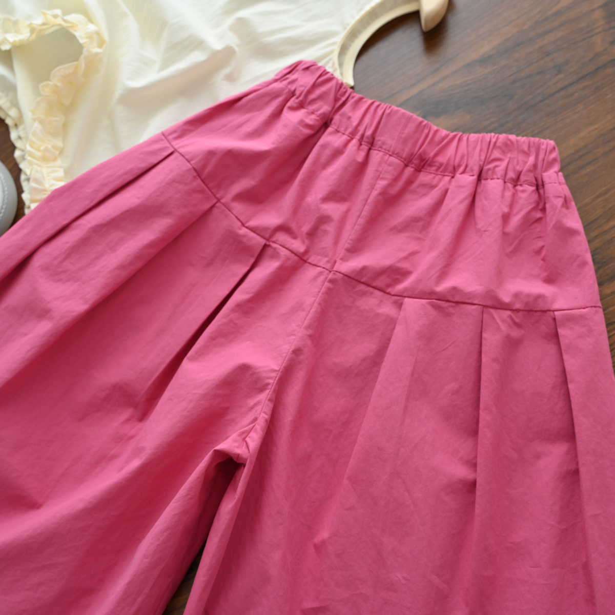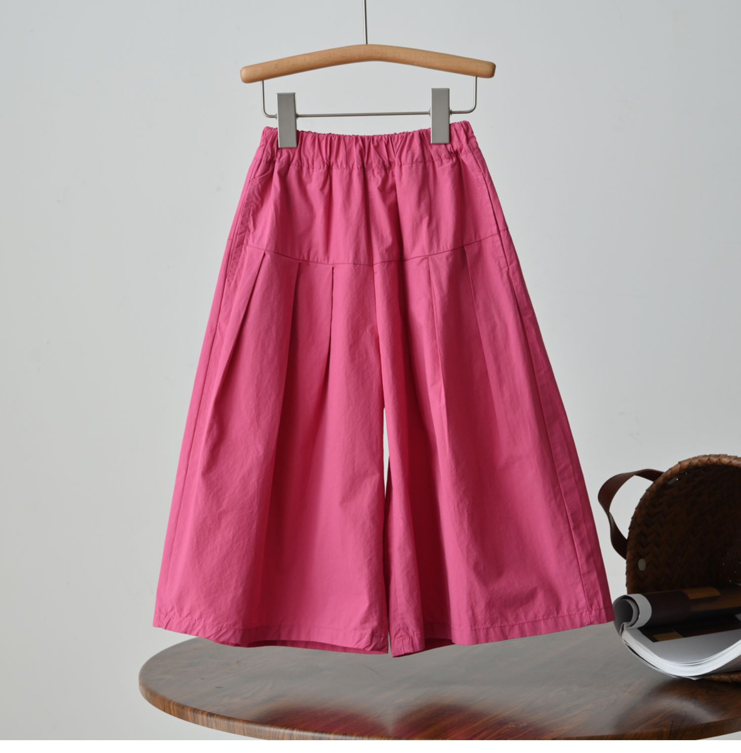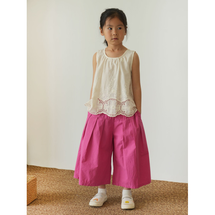 60支水洗全棉 兒童寬松濶腿花苞褲 女童玫紅百搭八分褲 夏款 童裝