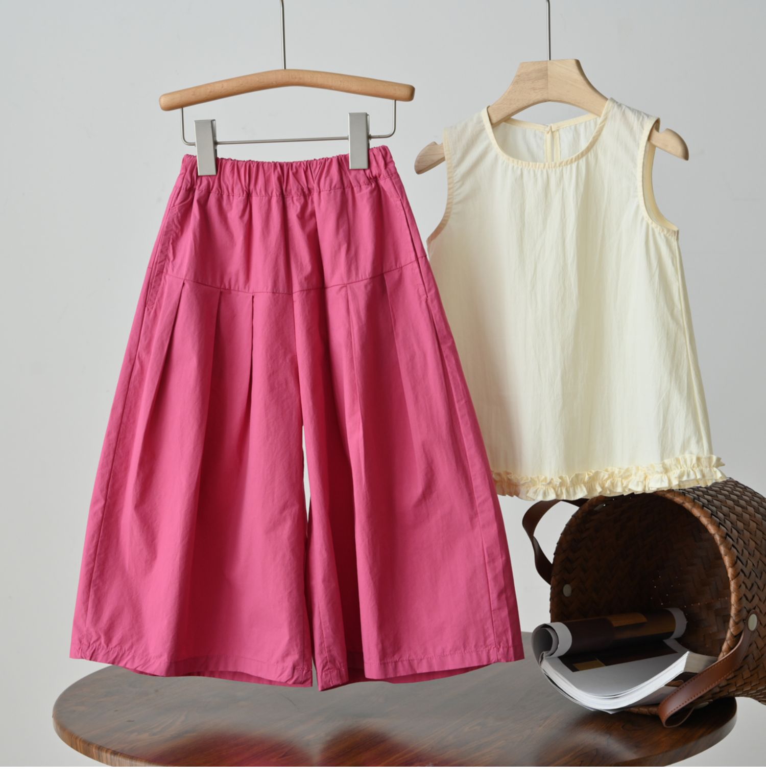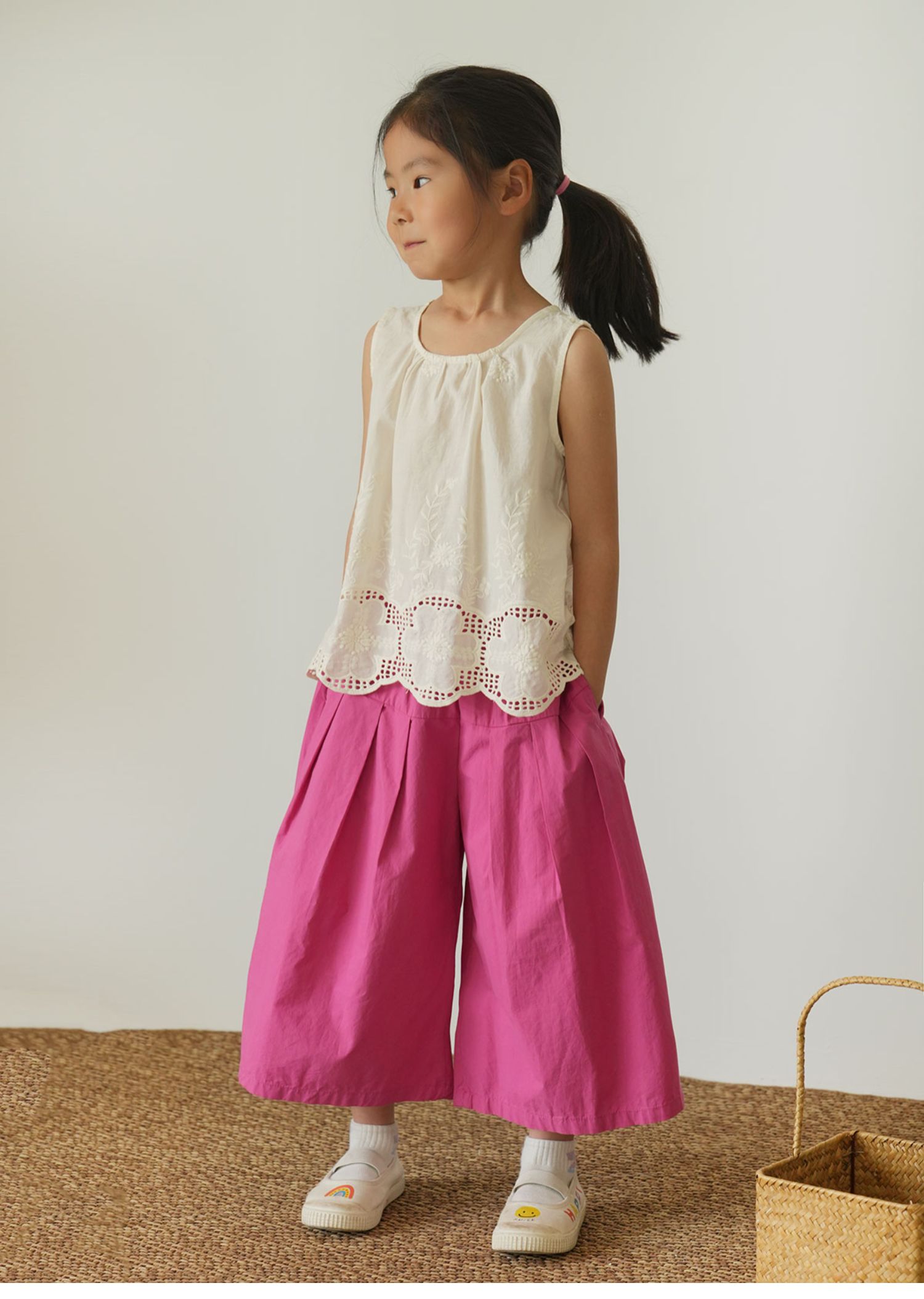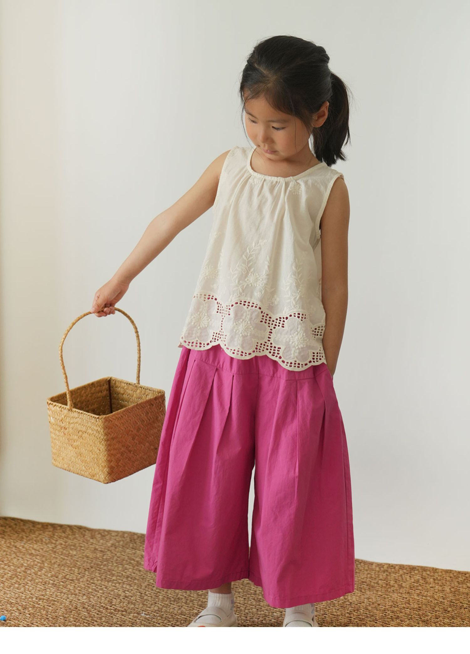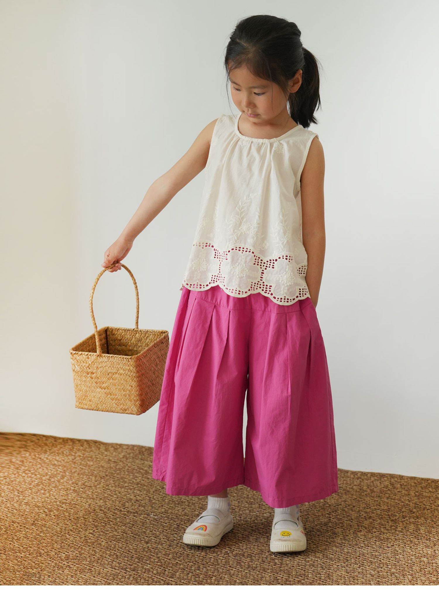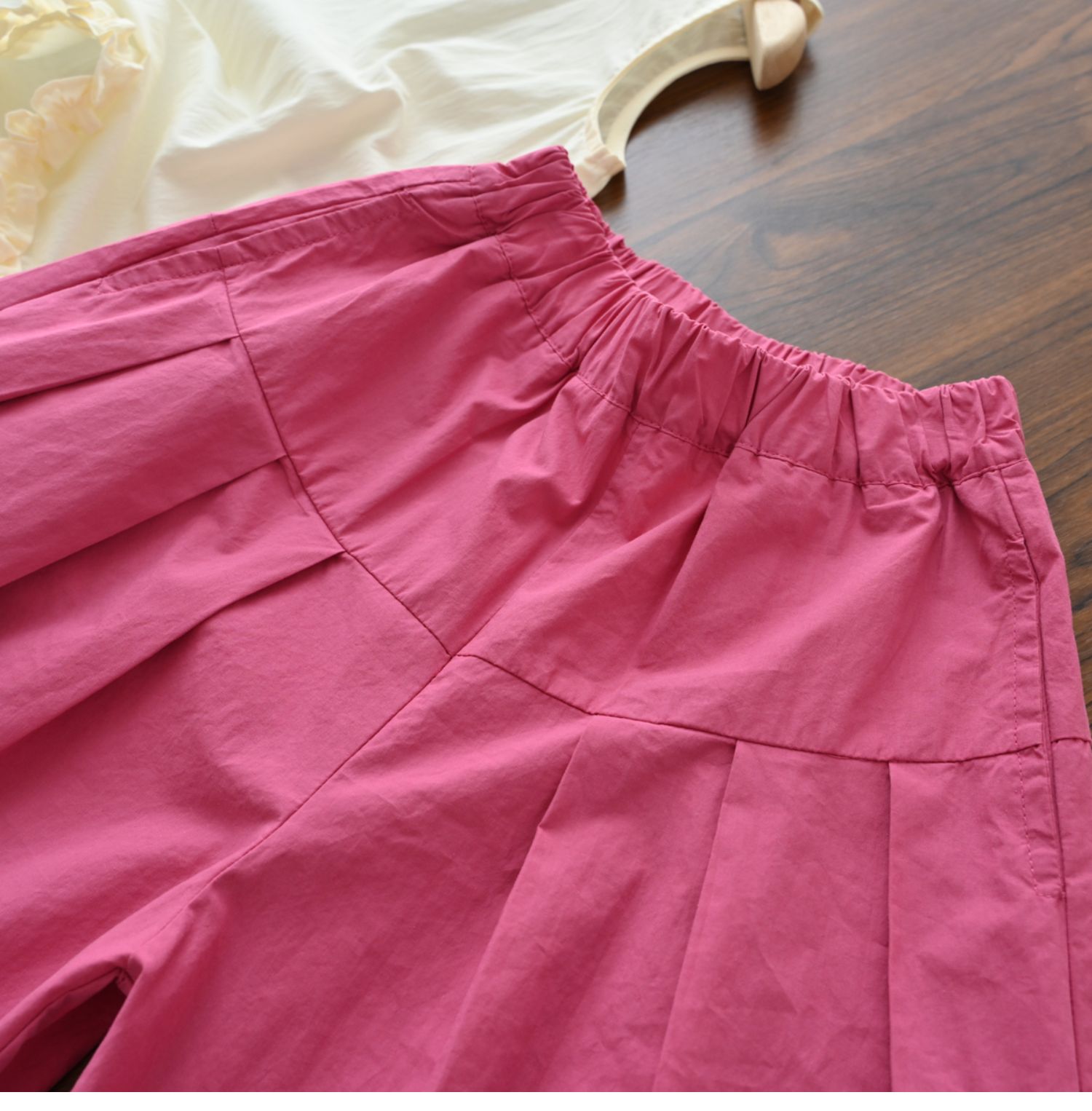60支水洗全棉 兒童寬松濶腿花苞褲 女童玫紅百搭八分褲 夏款 童裝