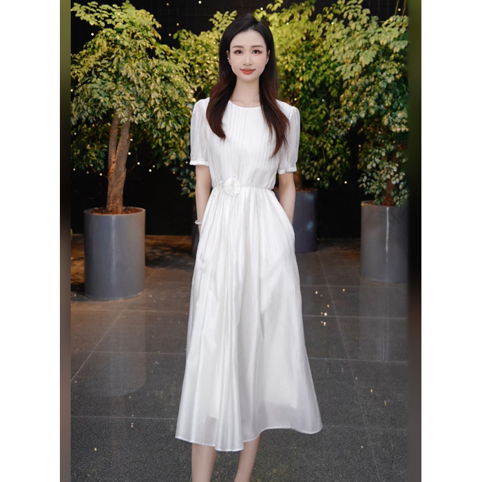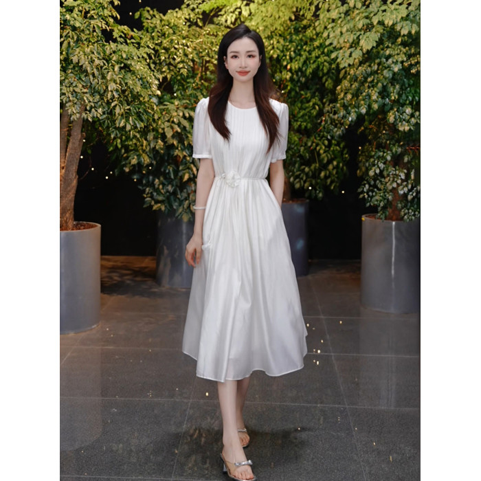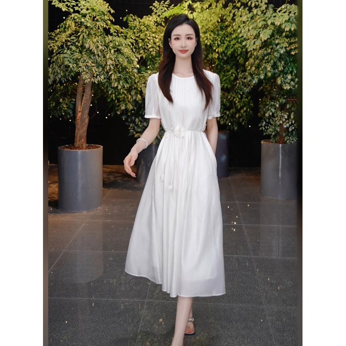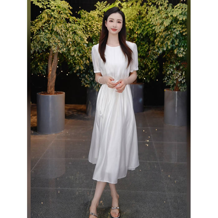 2025新款今年流行爆款巨好看簡單大方的法式小衆白色連衣裙女夏天