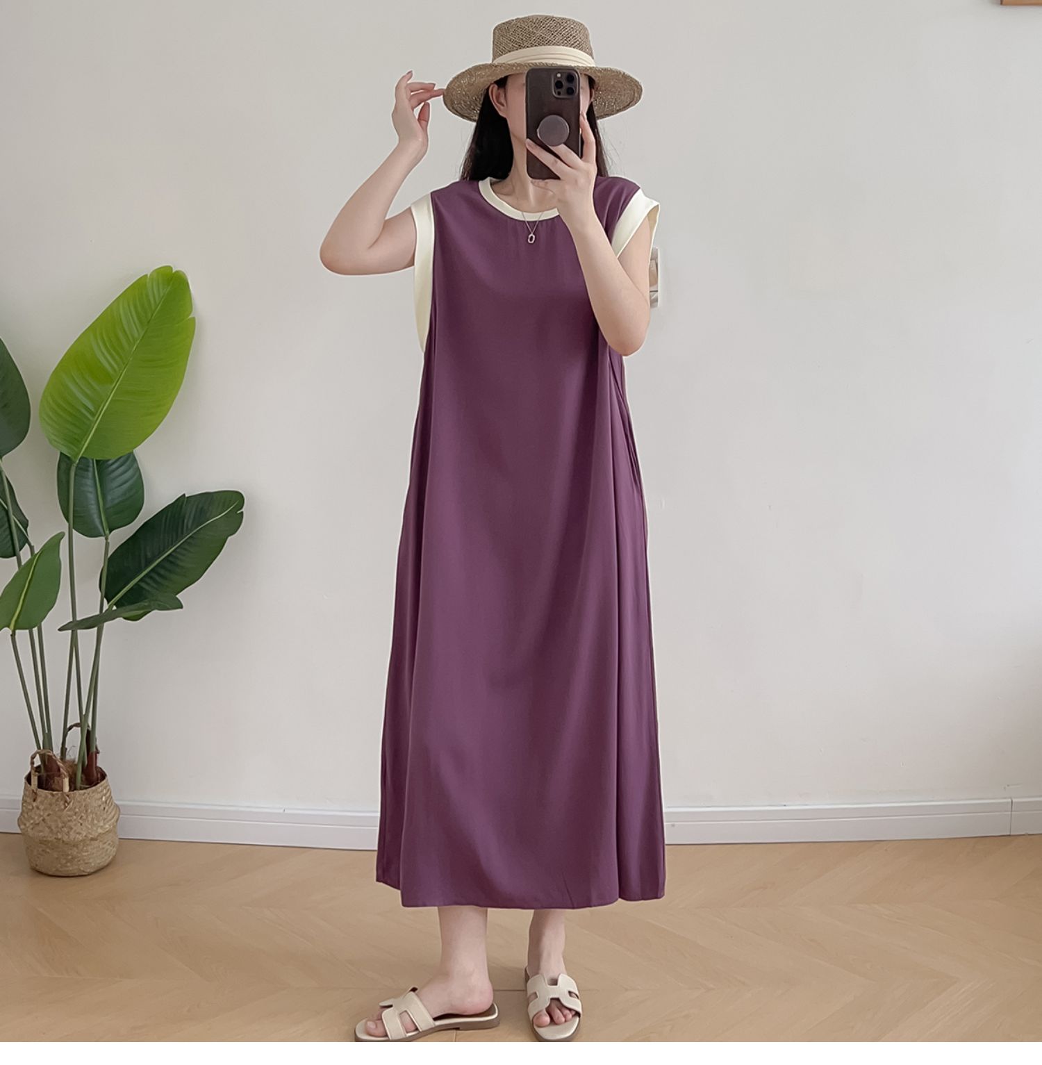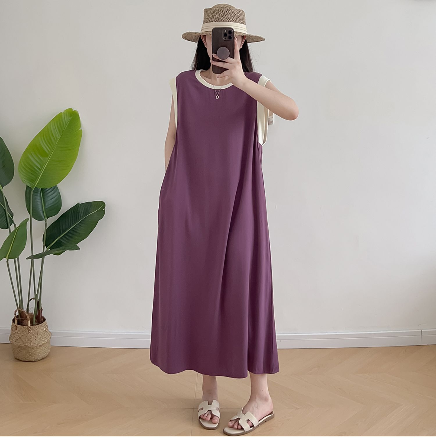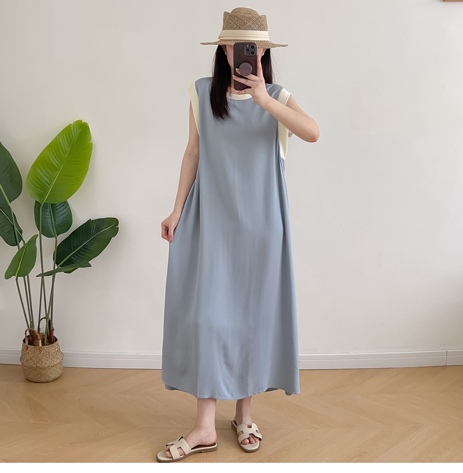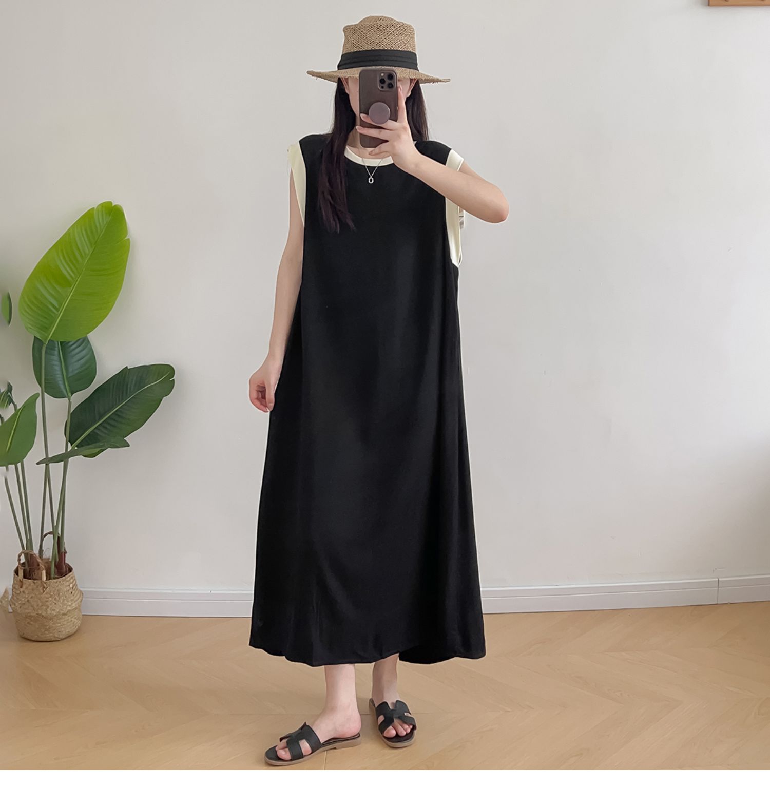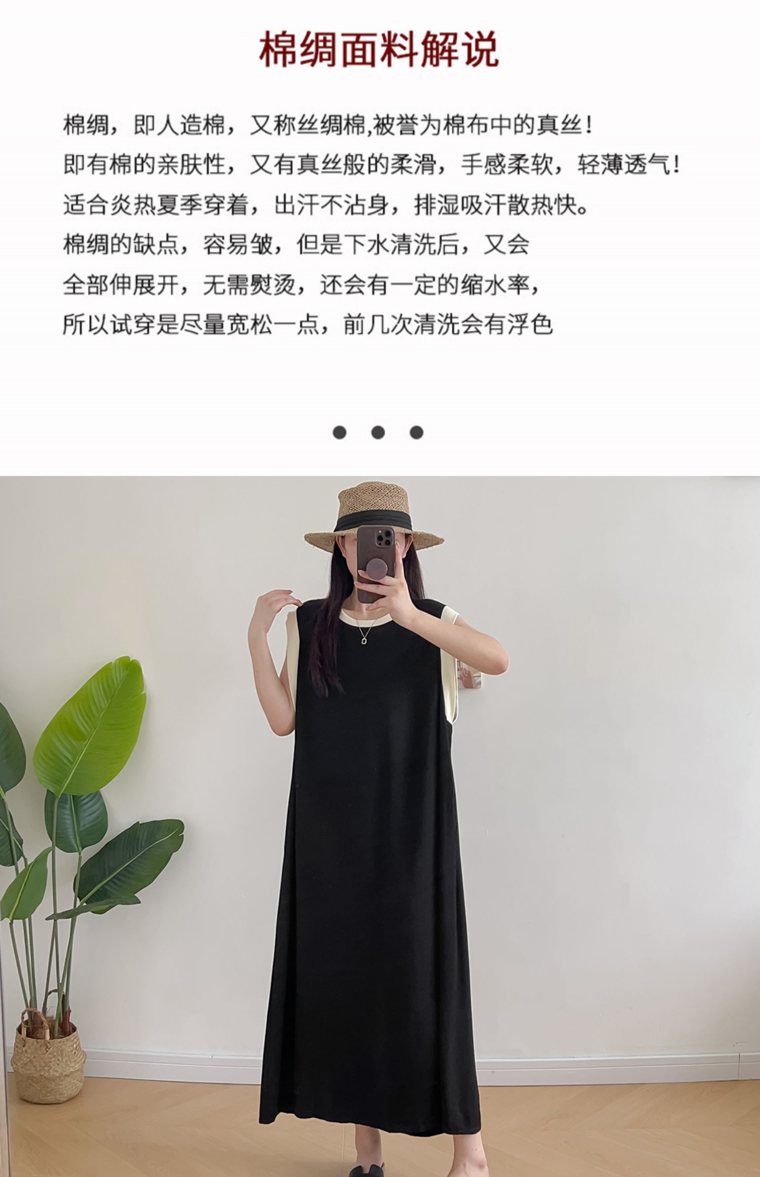 棉綢無袖連衣裙女2024年夏季寬松大碼顯瘦背心裙純色人造棉大擺裙