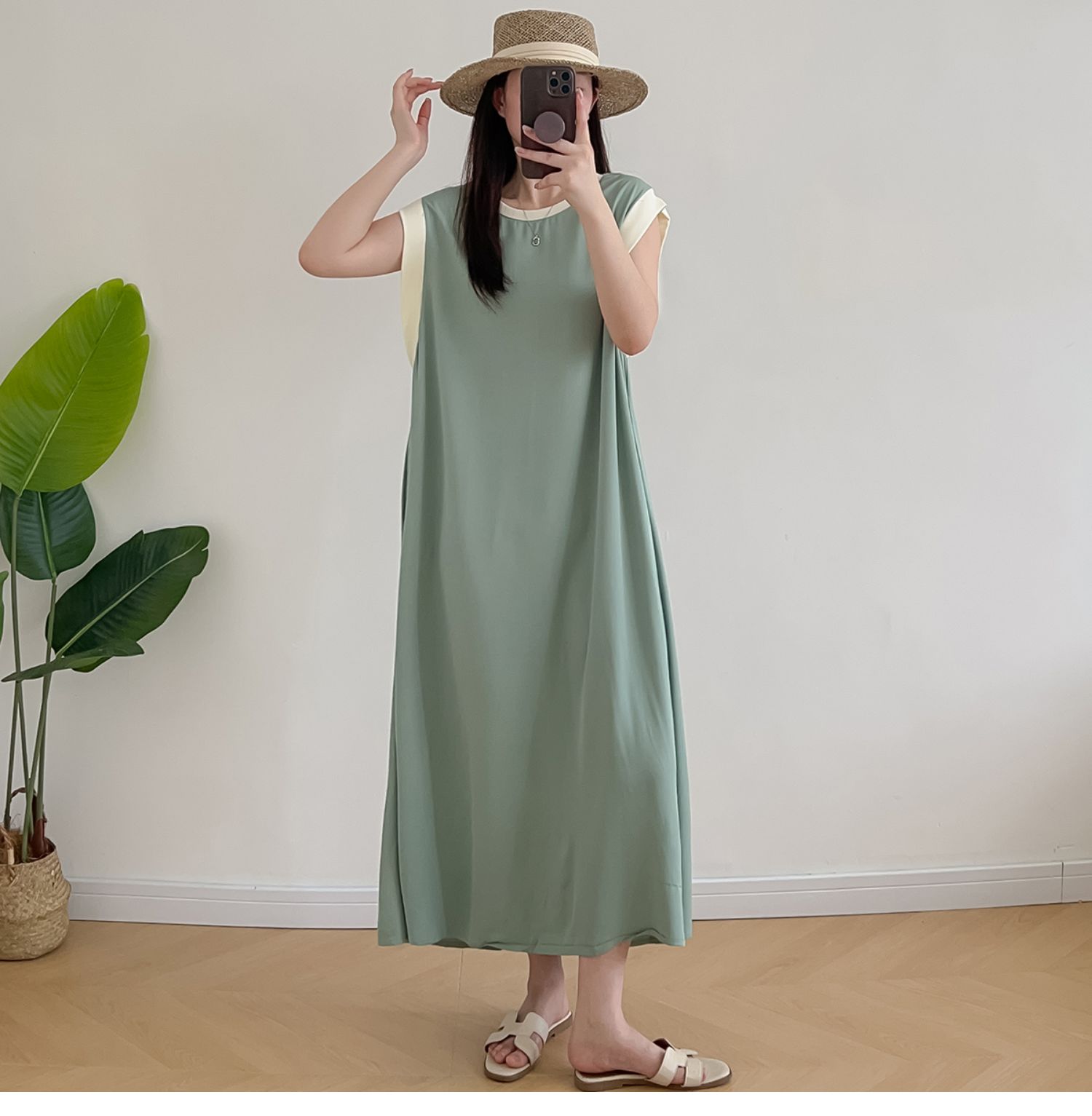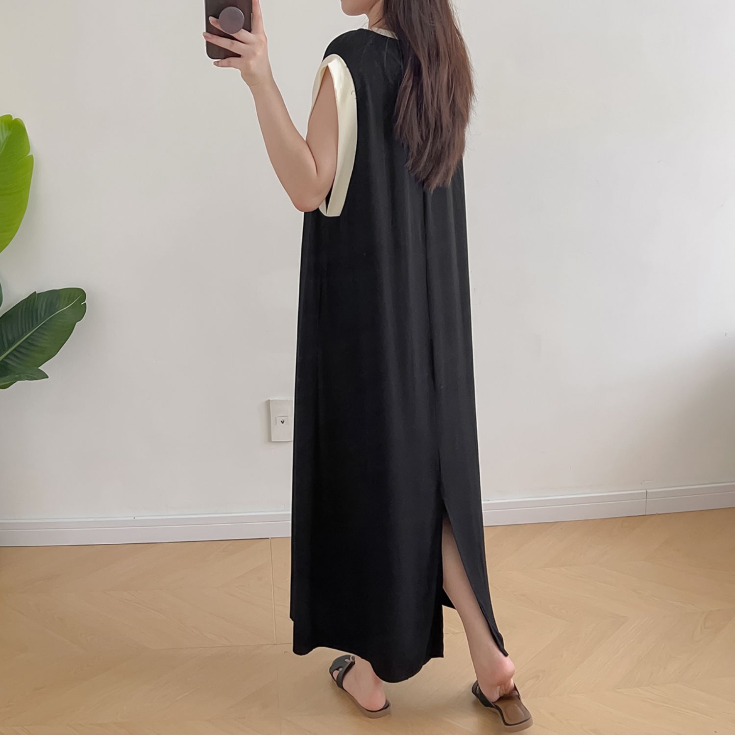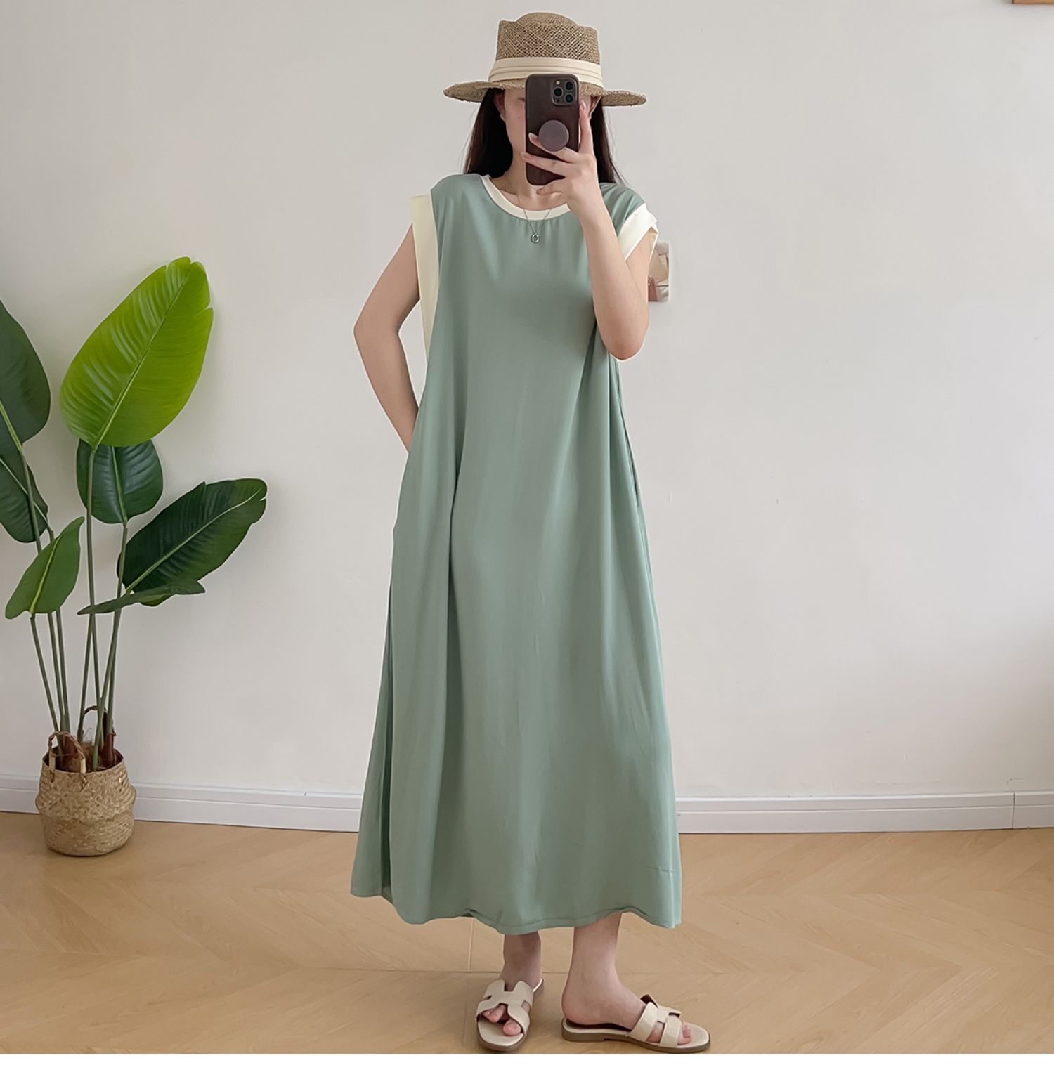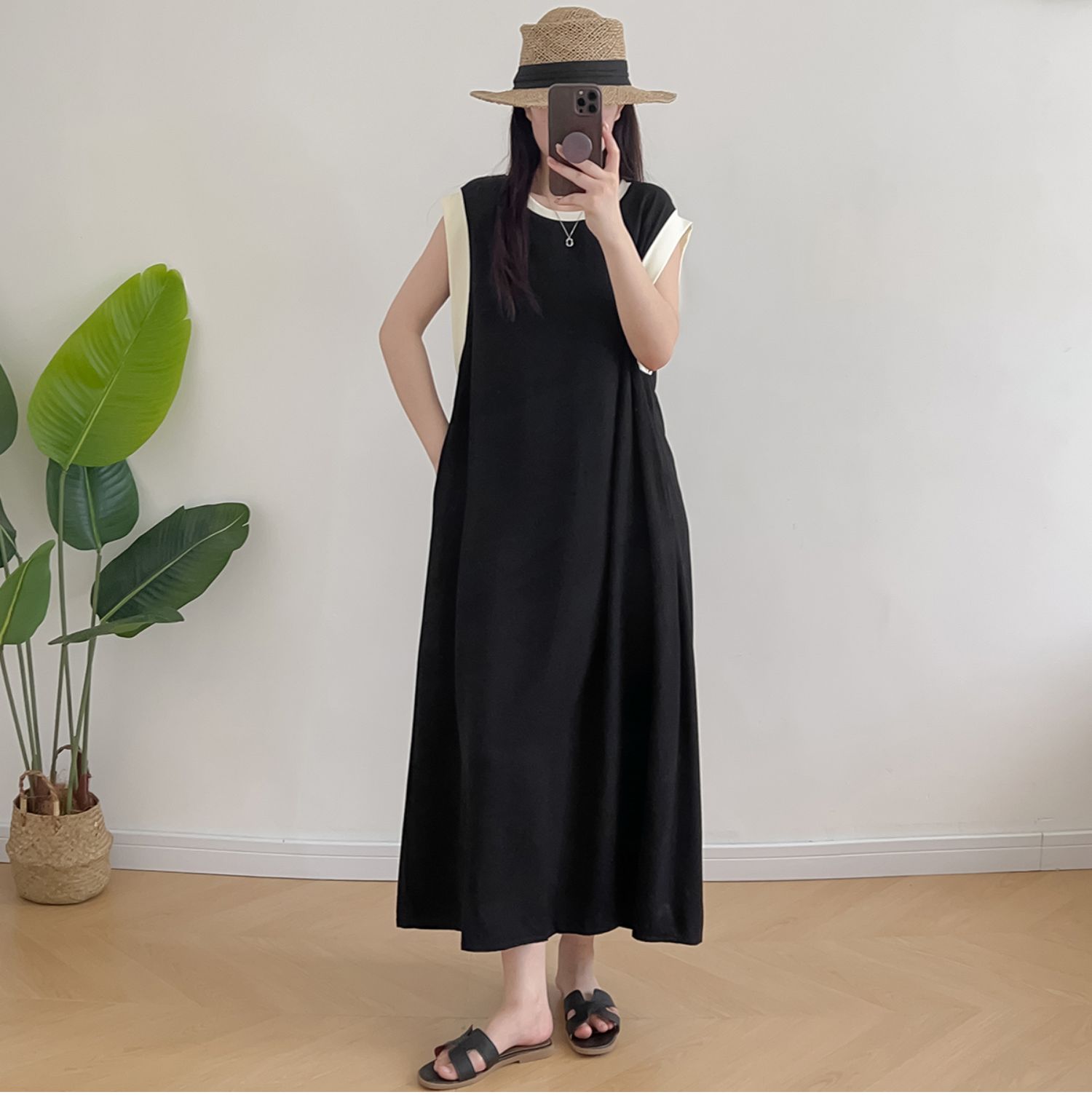 棉綢無袖連衣裙女2024年夏季寬松大碼顯瘦背心裙純色人造棉大擺裙