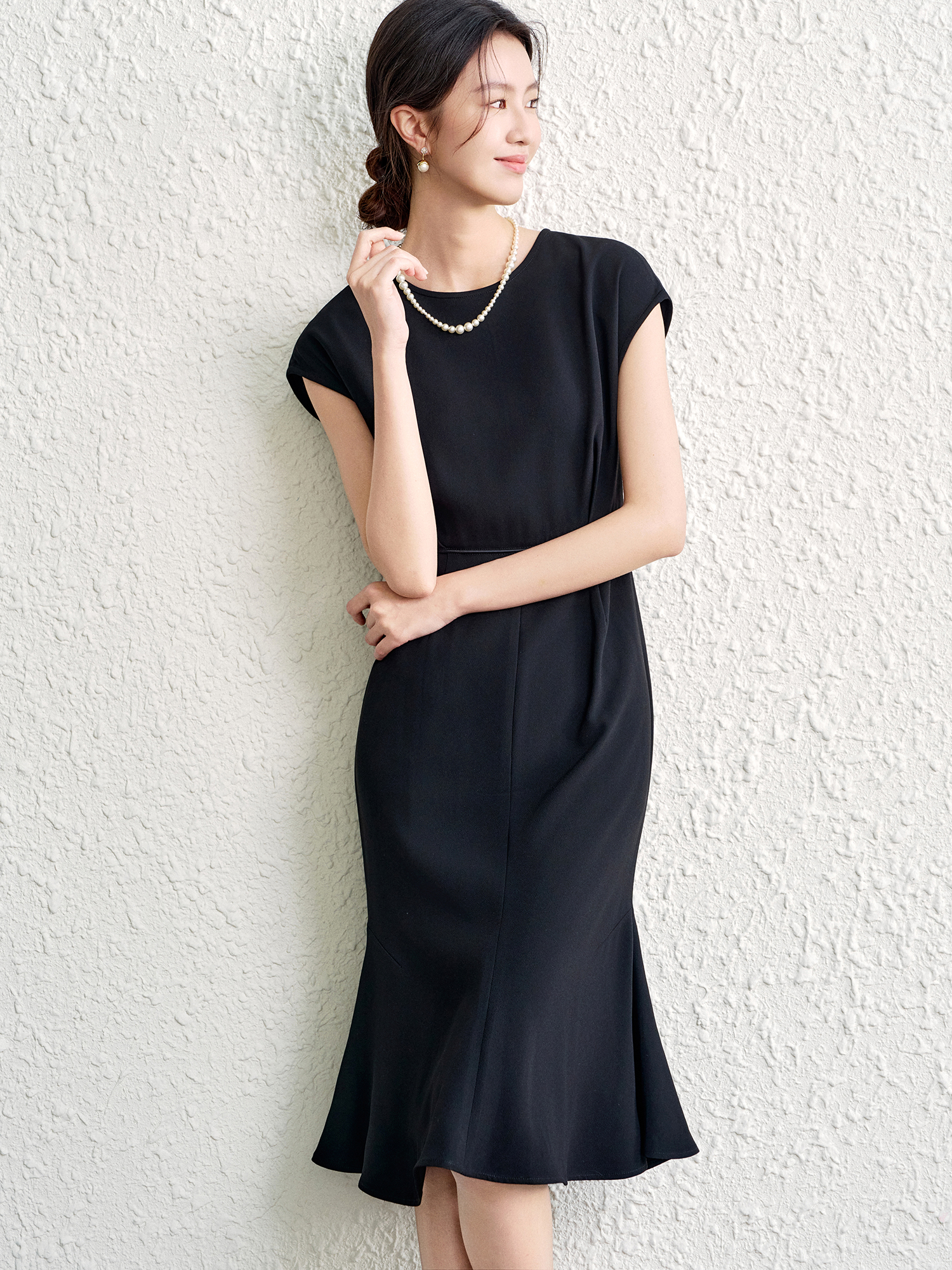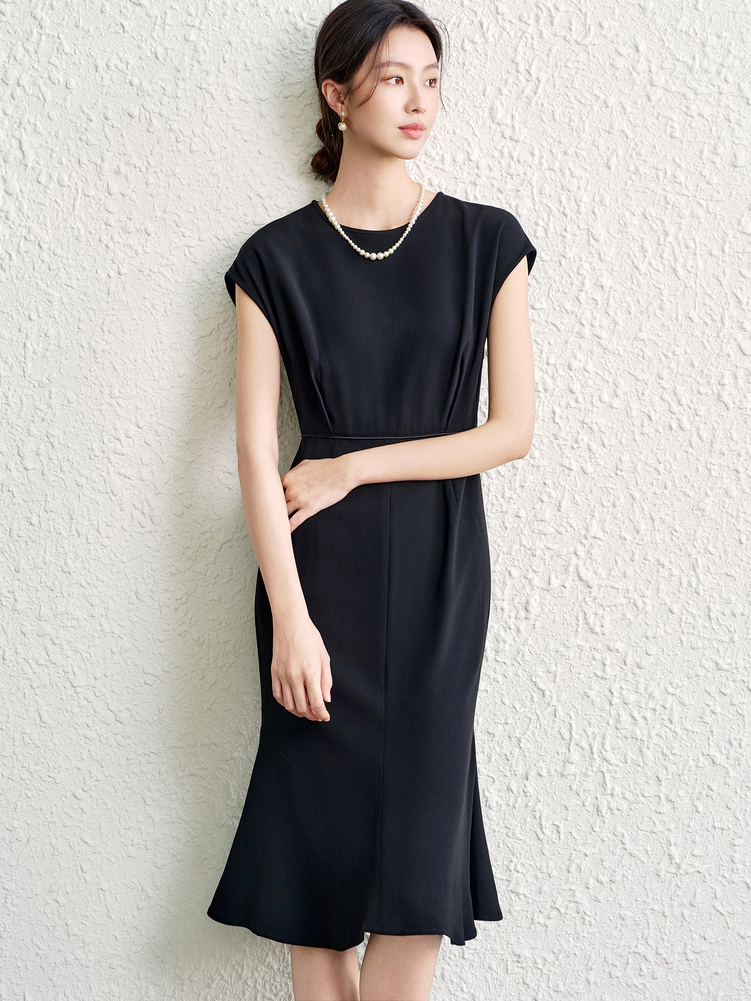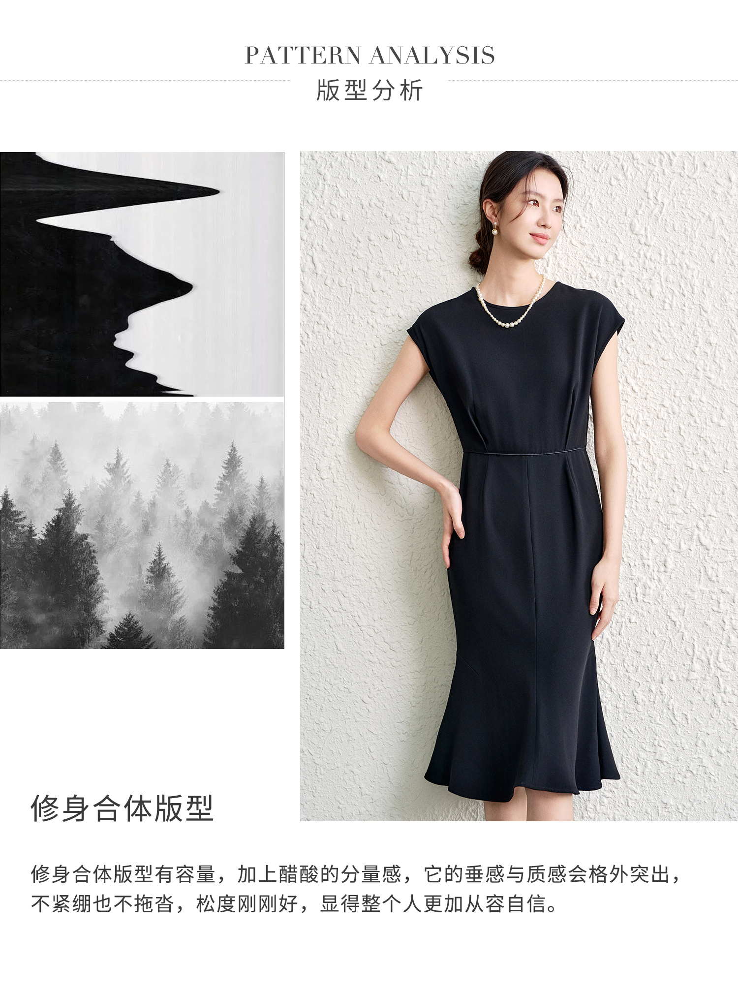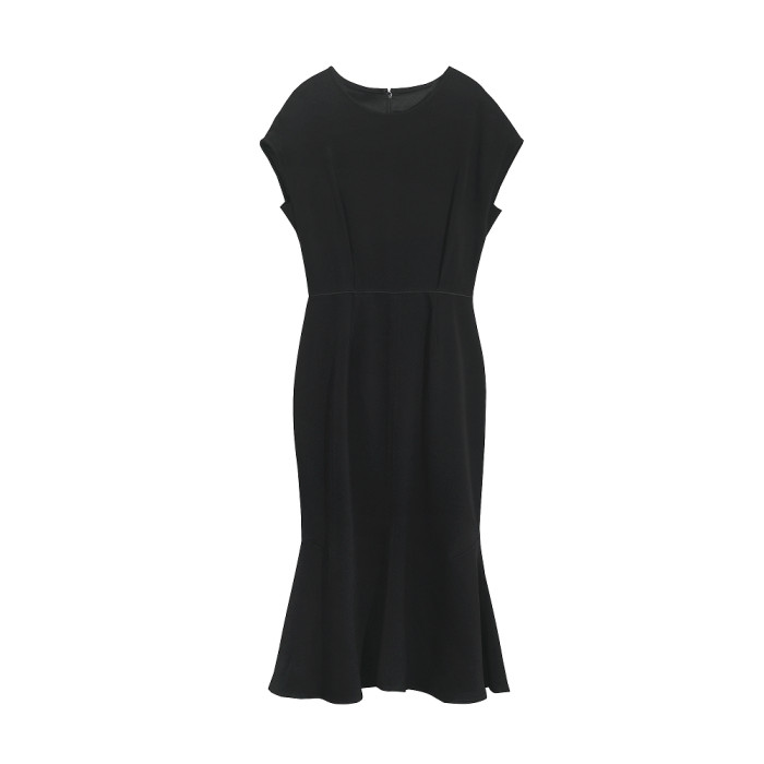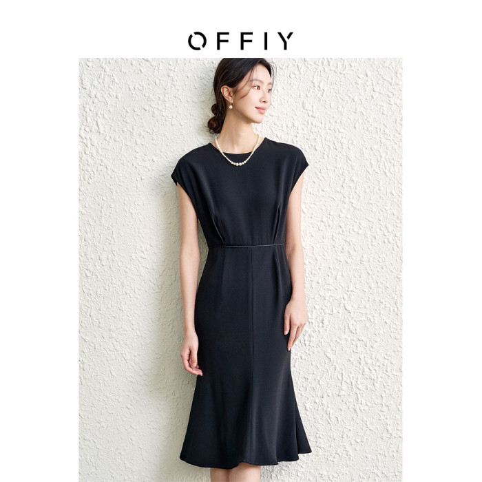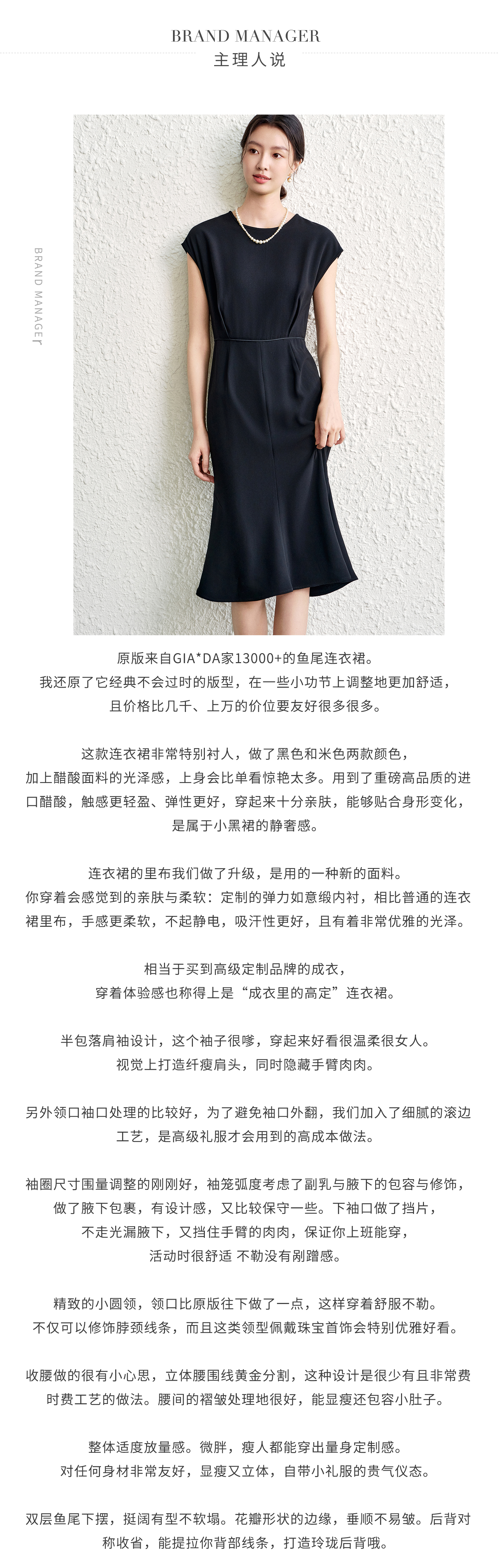 OFFIY奢牌平替GI*DA魚尾收腰短袖醋酸裙獨特漂亮氣質小黑裙連衣裙