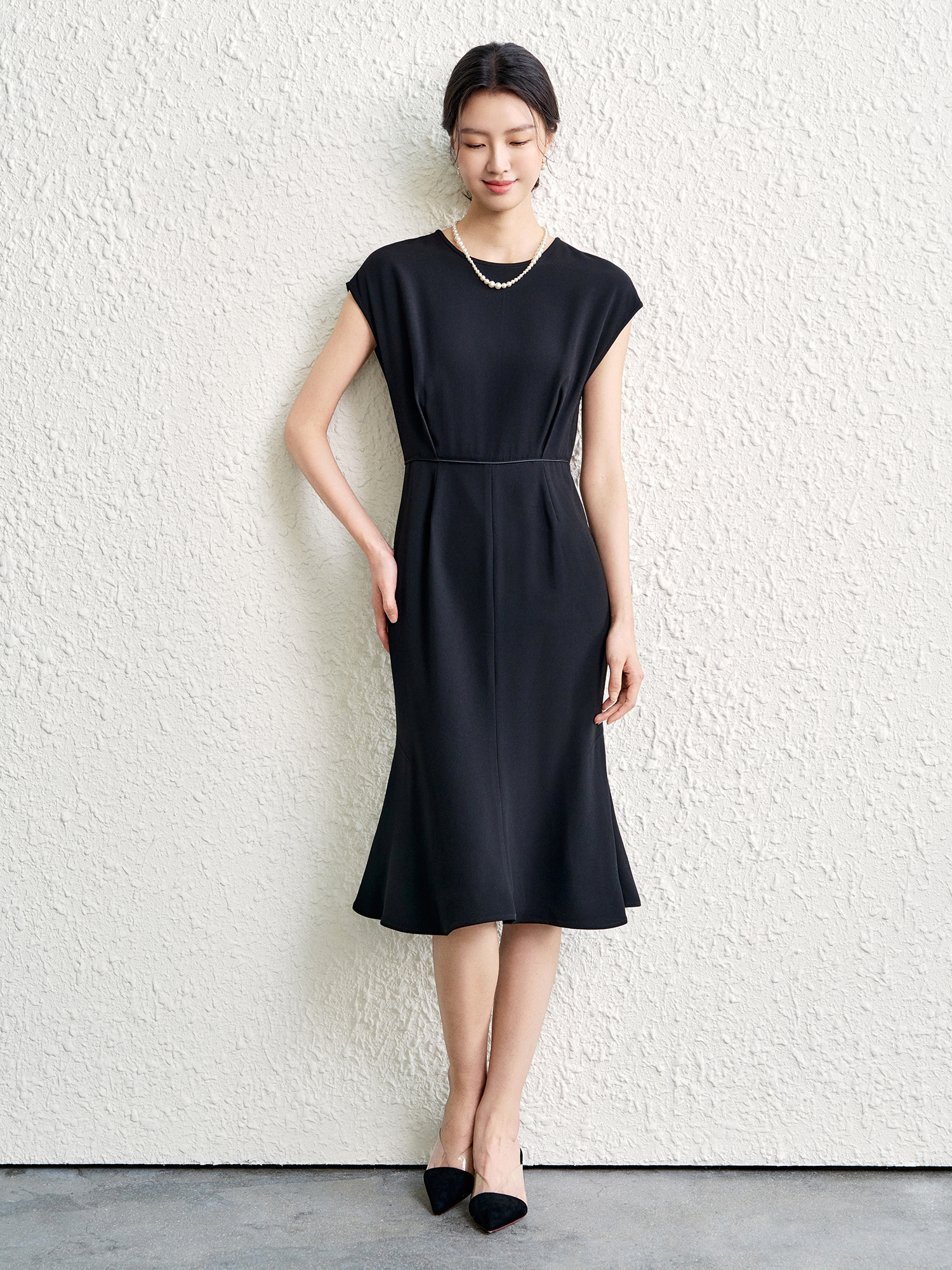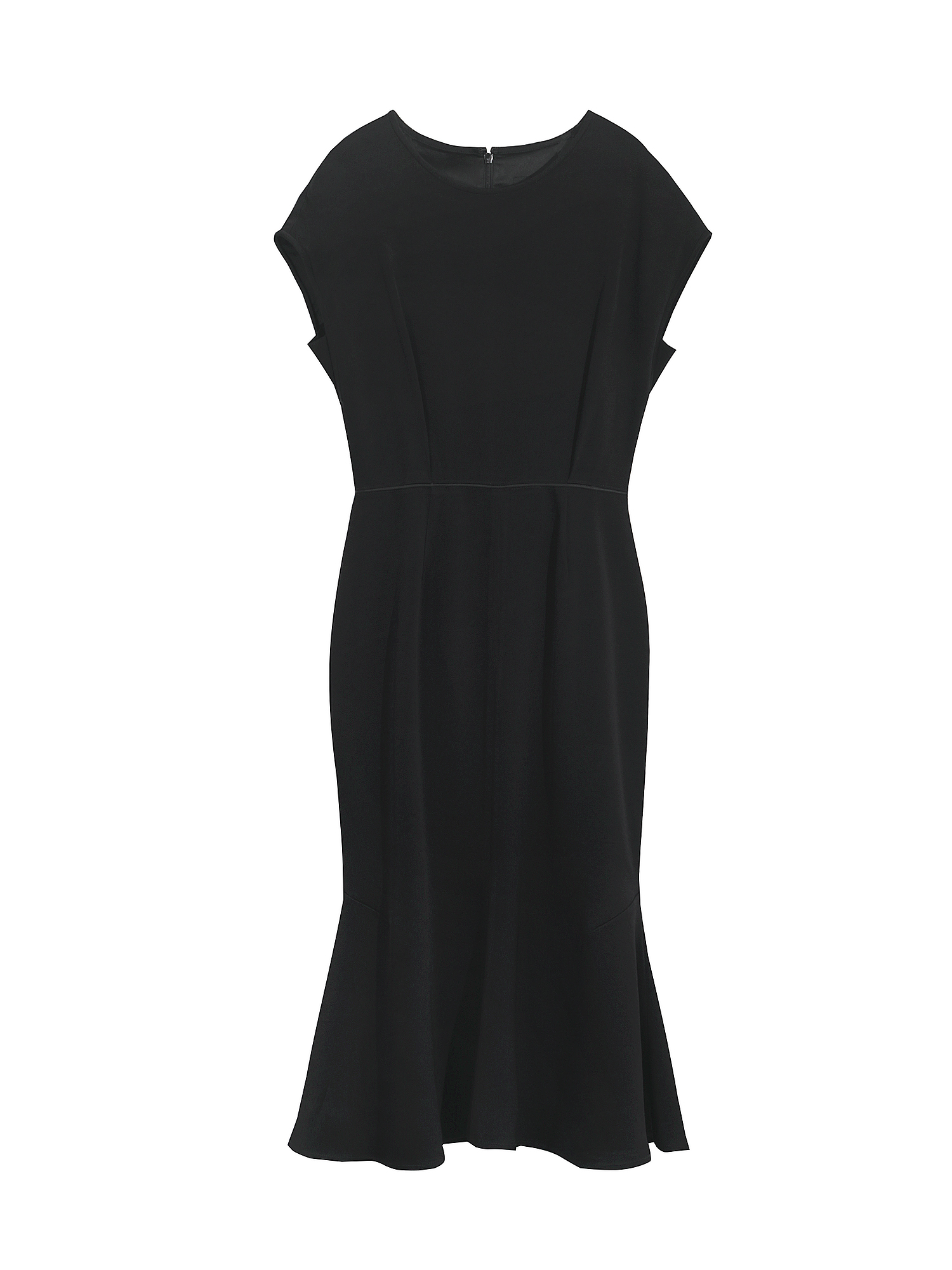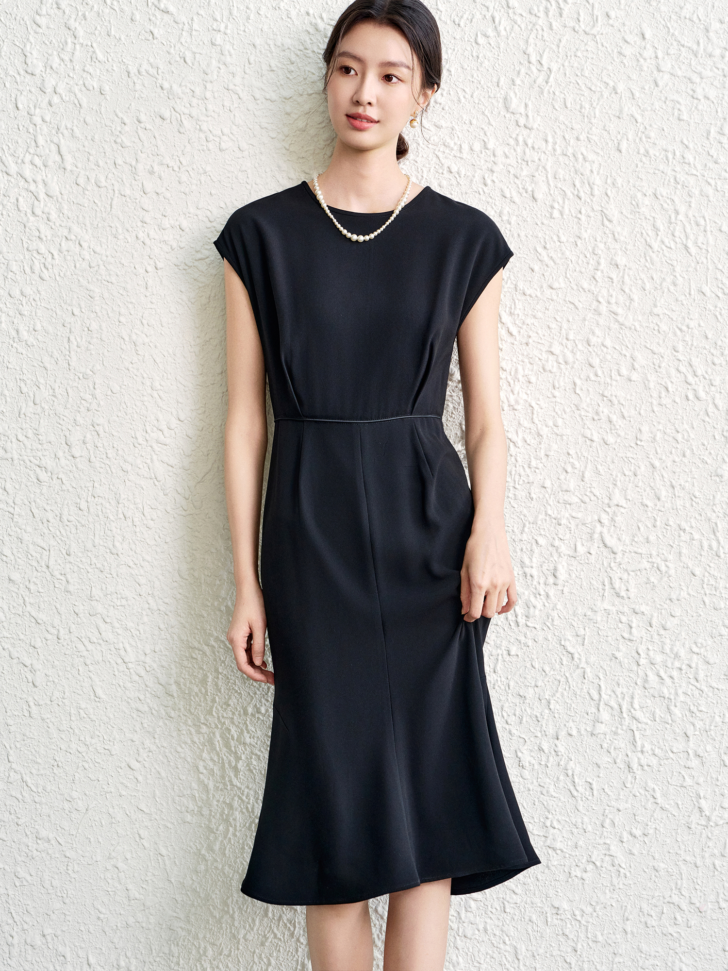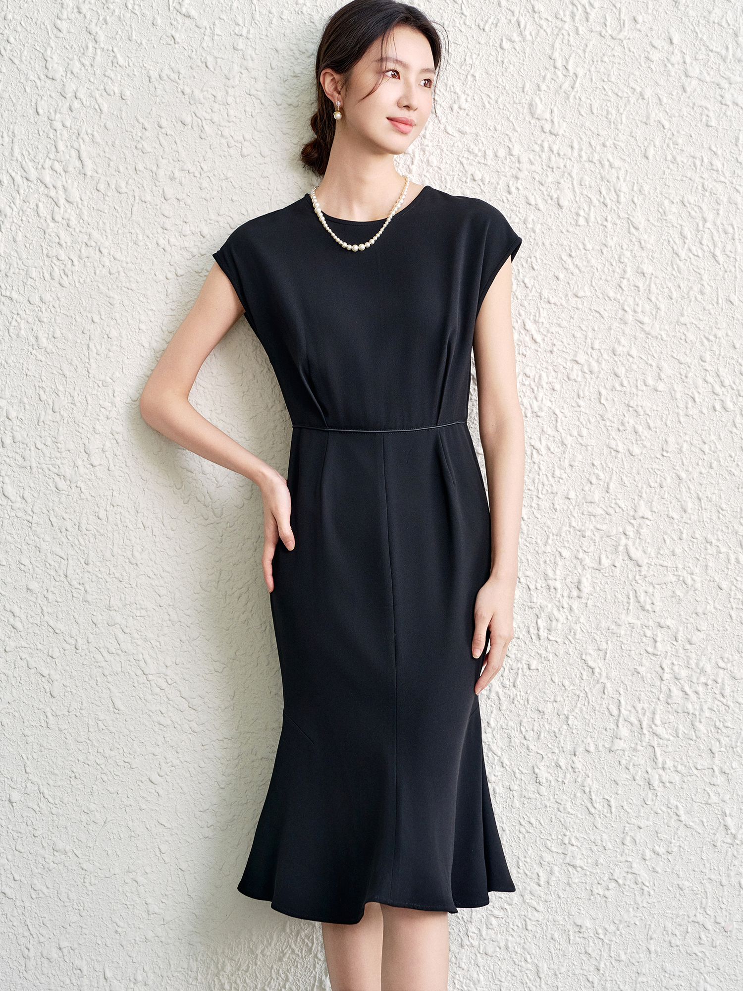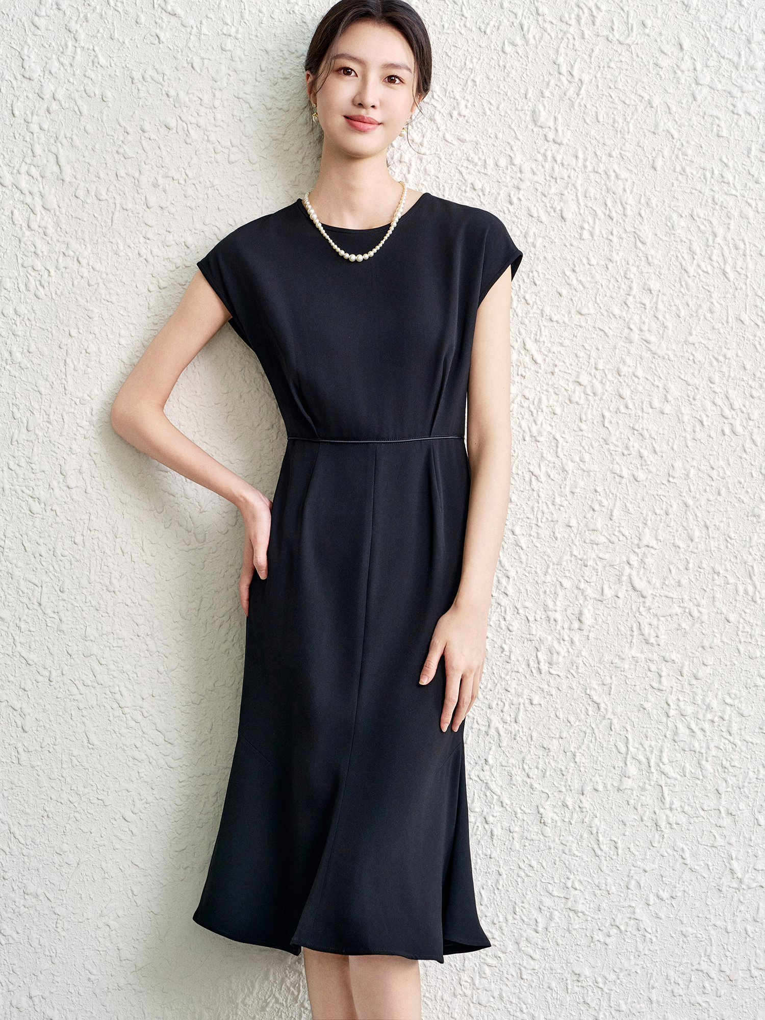 OFFIY奢牌平替GI*DA魚尾收腰短袖醋酸裙獨特漂亮氣質小黑裙連衣裙