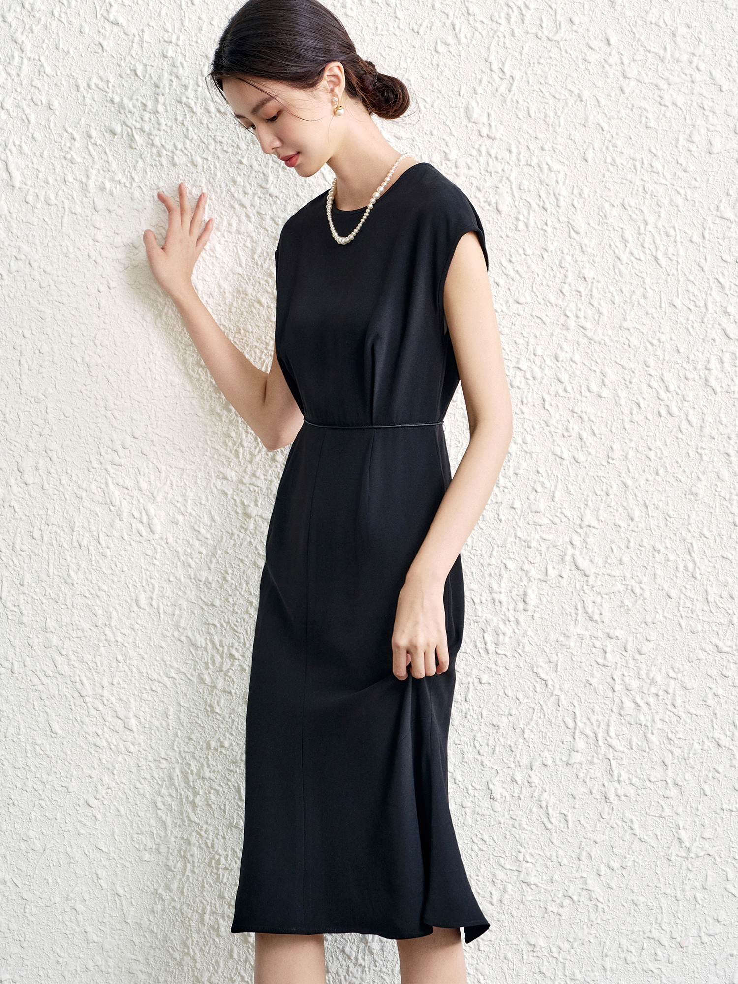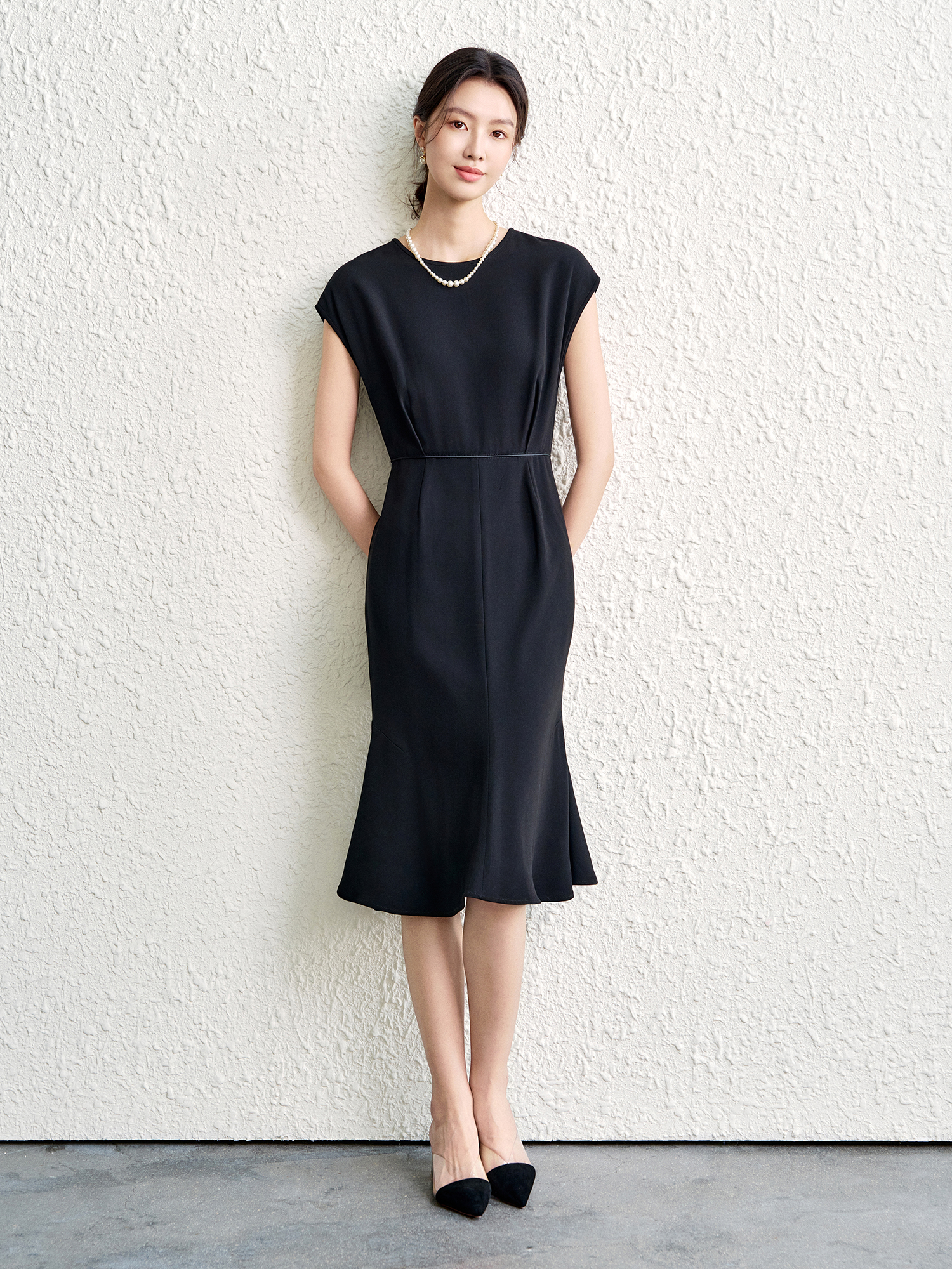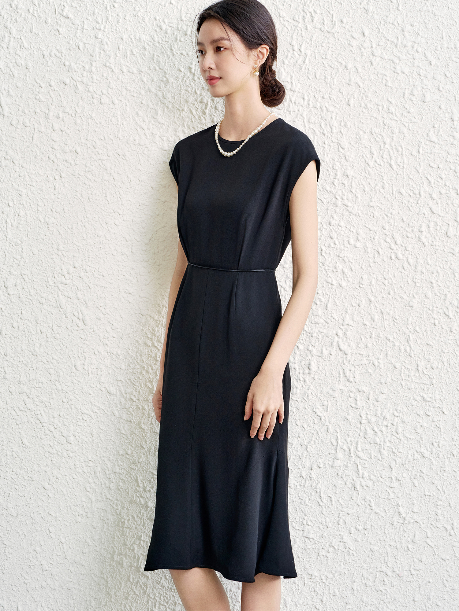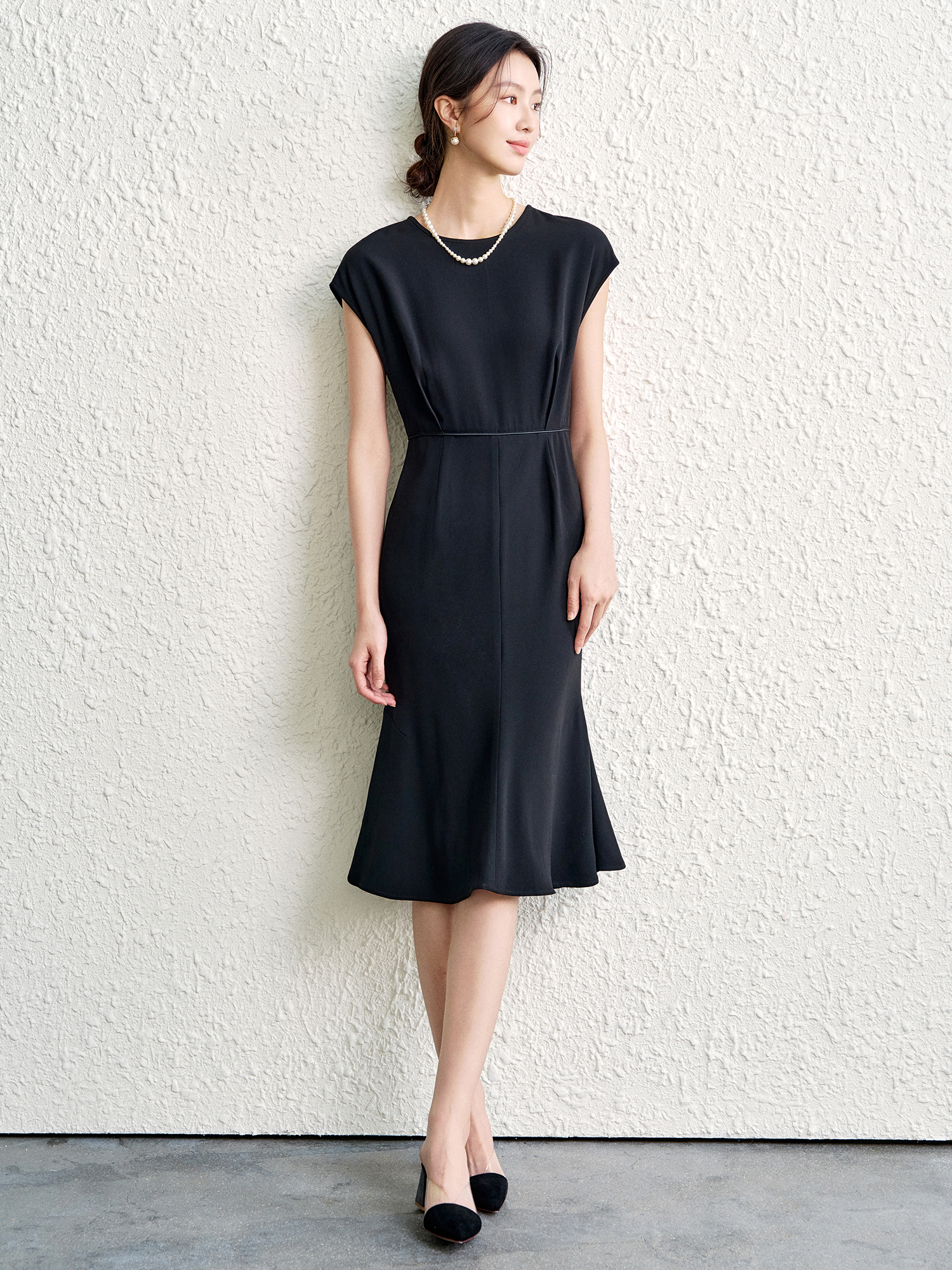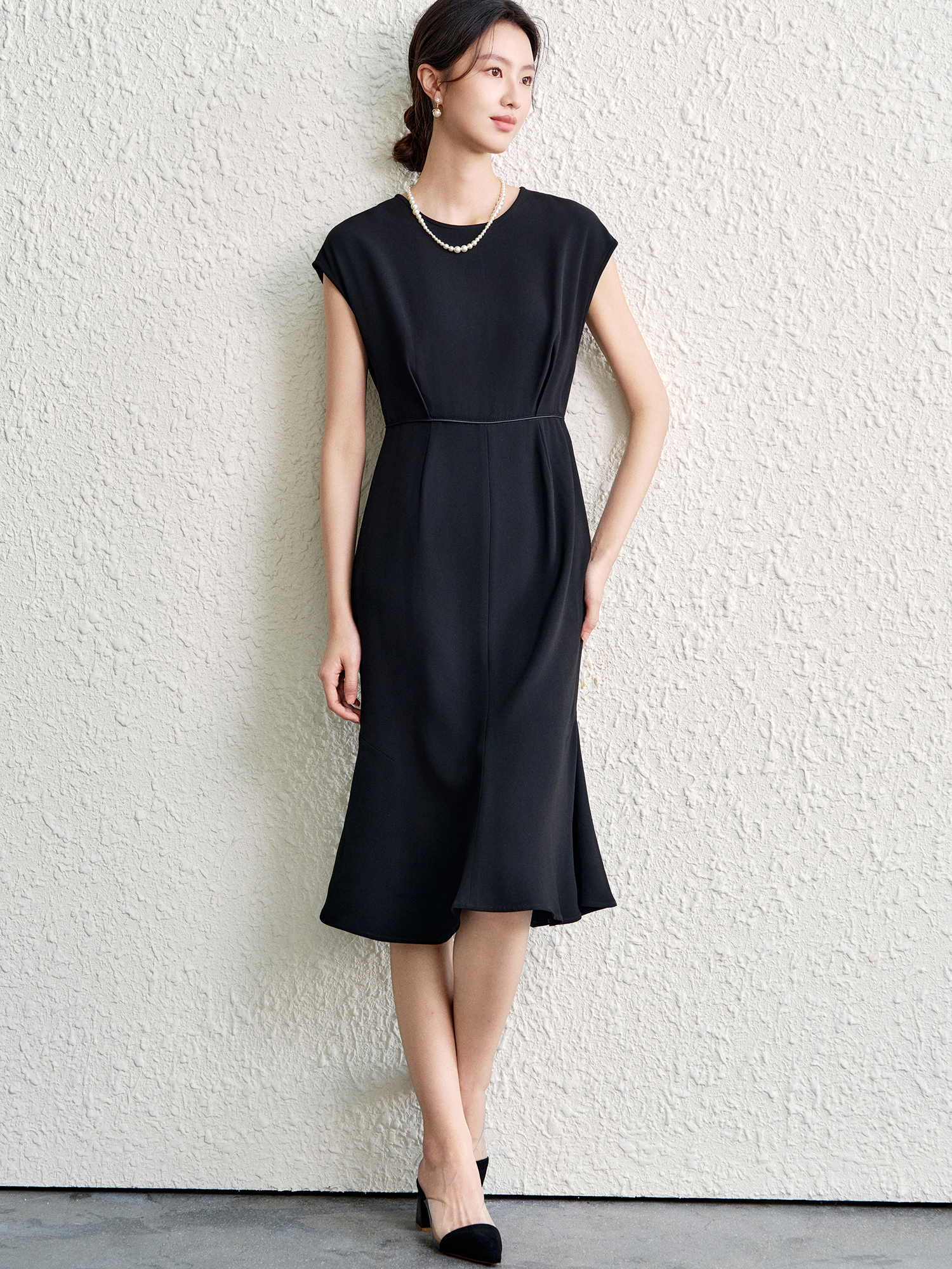 OFFIY奢牌平替GI*DA魚尾收腰短袖醋酸裙獨特漂亮氣質小黑裙連衣裙