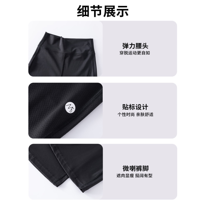 女童喇叭褲兒童夏季薄款速乾瑜伽微喇鯊魚褲子女大童冰絲黑色運動