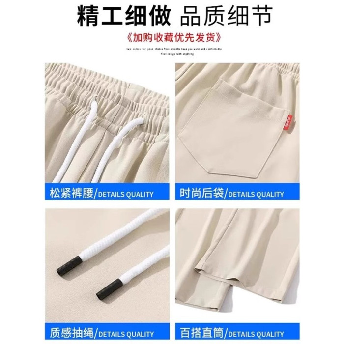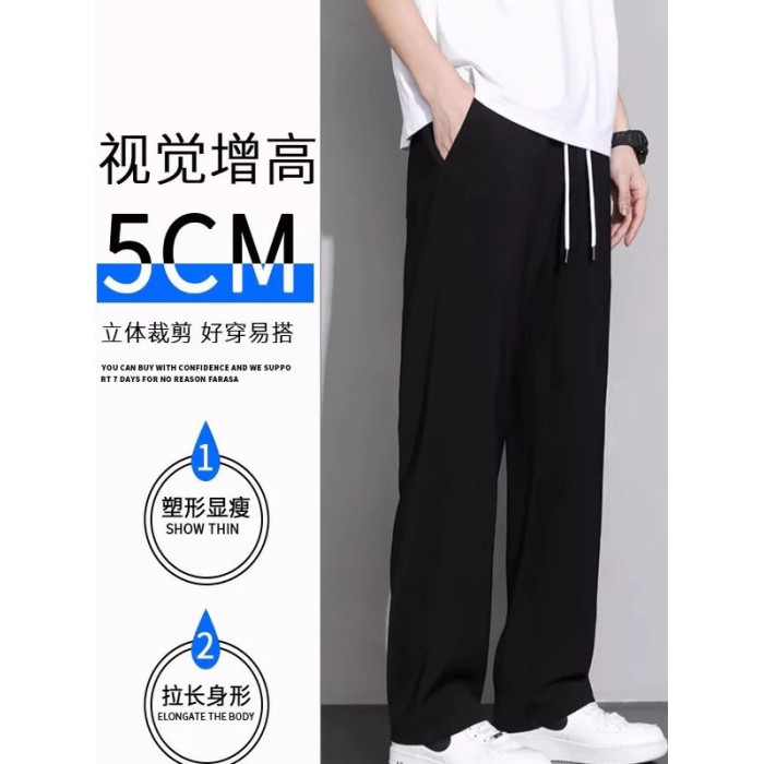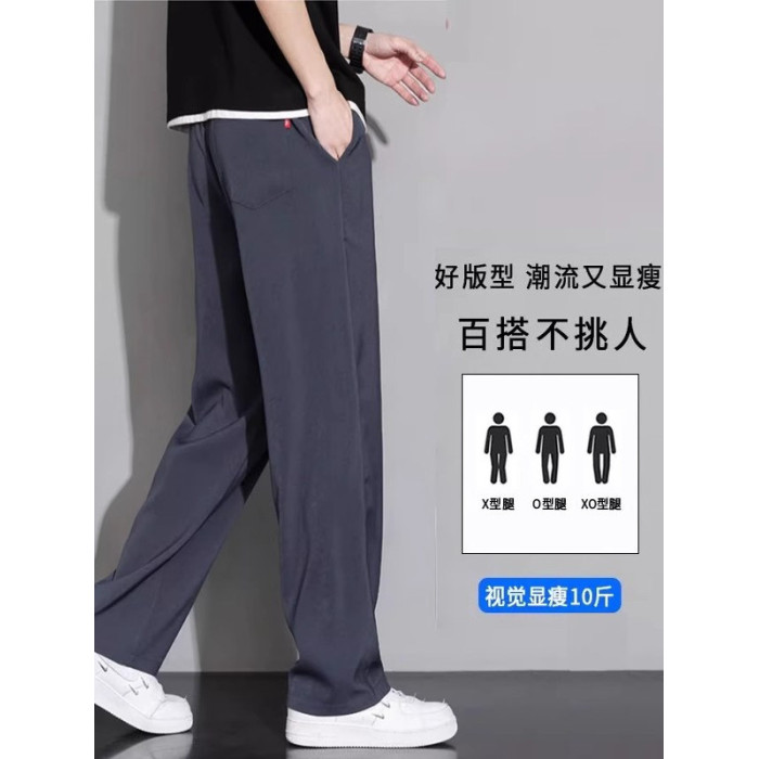 倉石一樹冰絲褲子男夏季薄款潮牌寬松直筒褲百搭濶腿褲休閒運動褲
