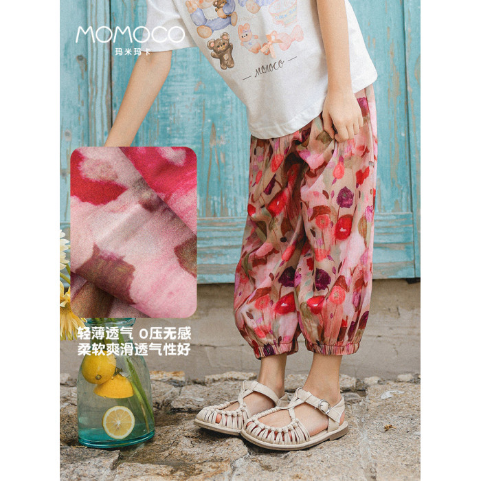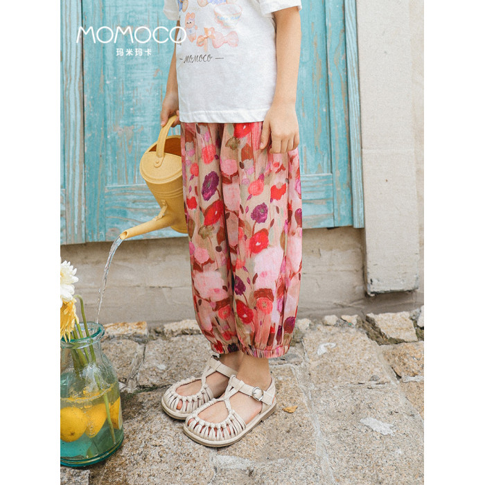 MOMOCO/瑪米瑪卡2025夏季新款女童碎花長褲中大童洋氣薄款防蚊褲