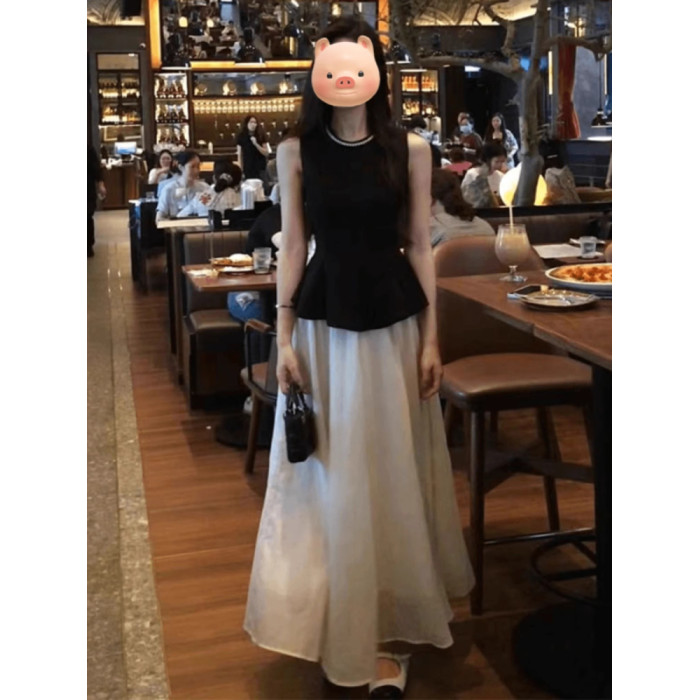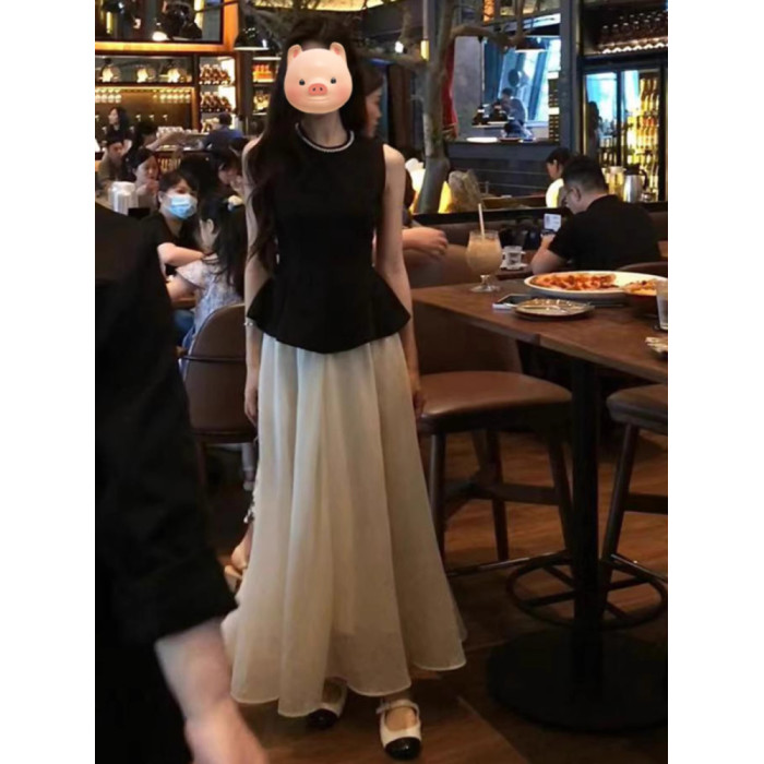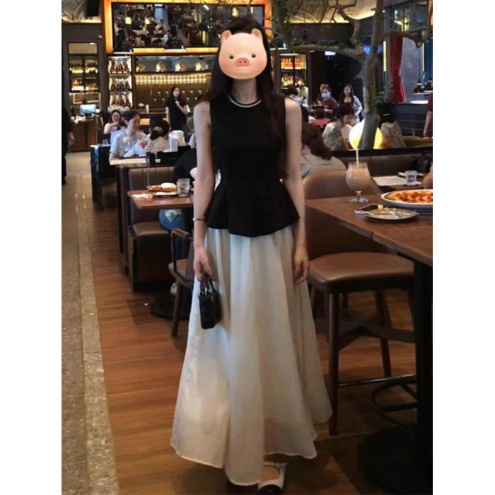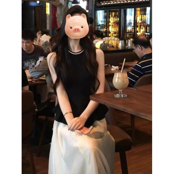 禦姐風情萬種釘珠無袖連衣裙女夏季2025新款小衆設計感大裙擺長裙