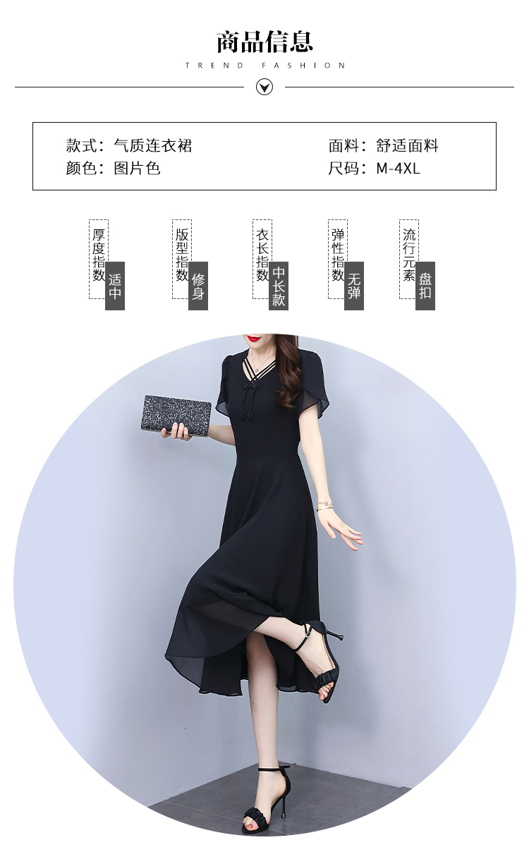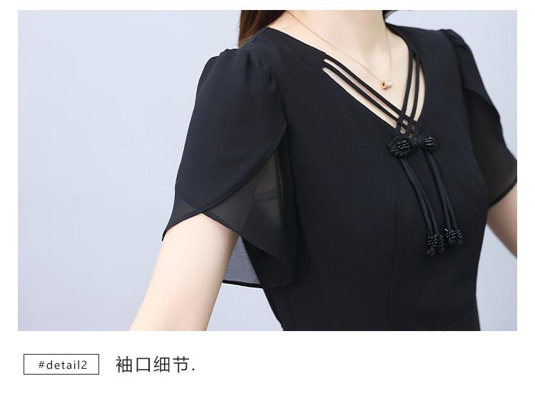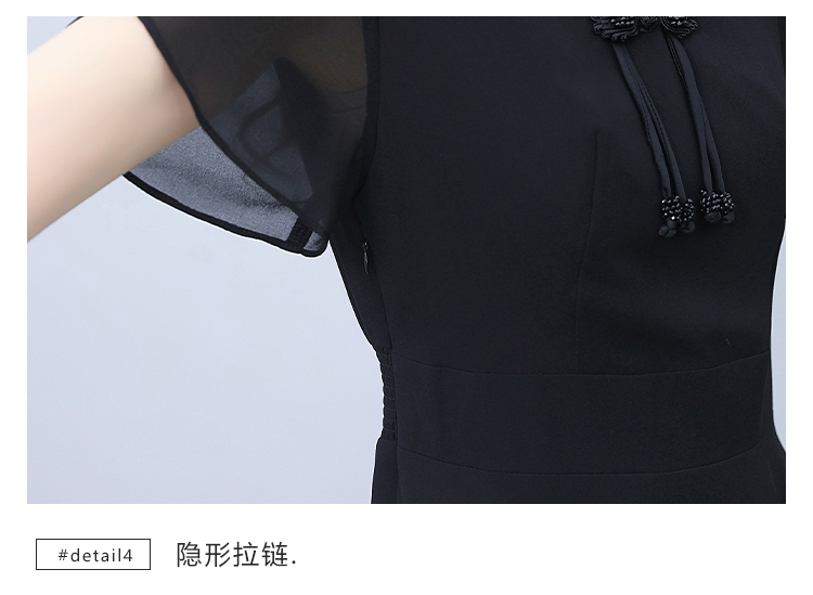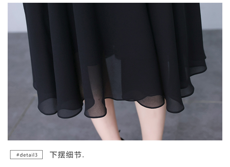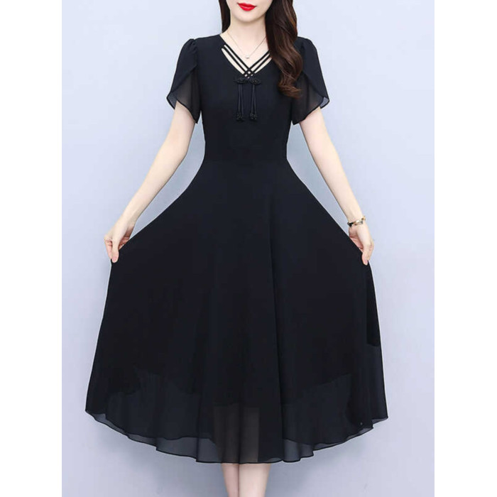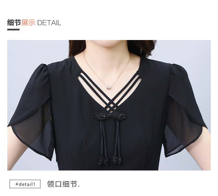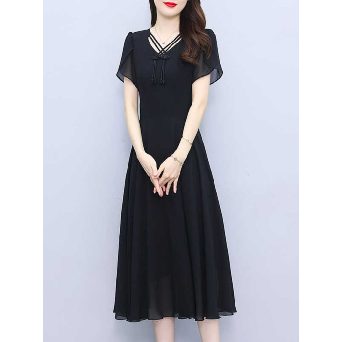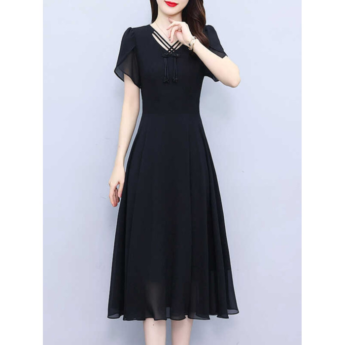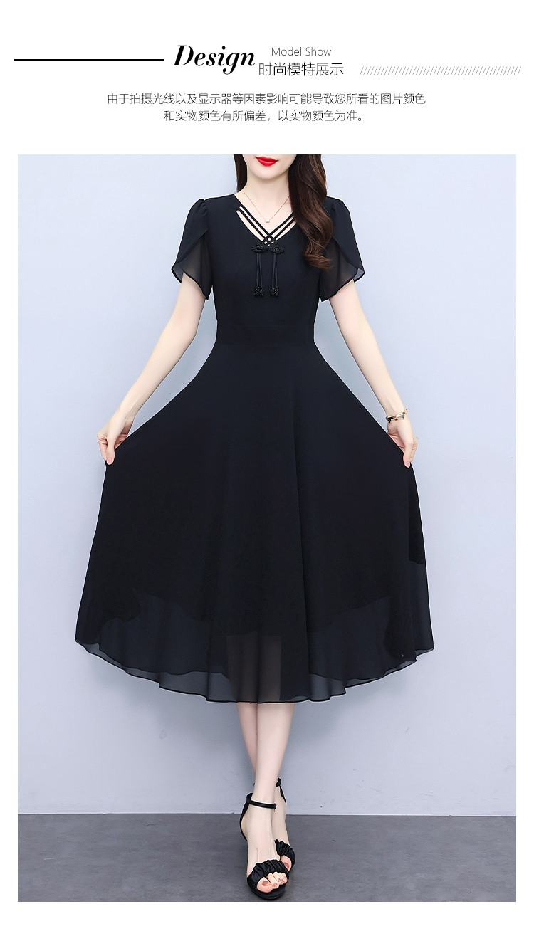 氣質雪紡黑色短袖連衣裙女2025年夏季新款媽媽顯瘦中長款優雅裙子