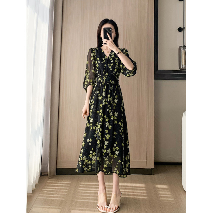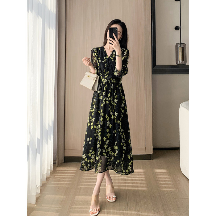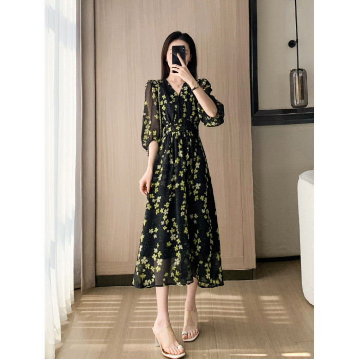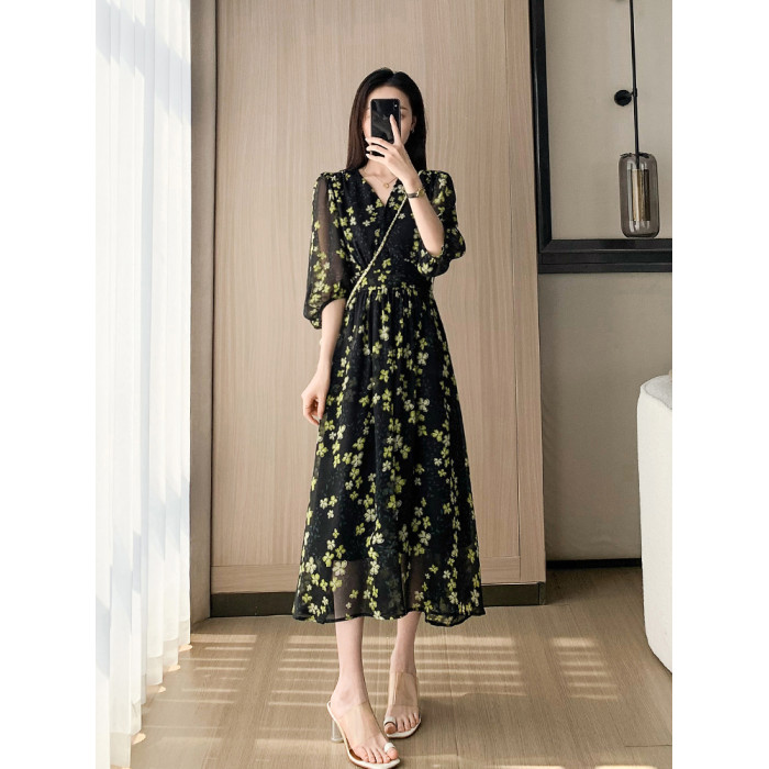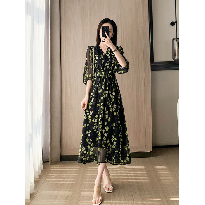 溫柔風雪紡碎花連衣裙女夏季2025新款顯瘦高級氣質收腰顯瘦茶歇裙