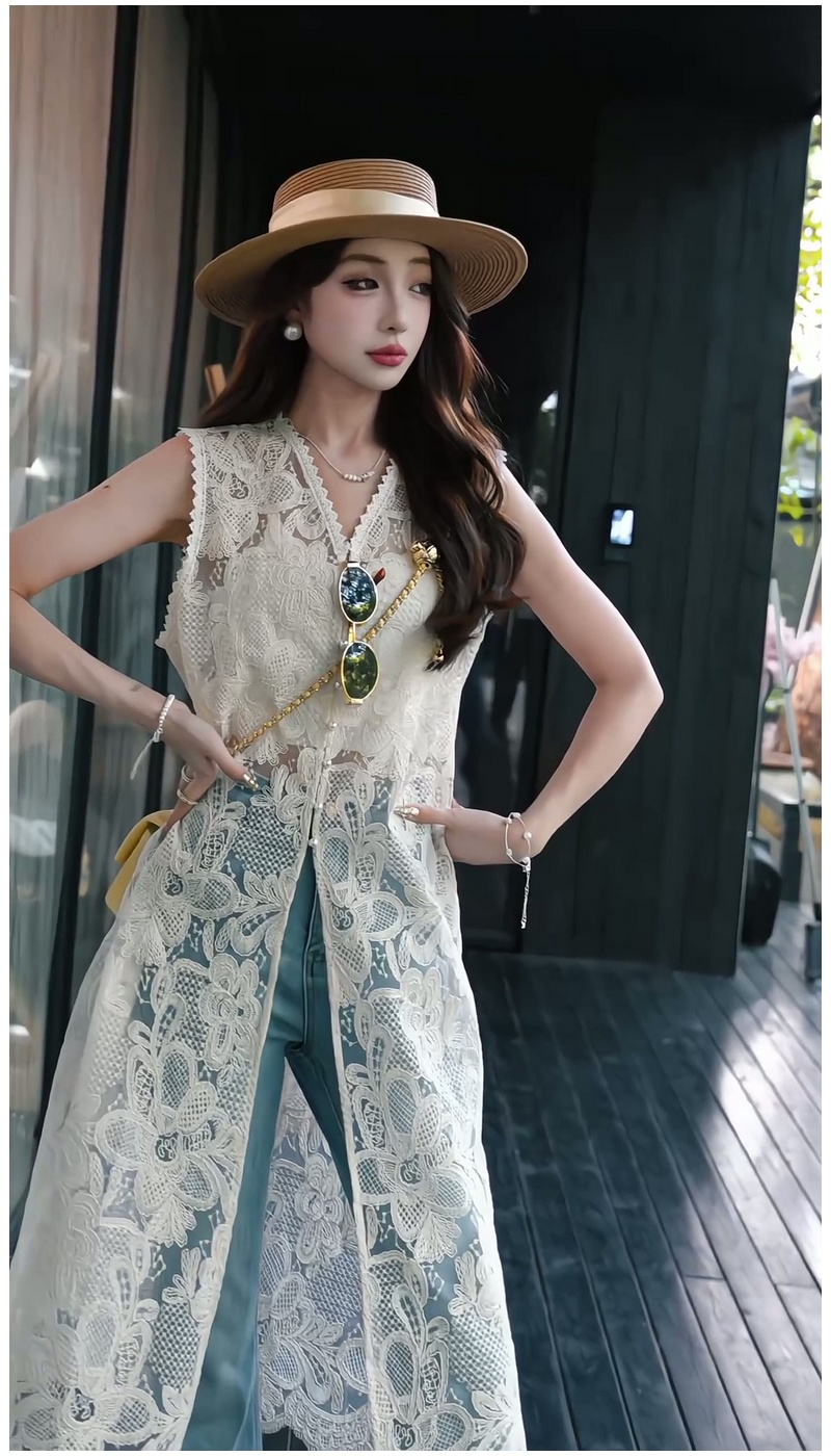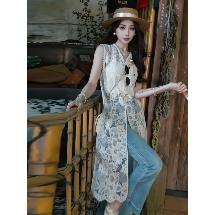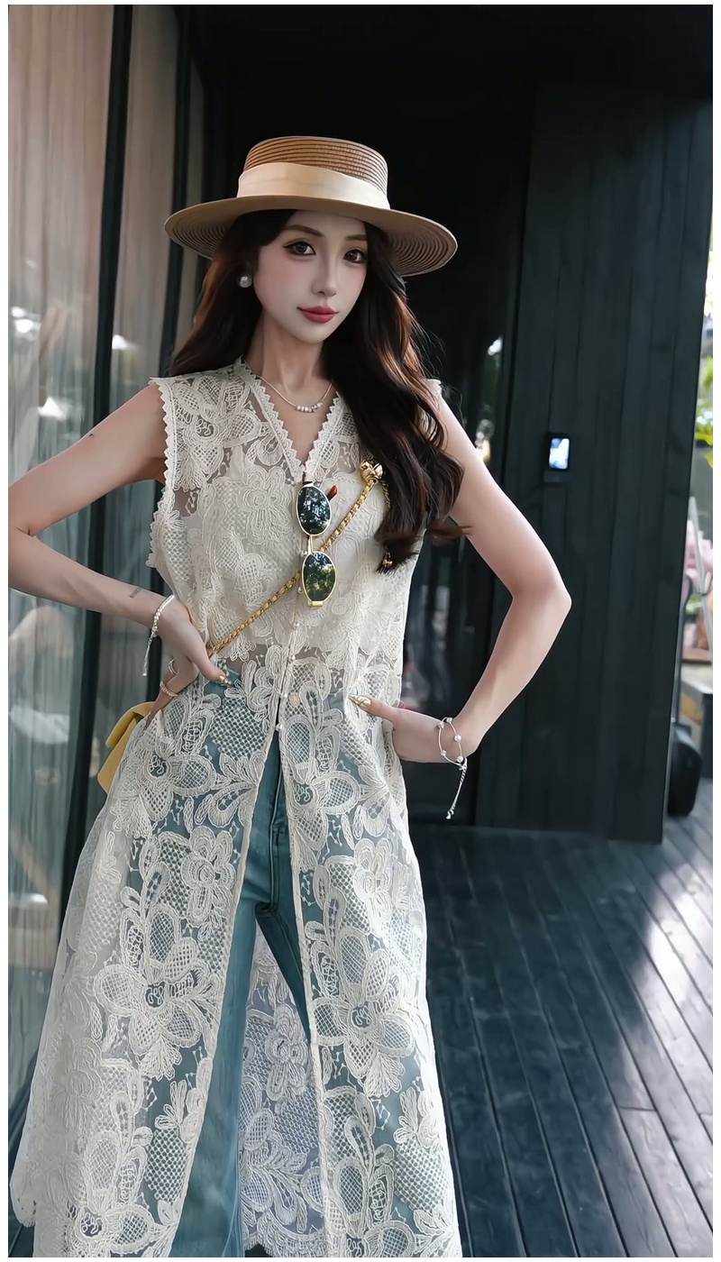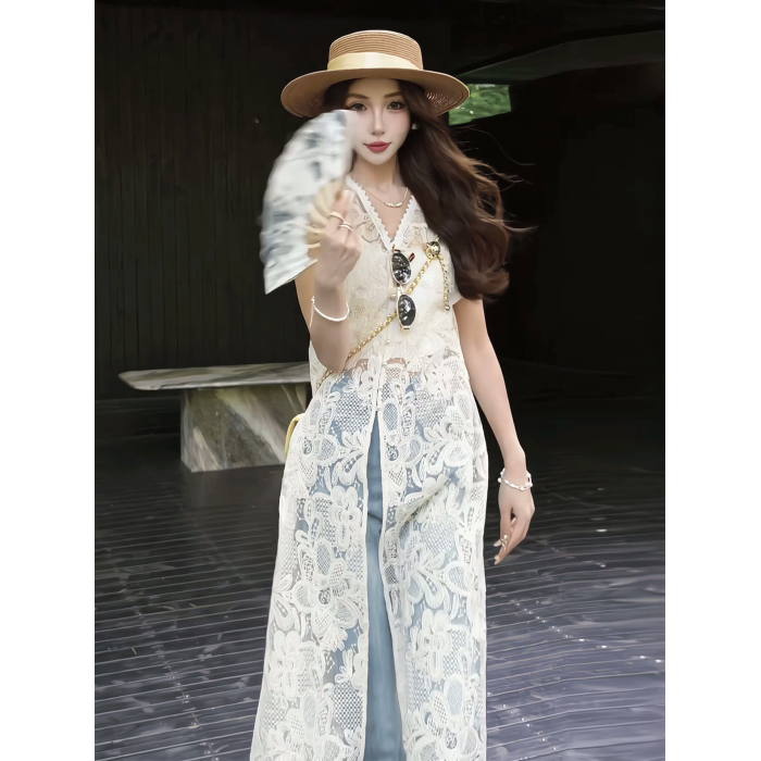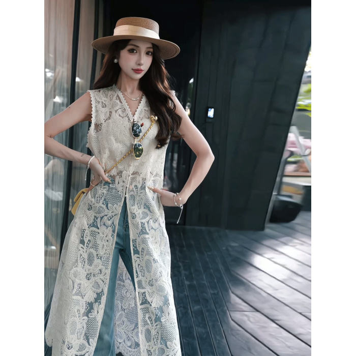 鏤空蕾絲無袖罩衫提花連衣裙女2025夏季新款高級大氣上檔次背心裙