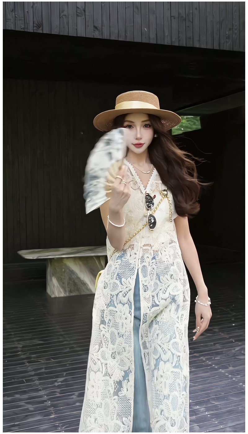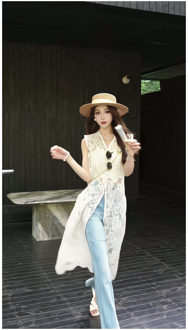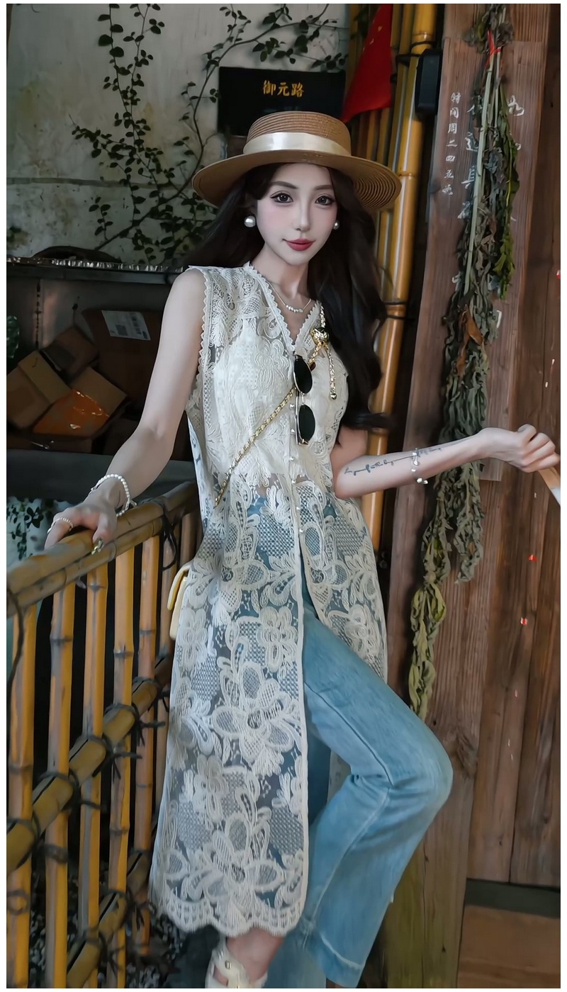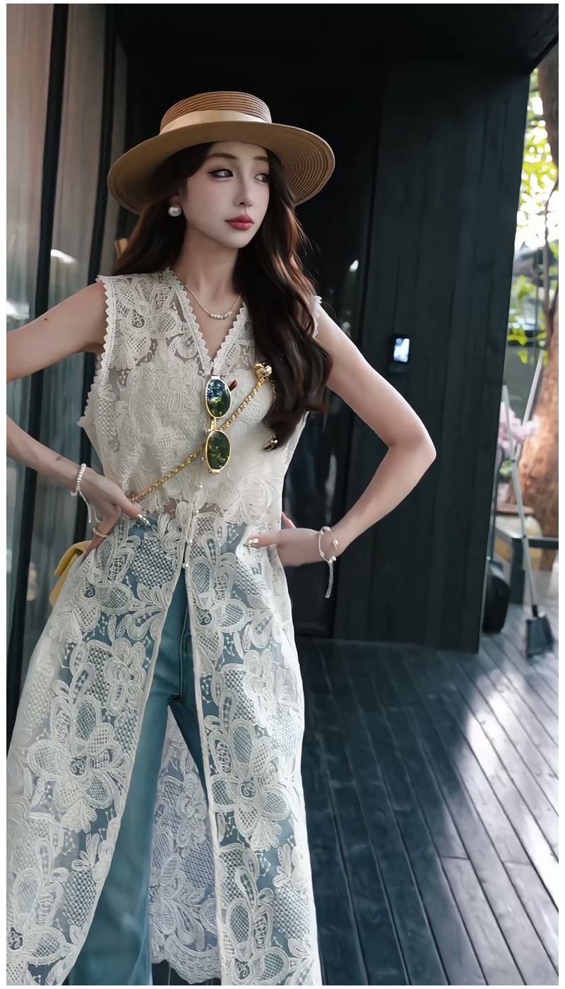 鏤空蕾絲無袖罩衫提花連衣裙女2025夏季新款高級大氣上檔次背心裙