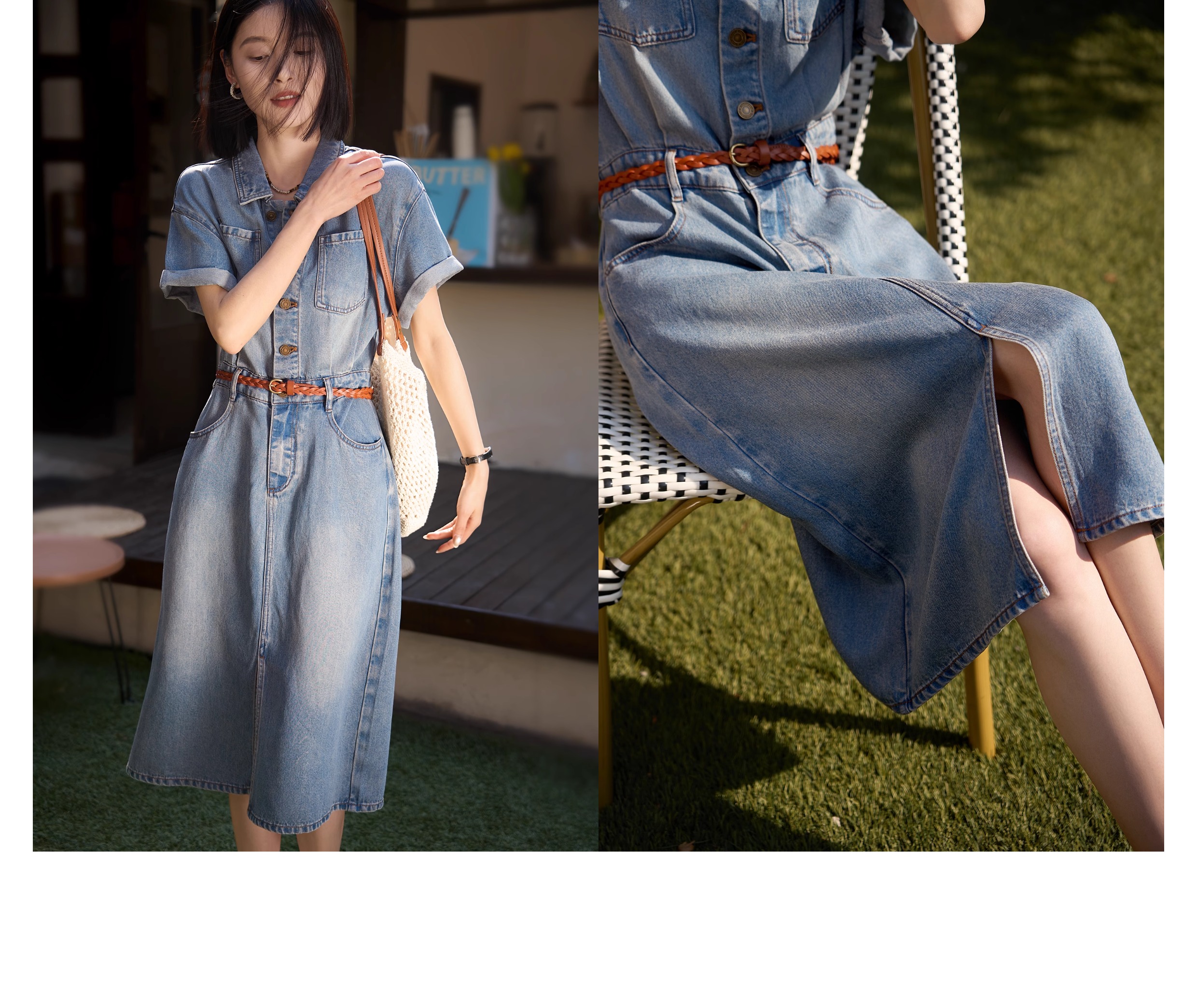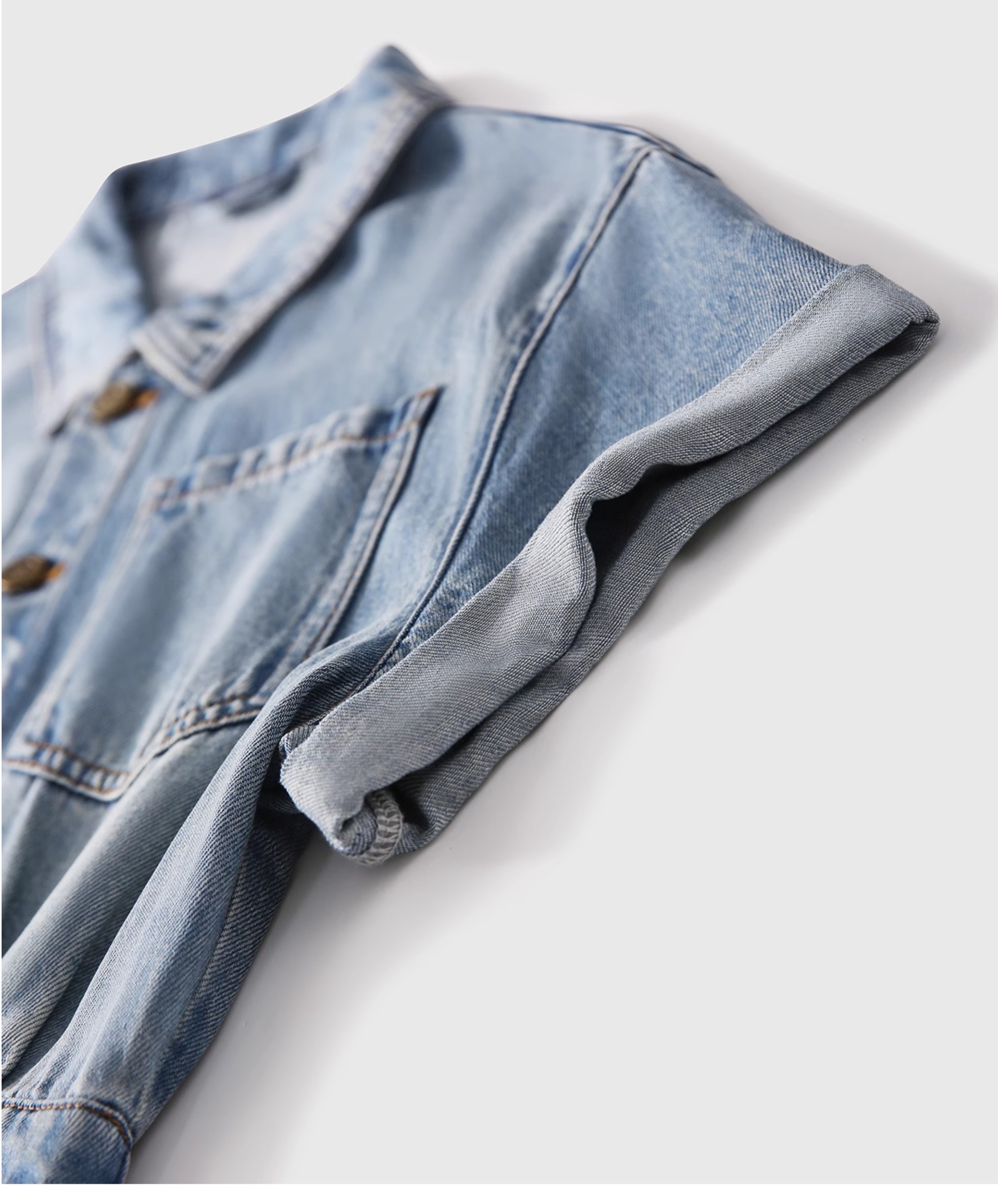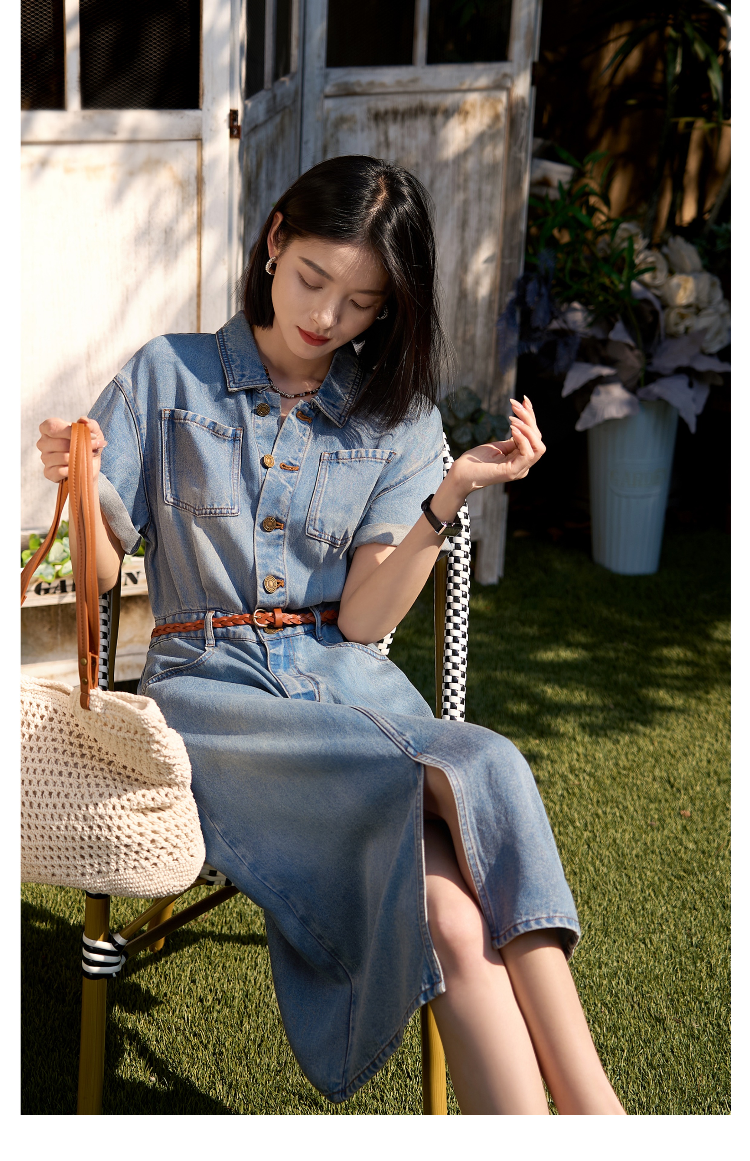 【丹甯時刻-天絲牛仔裙】清爽高腰顯瘦休閒短袖連衣裙春季新款の