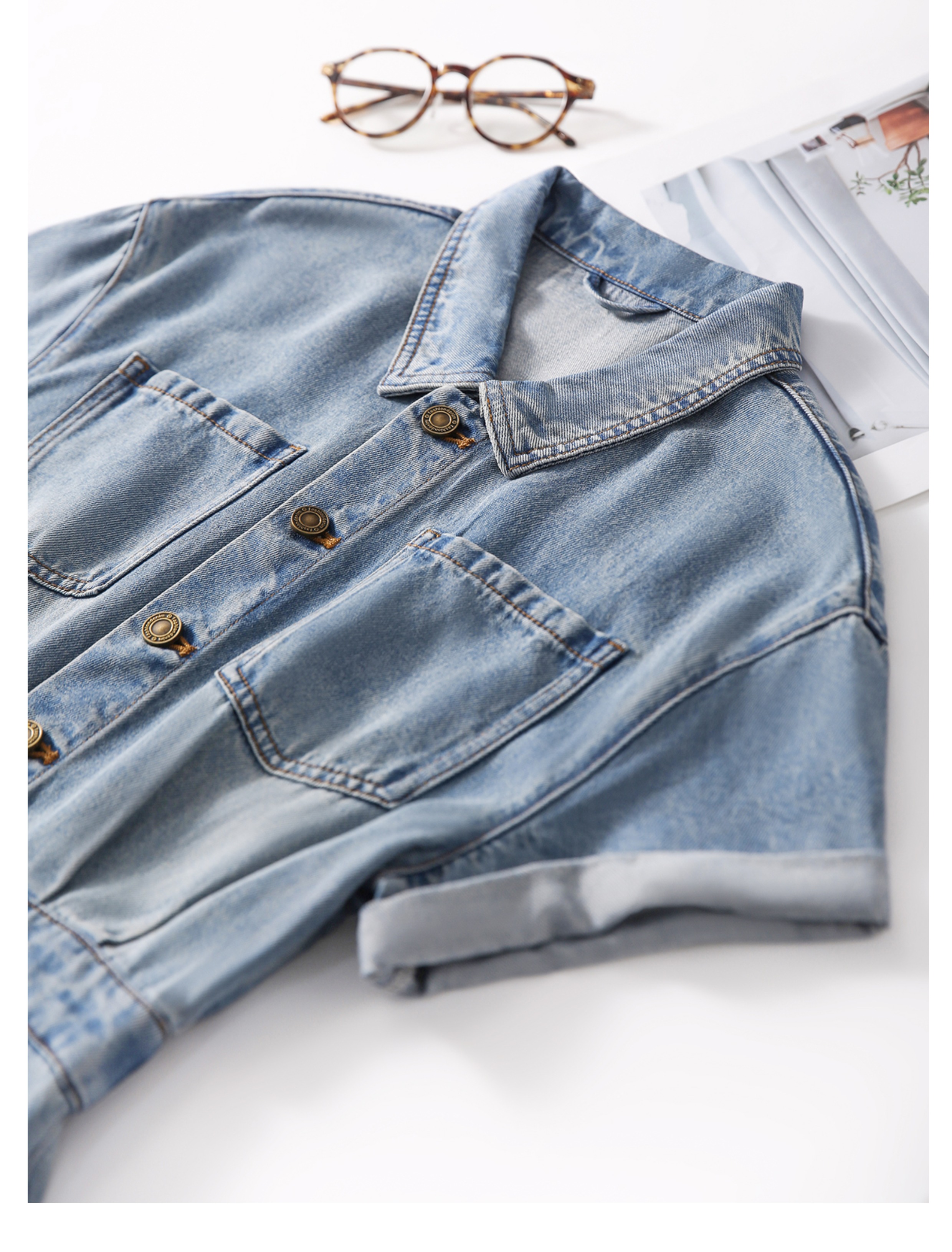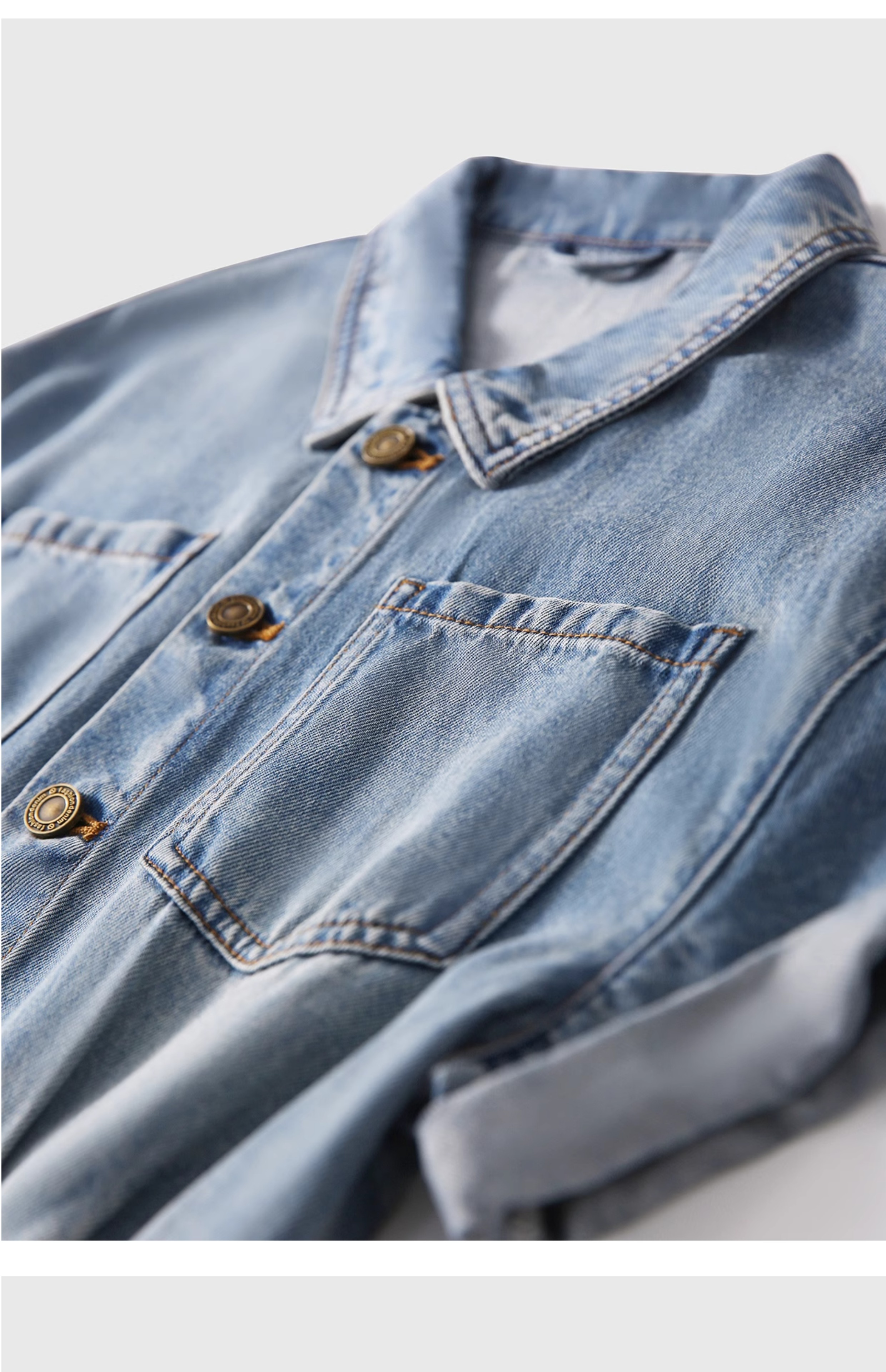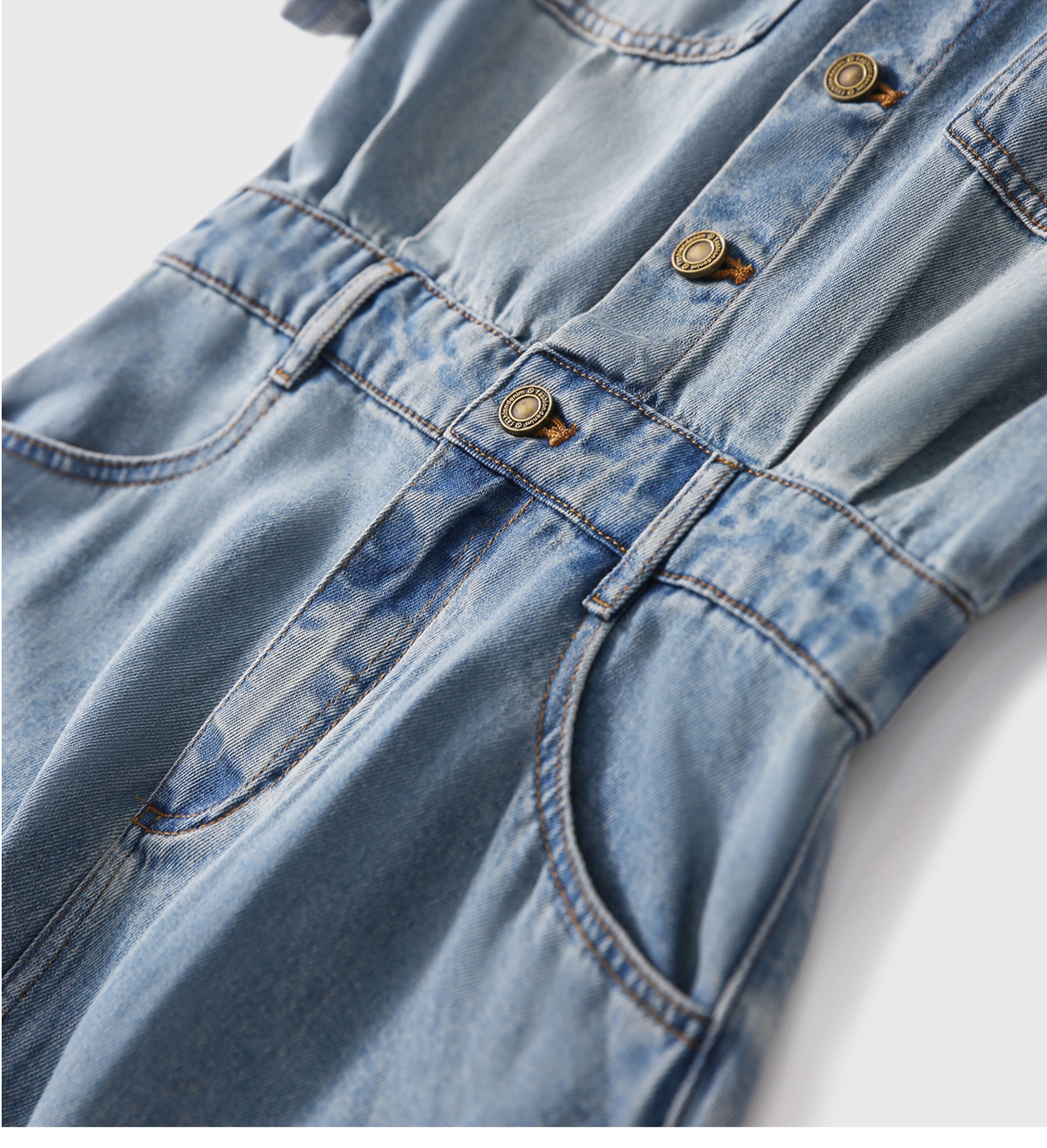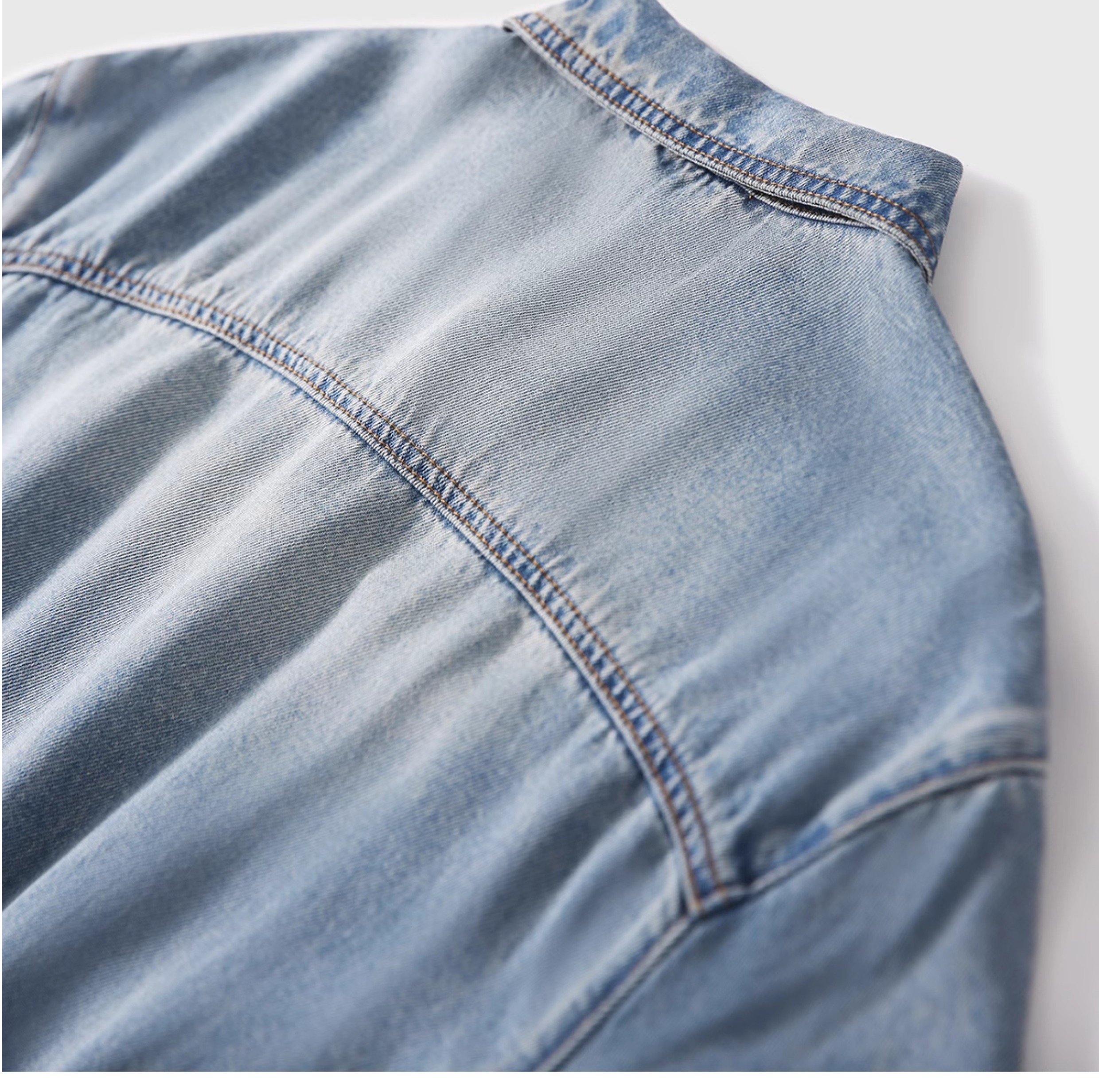 【丹甯時刻-天絲牛仔裙】清爽高腰顯瘦休閒短袖連衣裙春季新款の