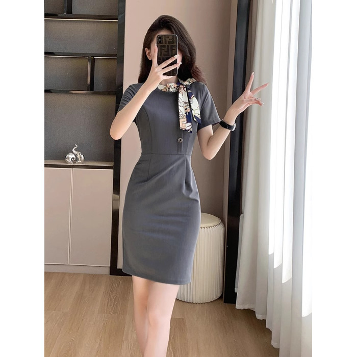 夏裝新款氣質顯瘦職業裝連衣裙女美容師珠寶店酒店時尚高級工作服