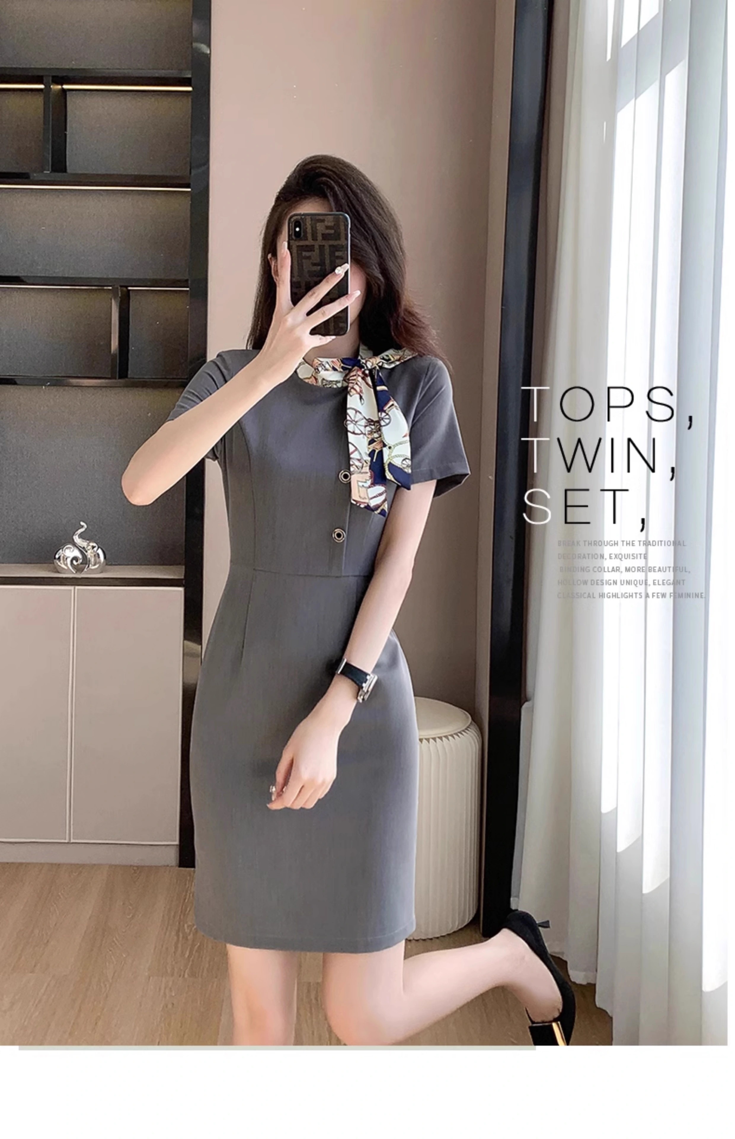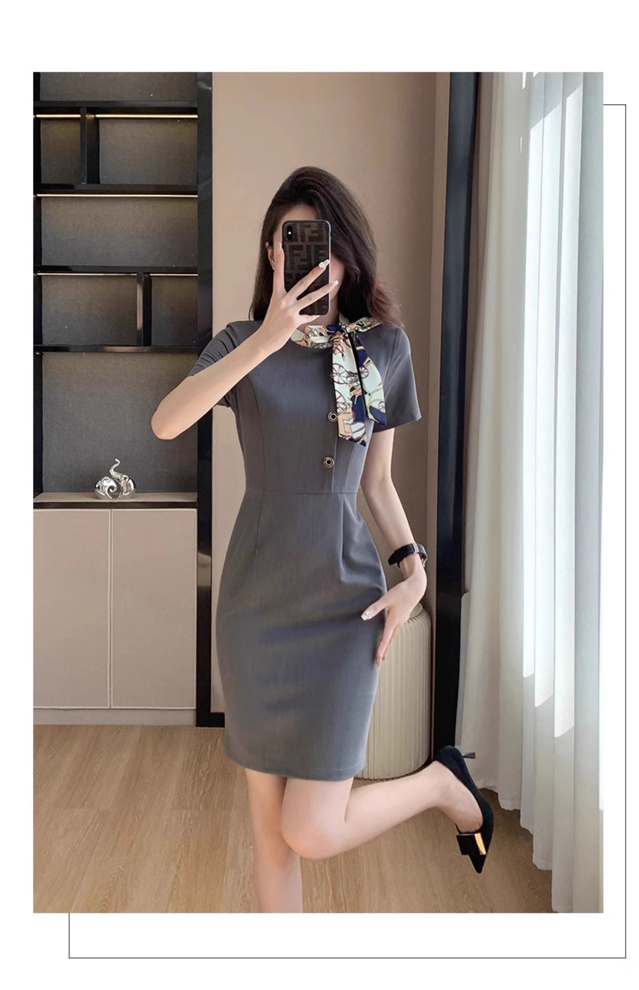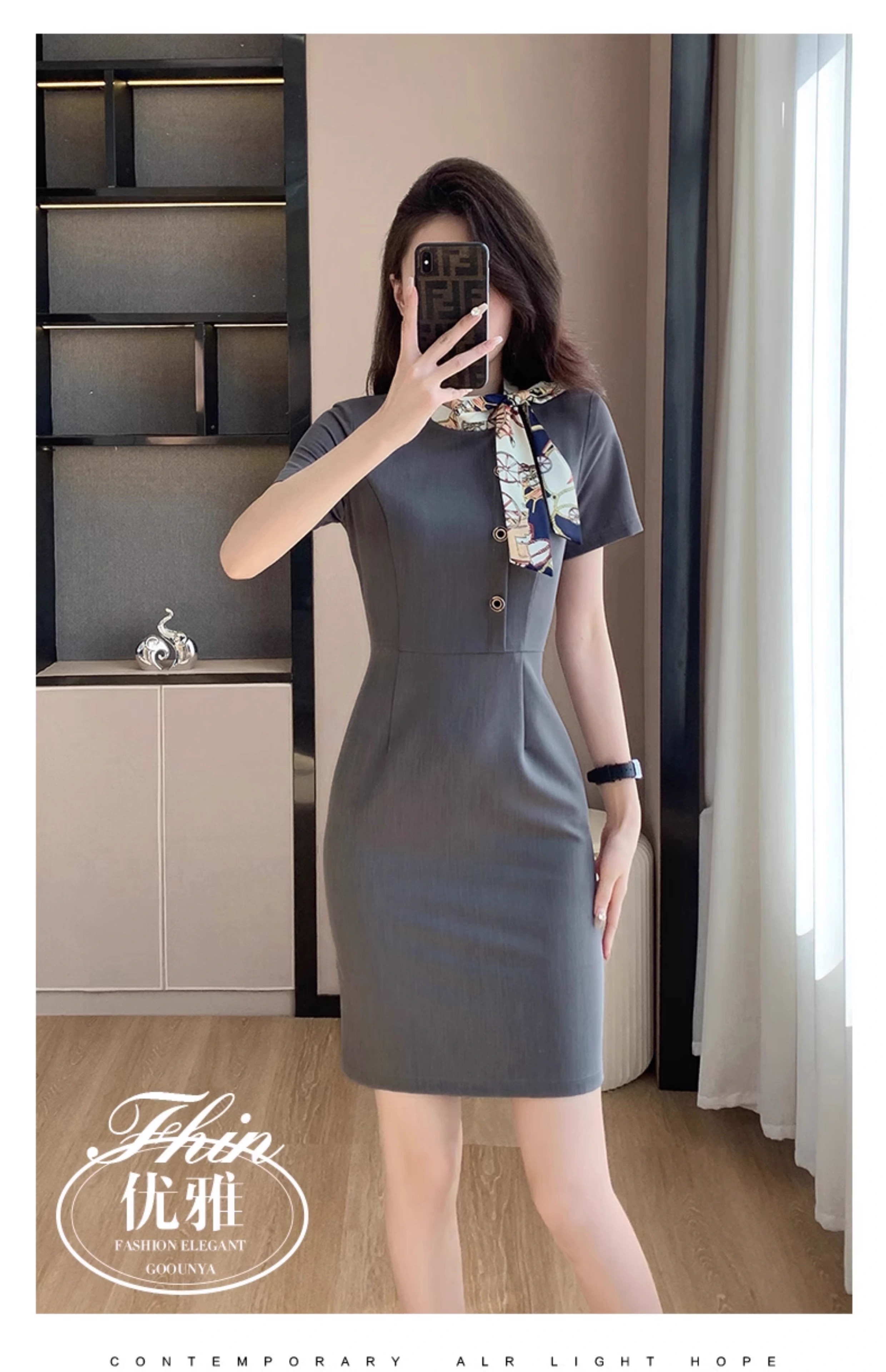 灰色短袖連衣裙
