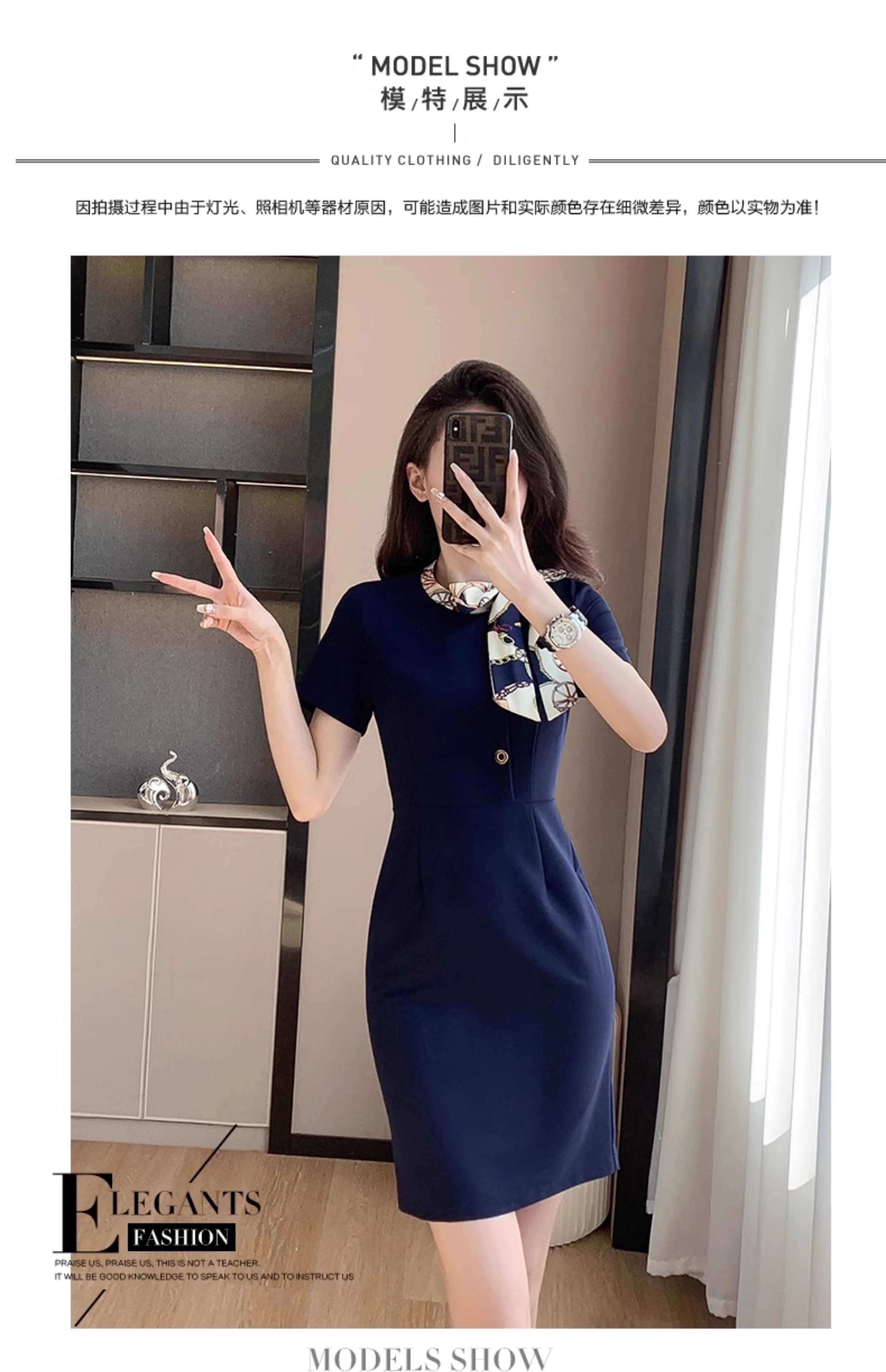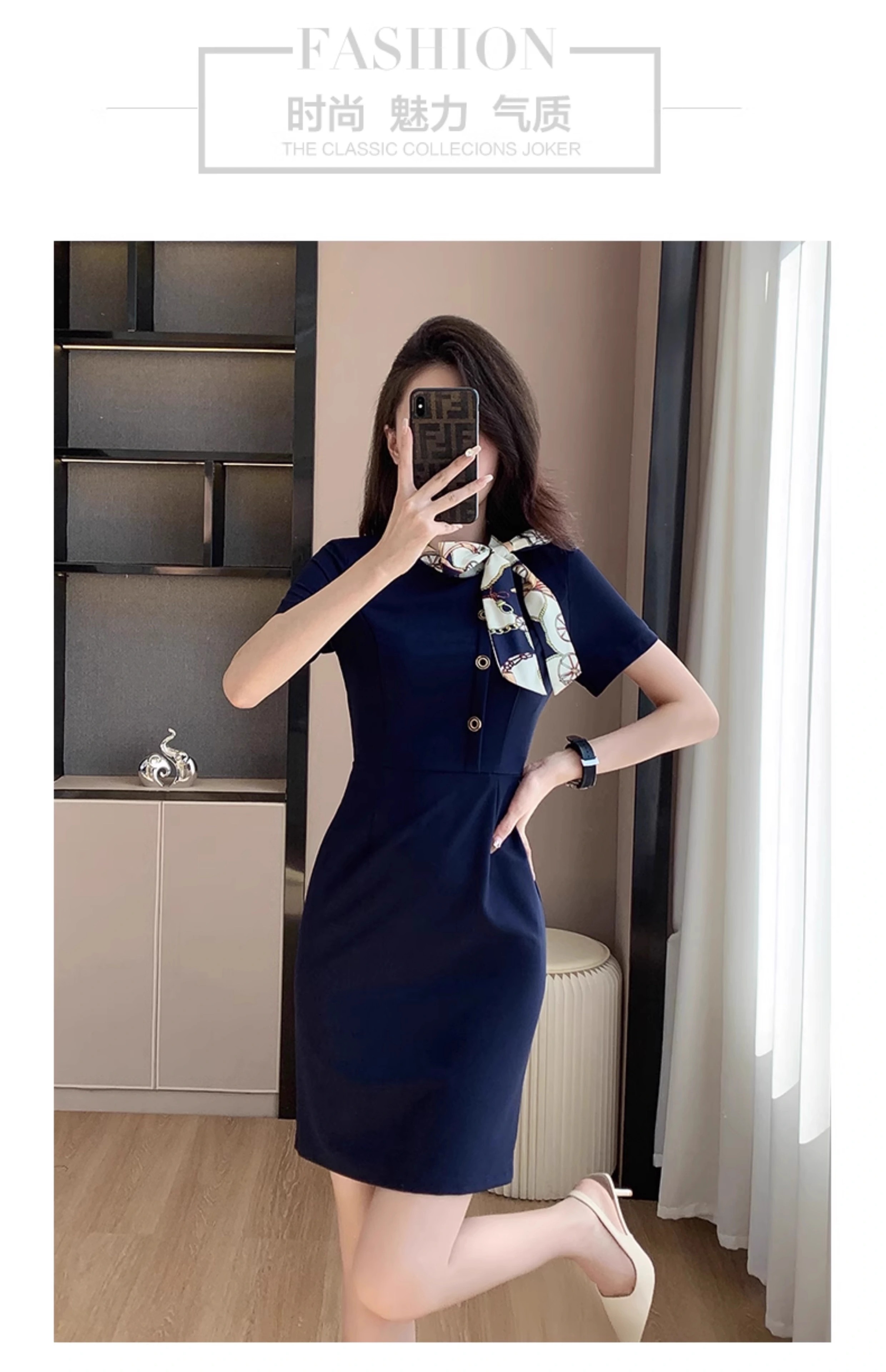 藏青色短袖連衣裙