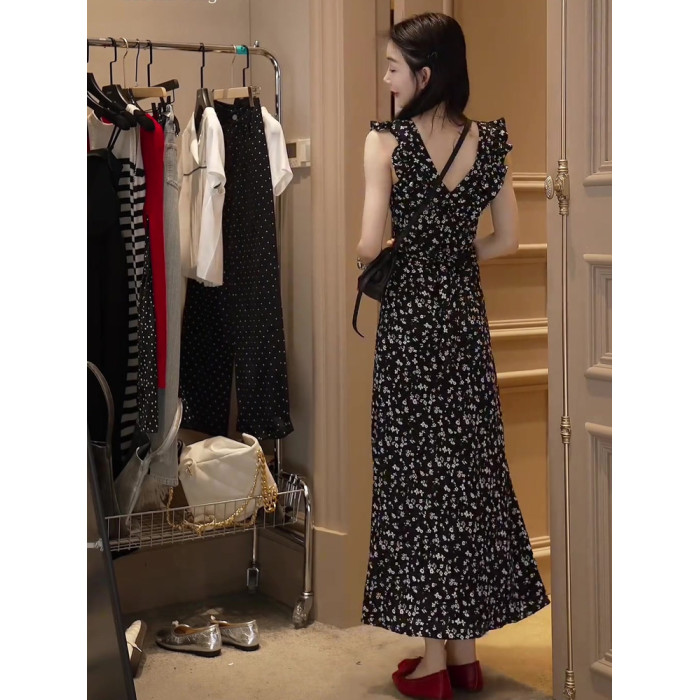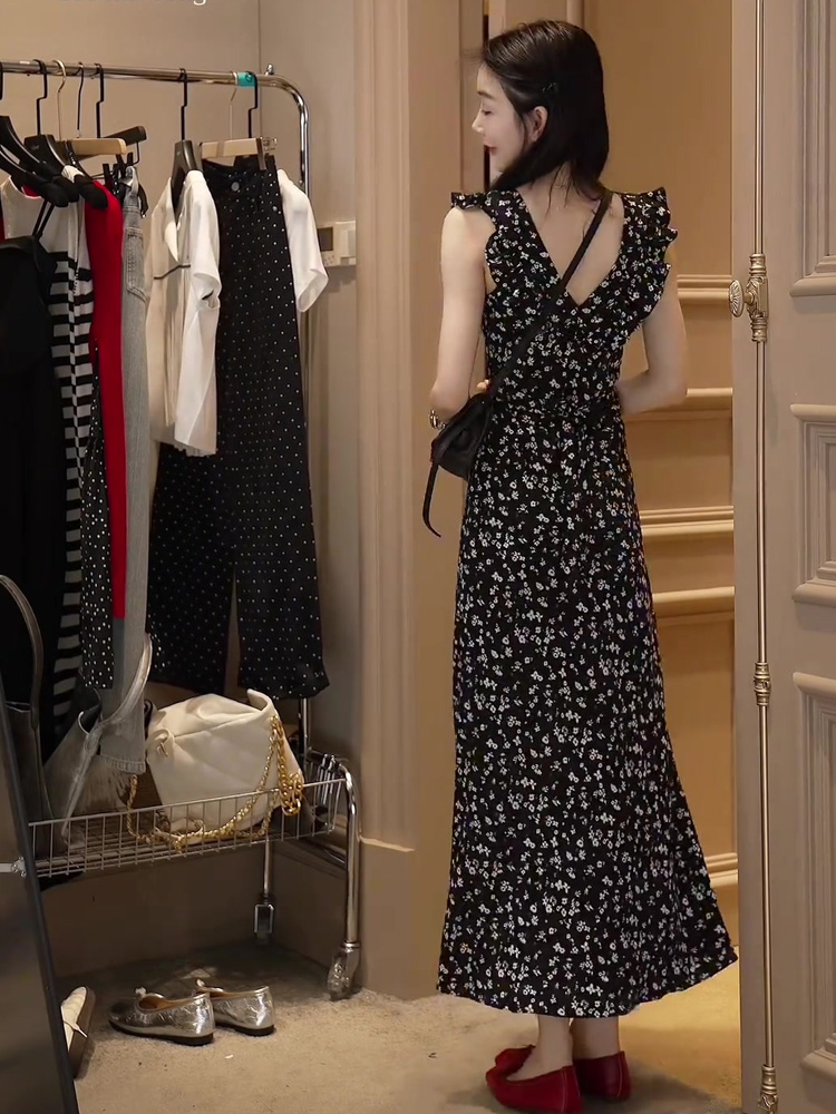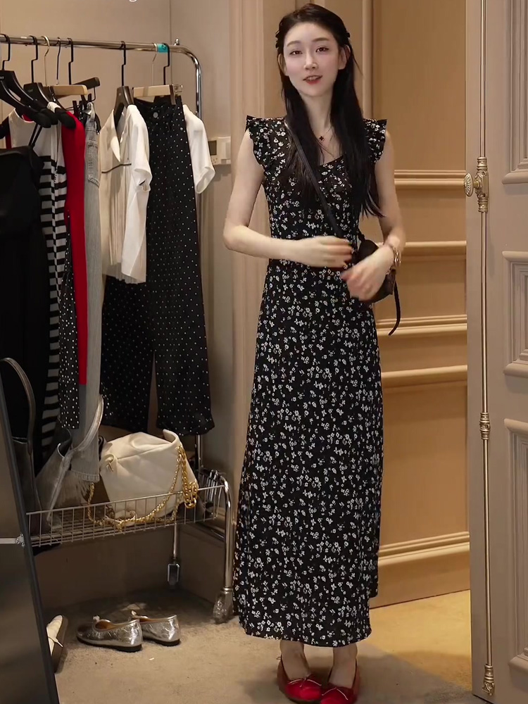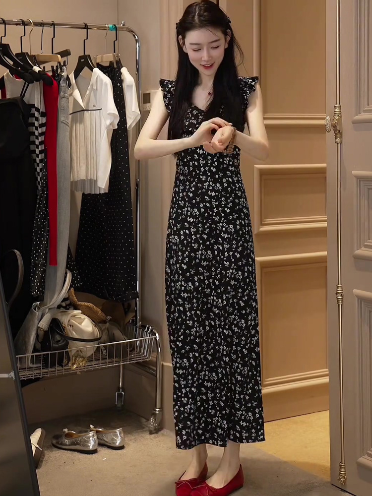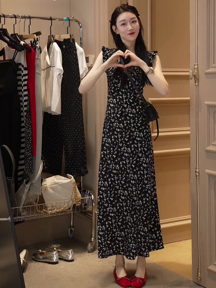 oajer歐紀兒旗艦女裝店鷗同款夏季復古小飛袖設計收腰碎花連衣裙