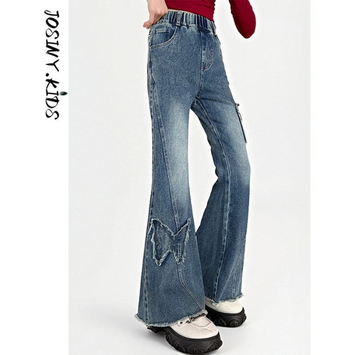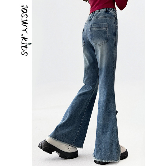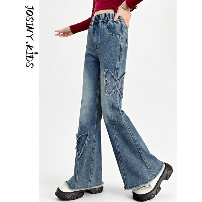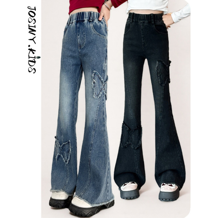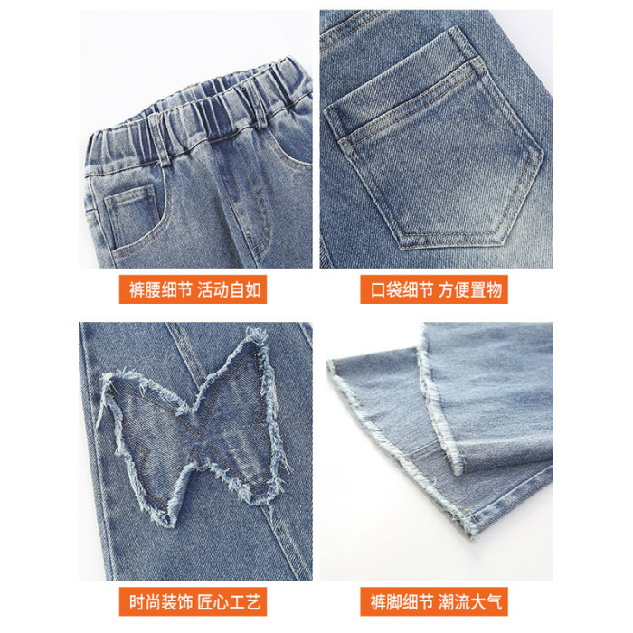 卓詩尼女童喇叭褲春秋款2025新款蝴蝶圖案牛仔褲大童夏季褲子外穿