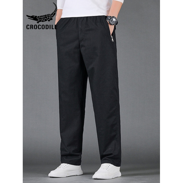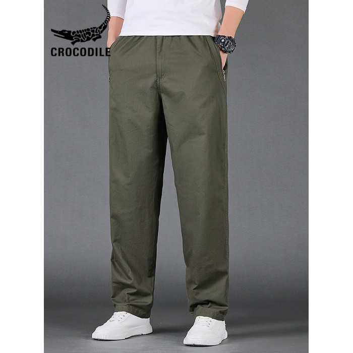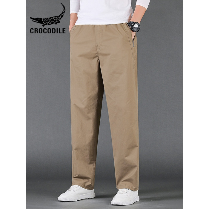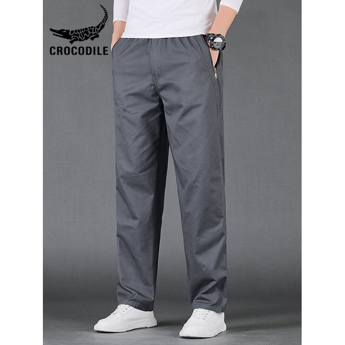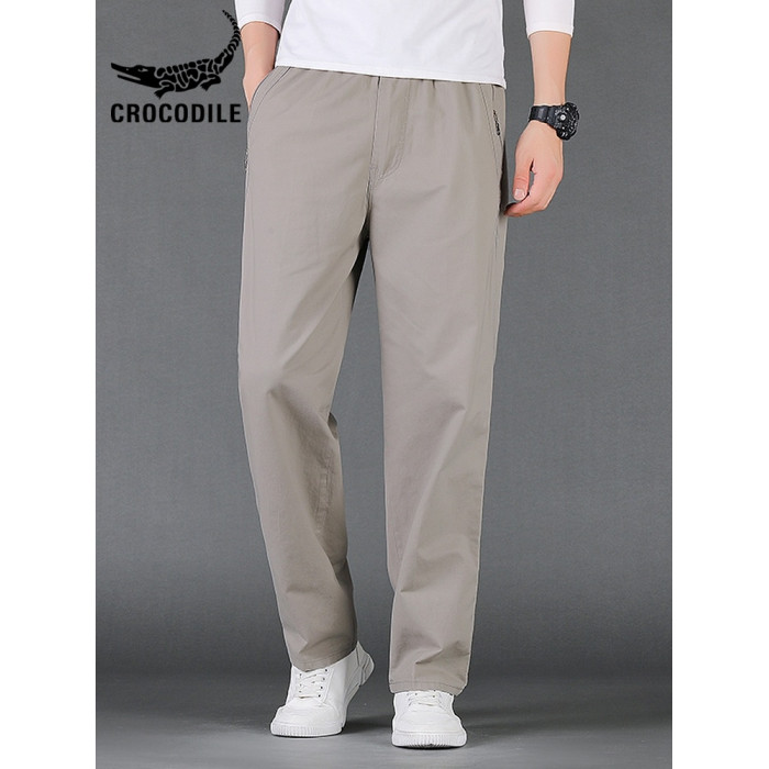 鱷魚恤純棉休閒褲男士潮牌寬松直筒濶腿褲2025年夏季薄款長褲子男