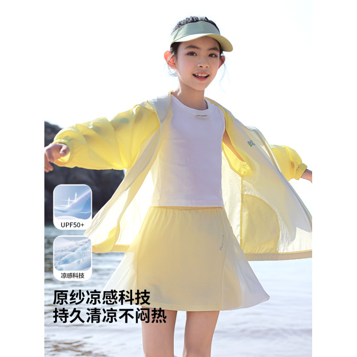 女童2025夏季新款防曬衣兒童原紗涼感連帽夏裝大童防紫外線UPF50+