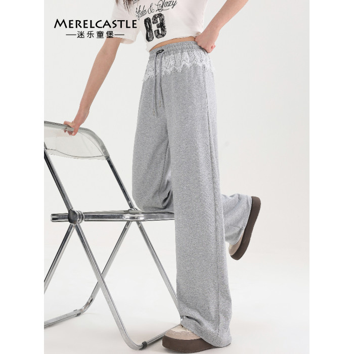 【CC家居控】女童運動褲夏季蕾絲邊褲子女大童寬松薄款衛褲C4668