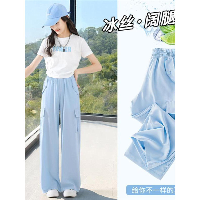 英國NextRtrx女童工裝褲夏季薄款2025新款大童濶腿褲兒童冰絲褲子