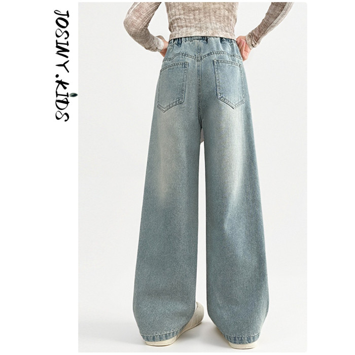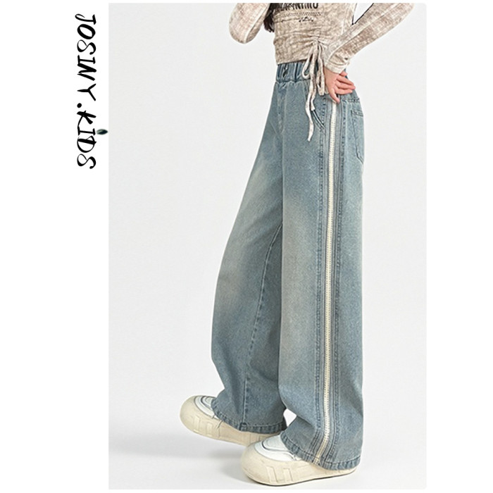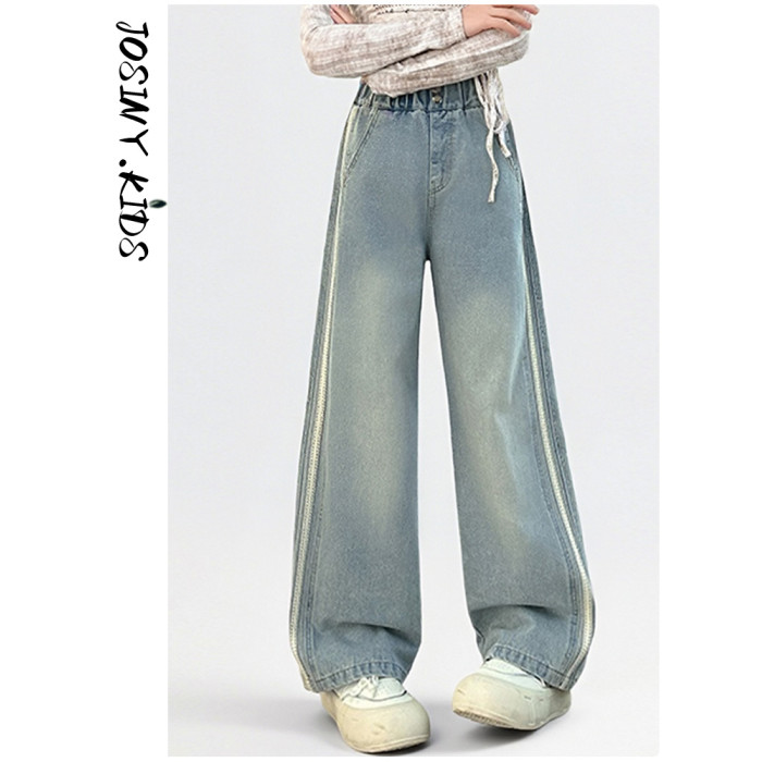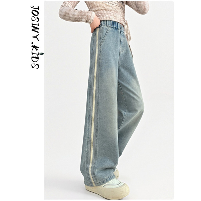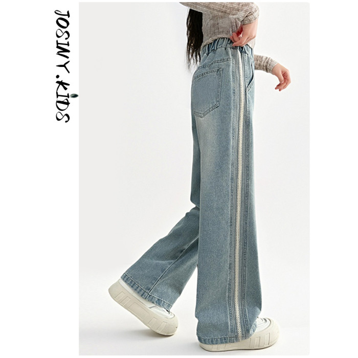 卓詩尼女童褲子夏季薄款2025新款兒童春秋款牛仔褲大童女孩濶腿褲