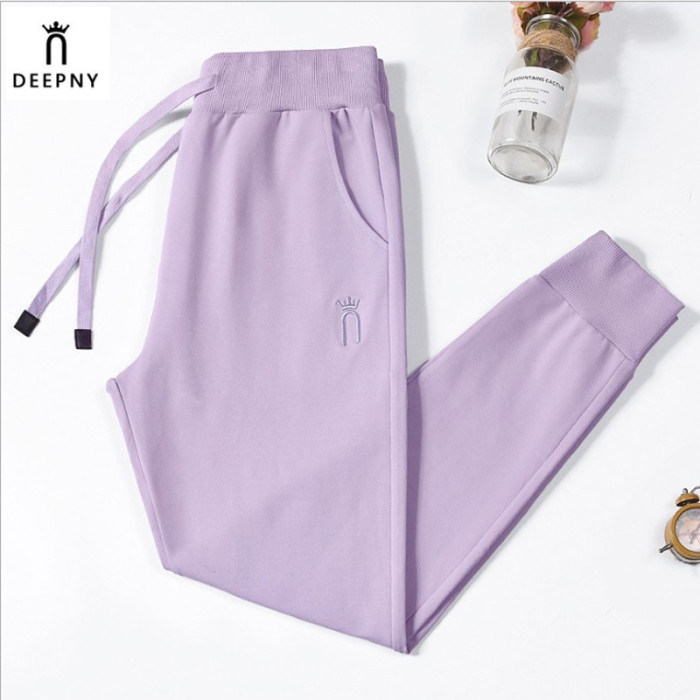 女士棉衛褲小腳運動褲子秋冬薄厚休閒哈倫褲灰色紫色九分/長褲
