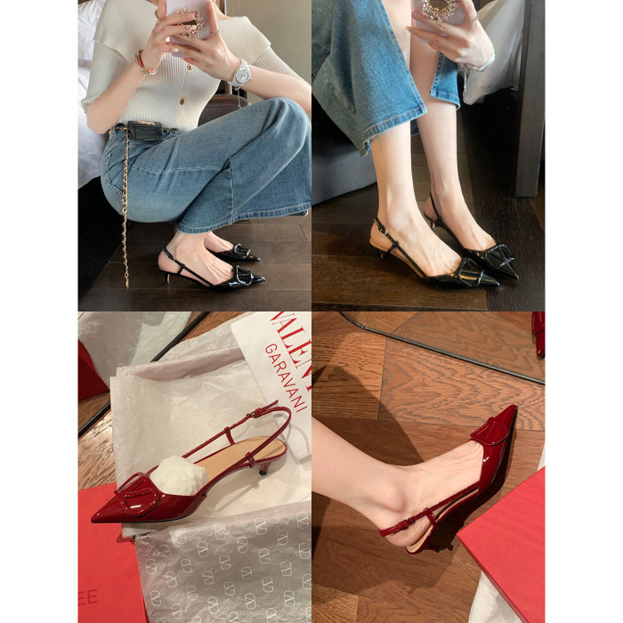 葡萄媽studiolee 莫妮卡小姐~氣質尖頭高跟鞋漆皮後空細跟涼鞋女