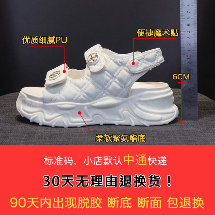 涼鞋女仙女風2025年新款夏季百搭女款厚底松糕魔術貼運動沙灘涼鞋