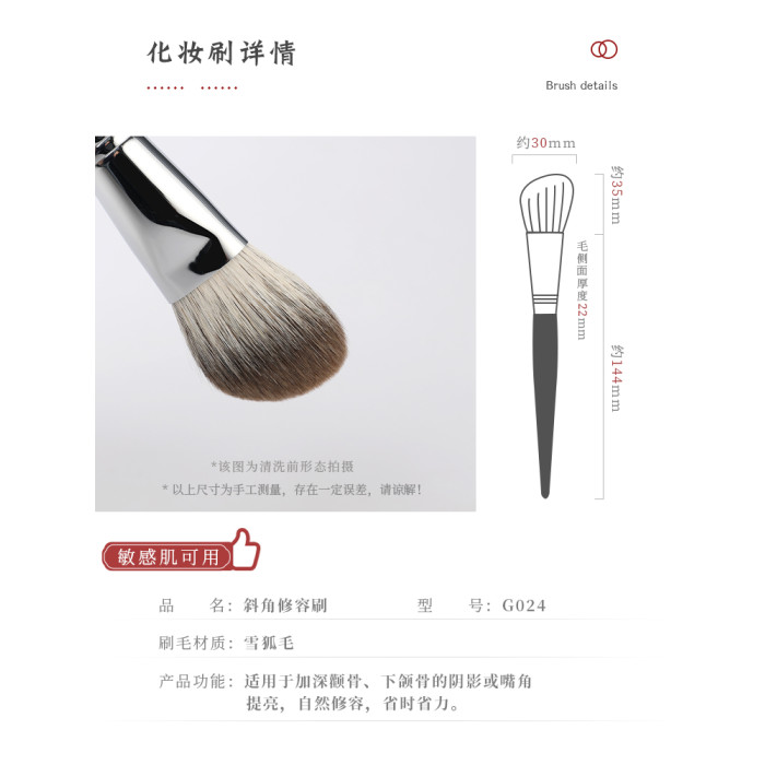 琴製化妝刷G系列G024修容刷一支裝雪狐毛腮紅刷純手工製作隂影刷