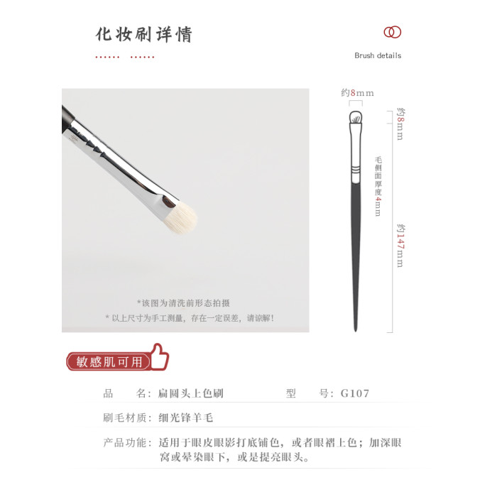 琴製化妝刷G系列G107眼影刷一支裝小號細光鋒羊毛眼部細節上色刷