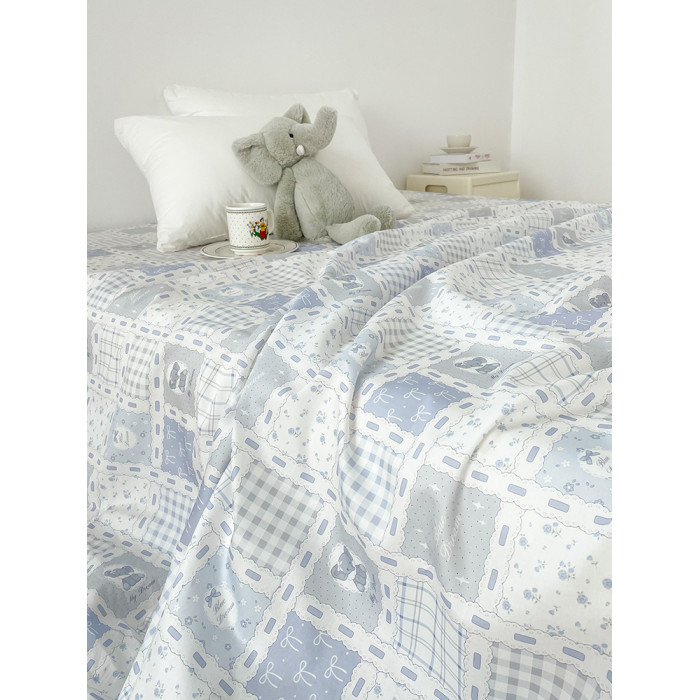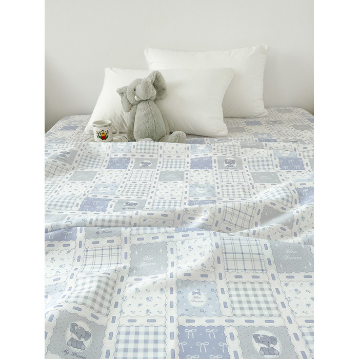 艾米日記 原創藍色小象全棉床單床笠100棉被單床罩拼布可愛碎花