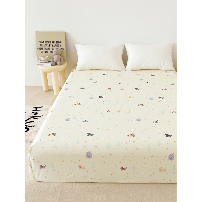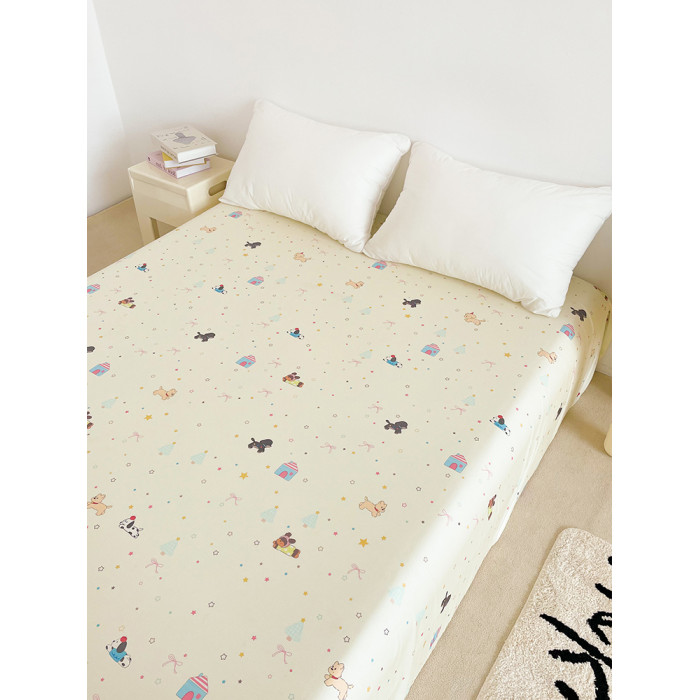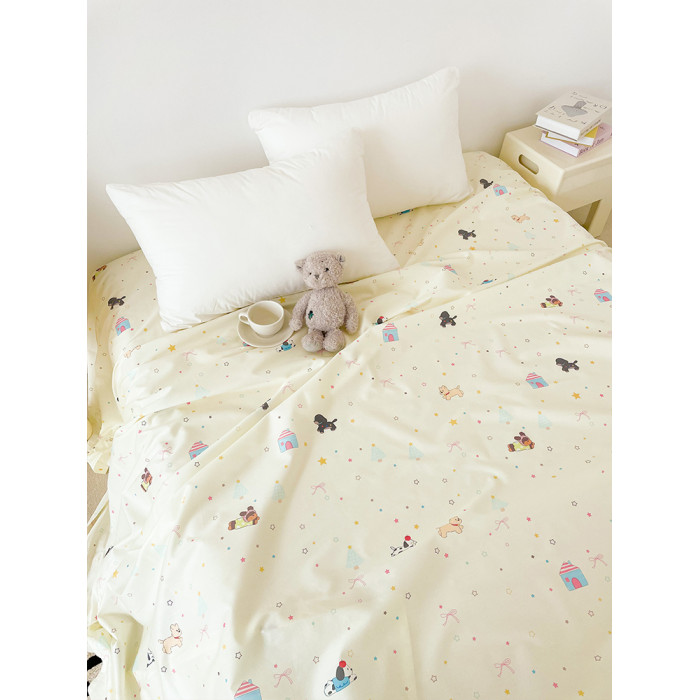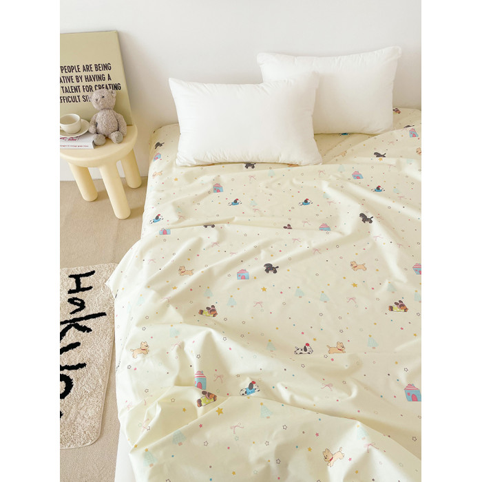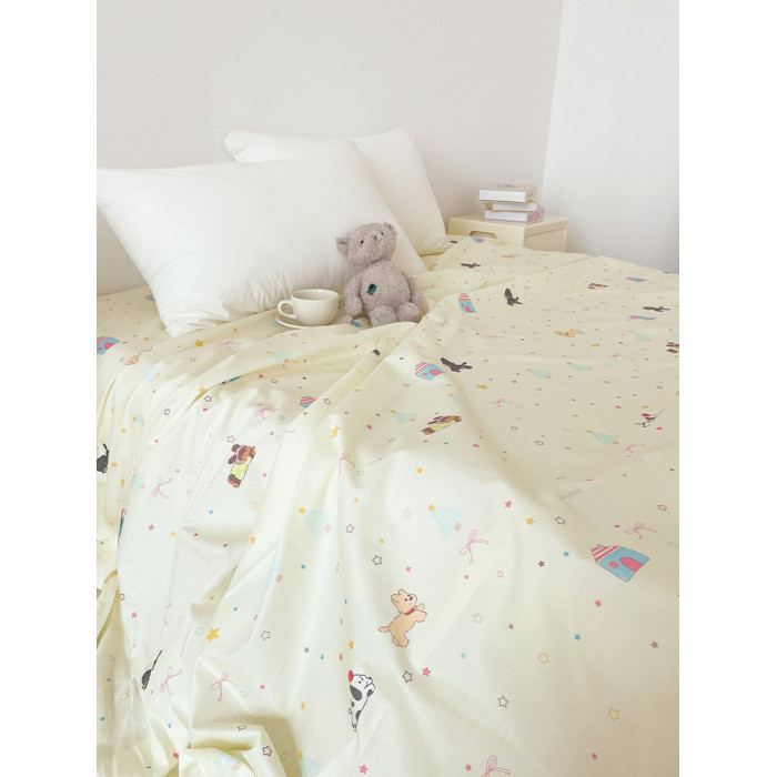 小狗心願 奶油風原創可愛全棉床單床笠單件被單100棉奶黃可愛星星