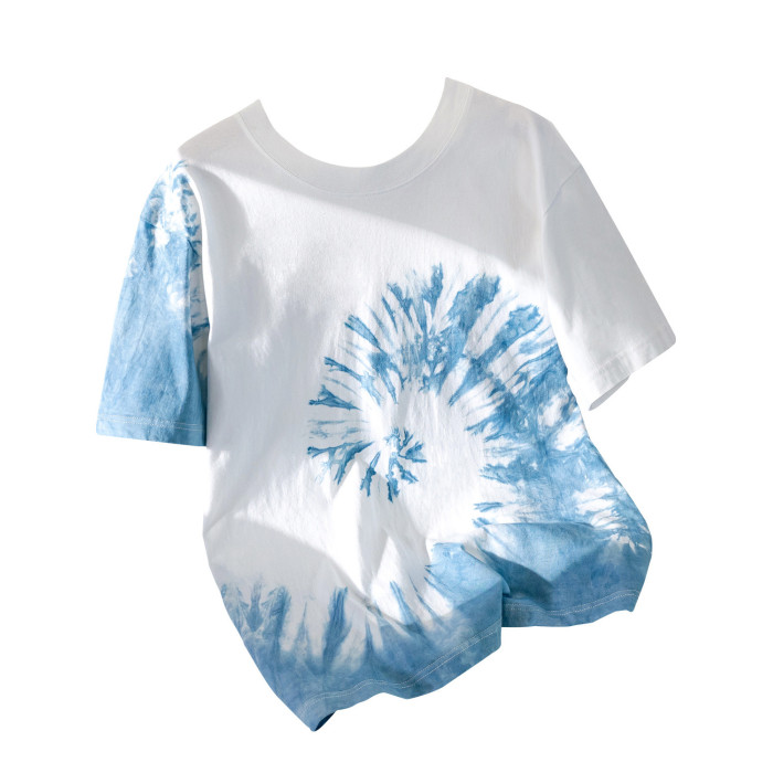 大理手工紥染民族風親子裝T恤夏季休閒度假女童藍染T恤男女純棉