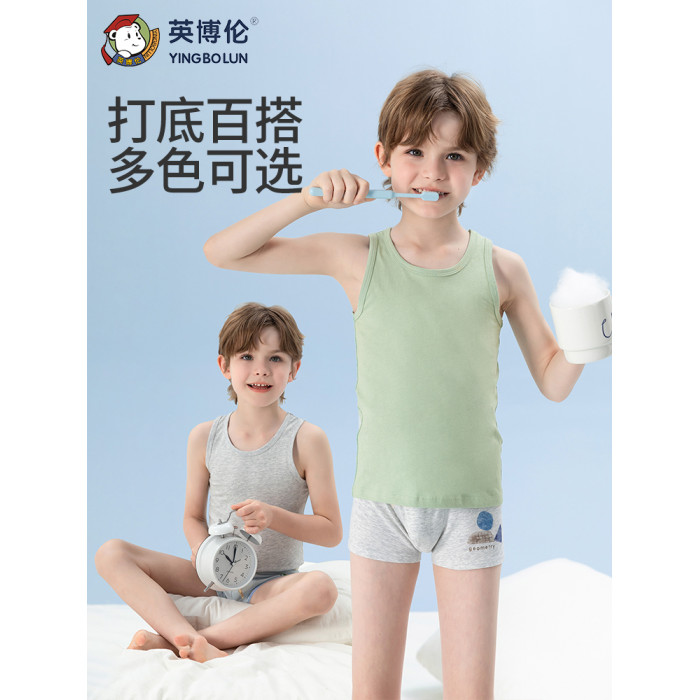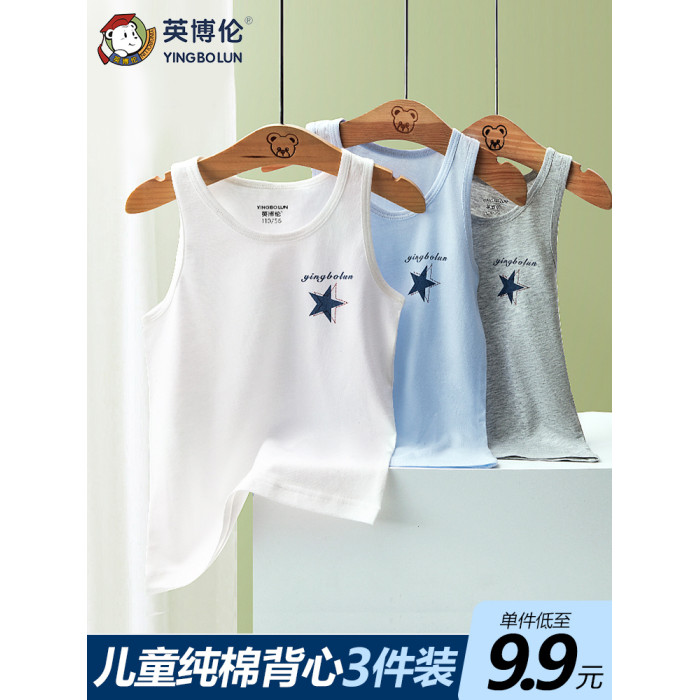 英博倫兒童背心春秋純棉薄款男童寶寶小孩男孩中大童夏季內穿打底