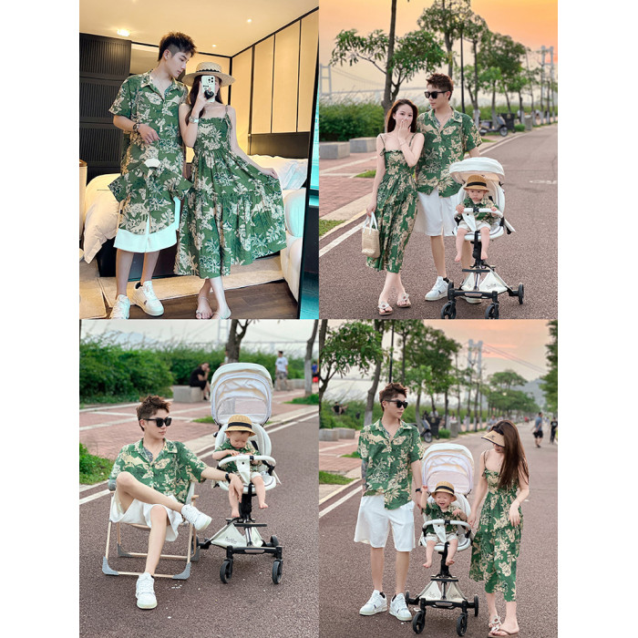 炸街親子裝一家三口夏裝新款母子裝母女裝海邊港風花連衣裙襯衫潮