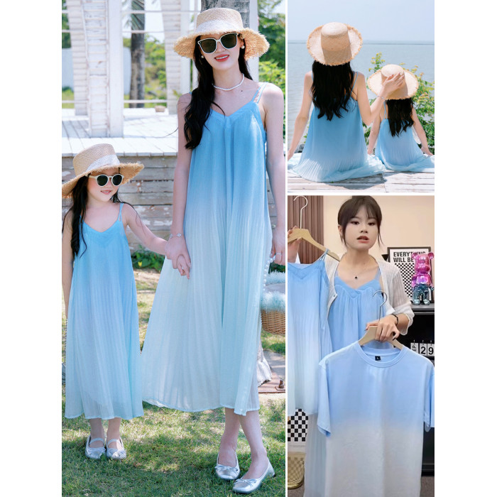 2025夏季海邊度假三亞沙灘裙親子裝母女裙長裙吊帶性感露背連衣裙