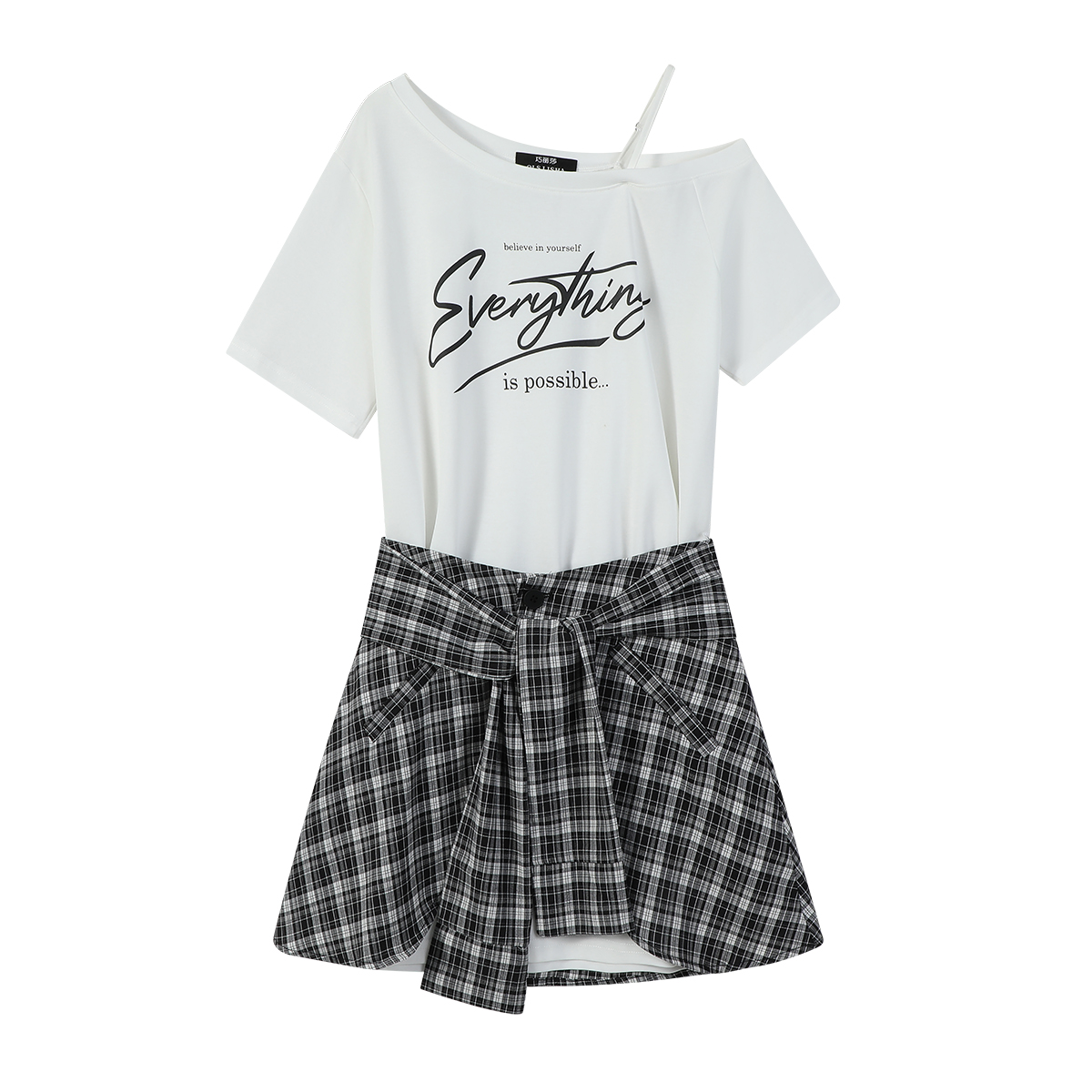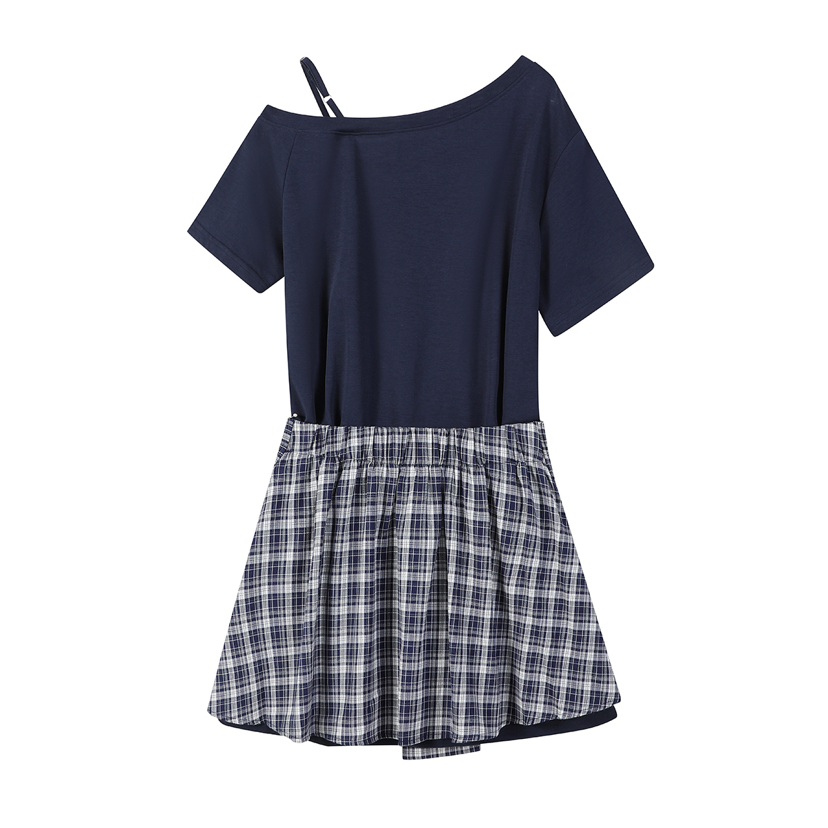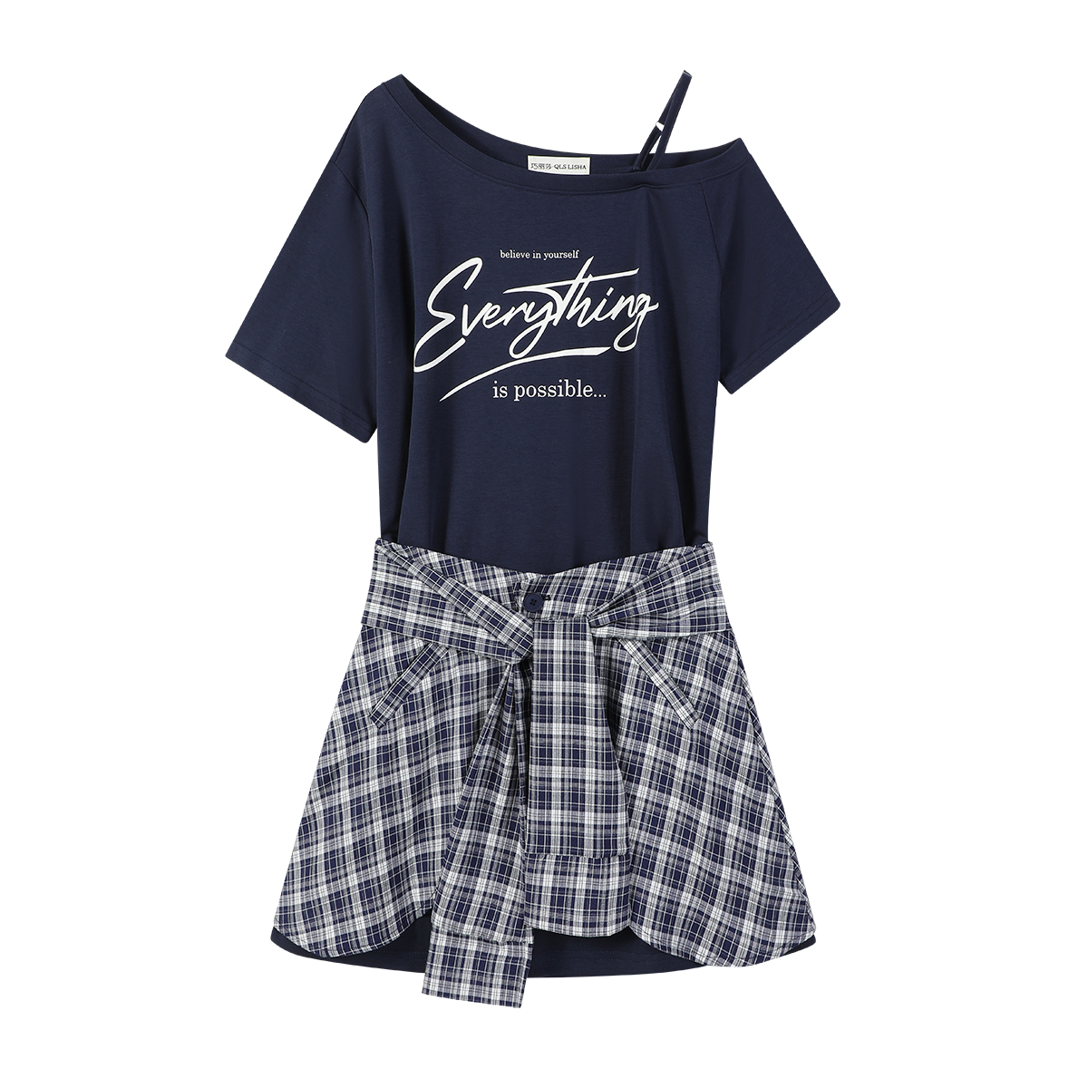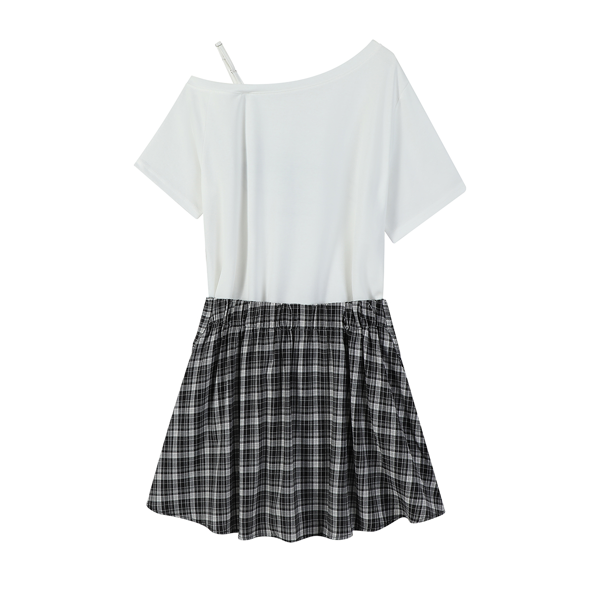 巧麗莎獨特超好看裙子兩件套美式斜肩吊帶拼接連衣裙女裝夏季套裝