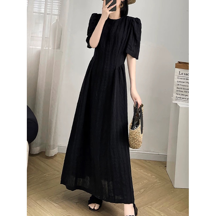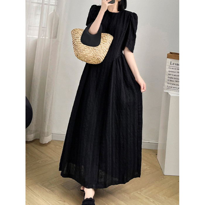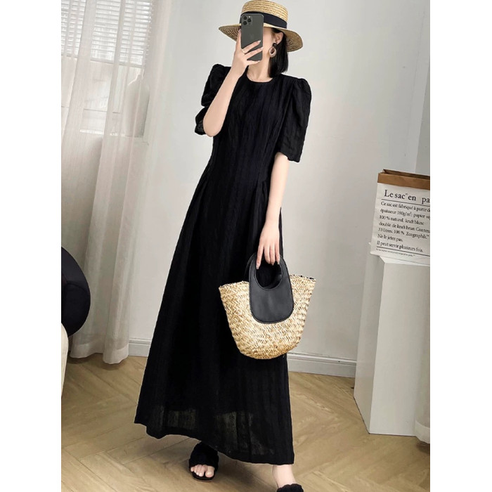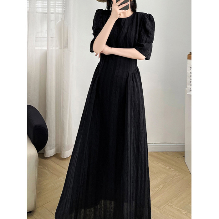 大碼法式長款氣質黑色連衣裙女2025新款顯瘦胖mm夏季長裙子到腳踝