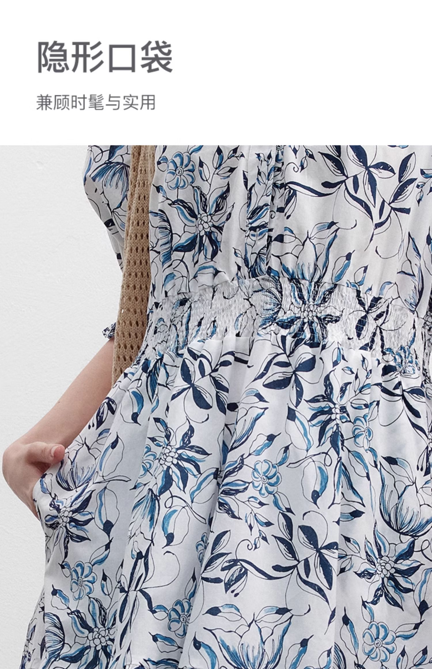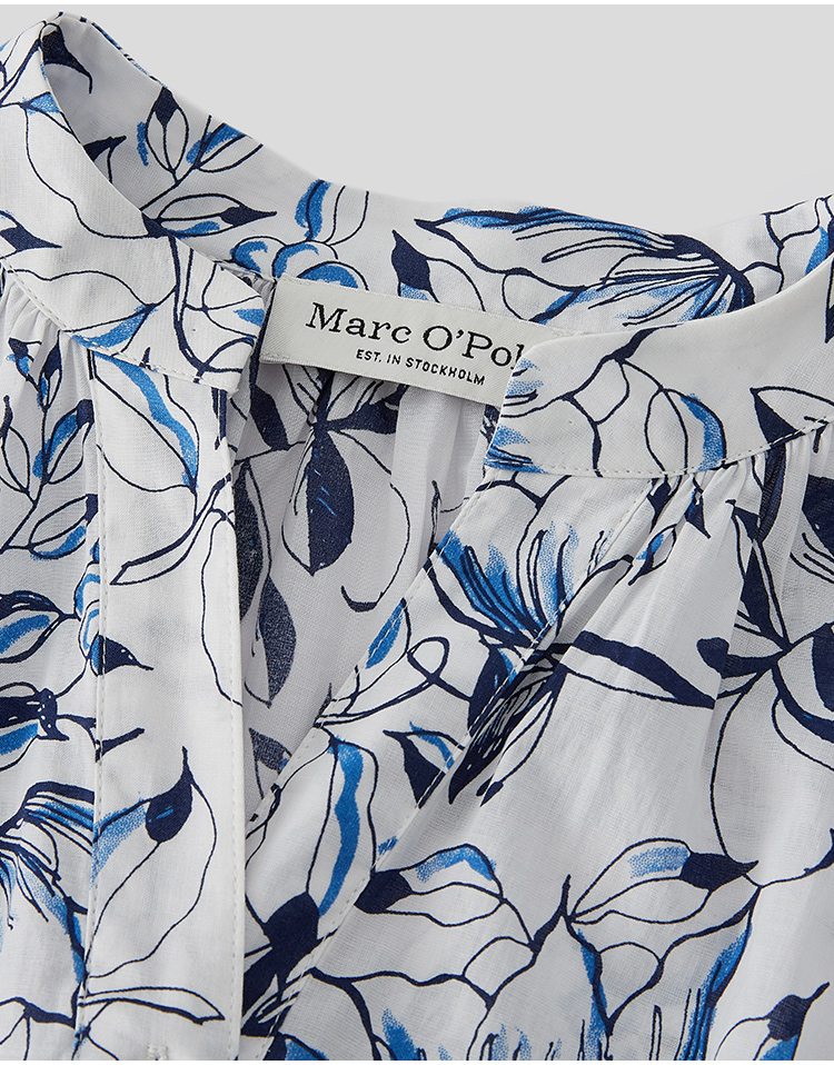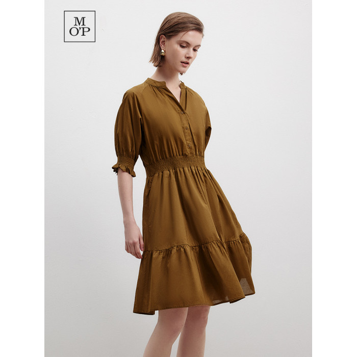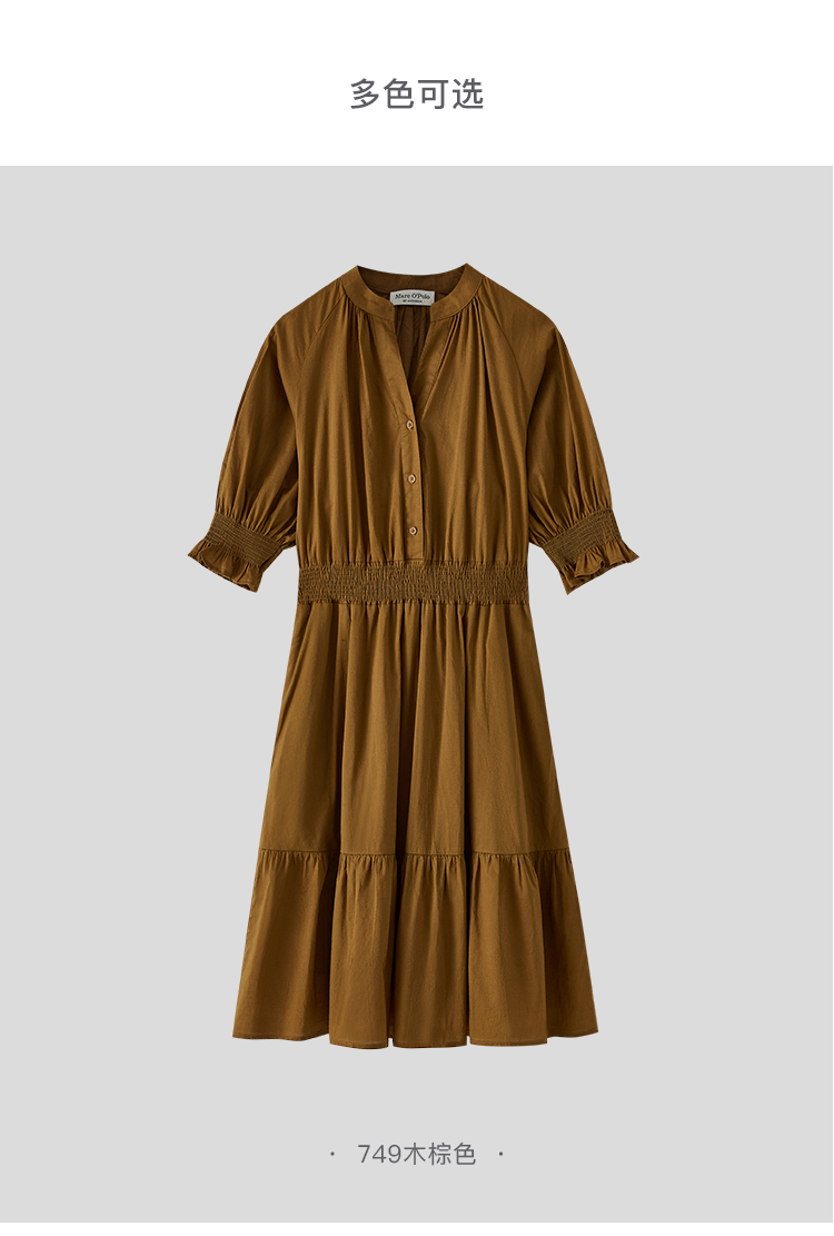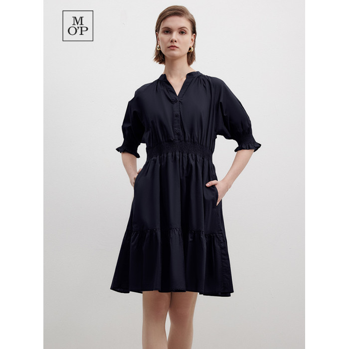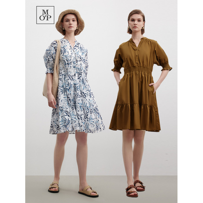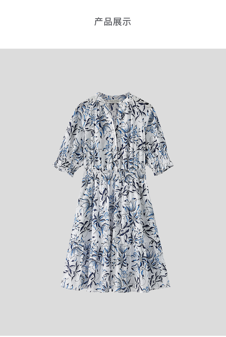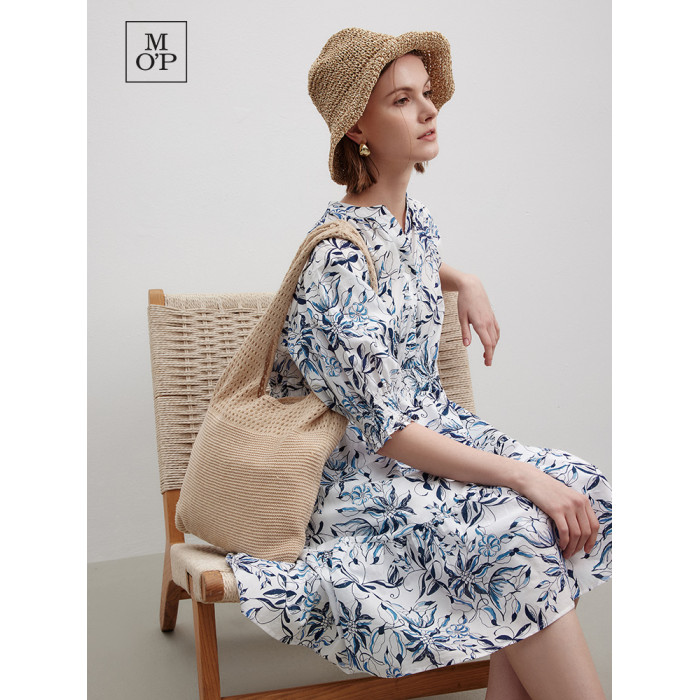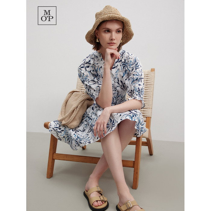Marc O'Polo/MOP 夏季新款時尚新中式印花司馬克腰氣質中袖連衣裙