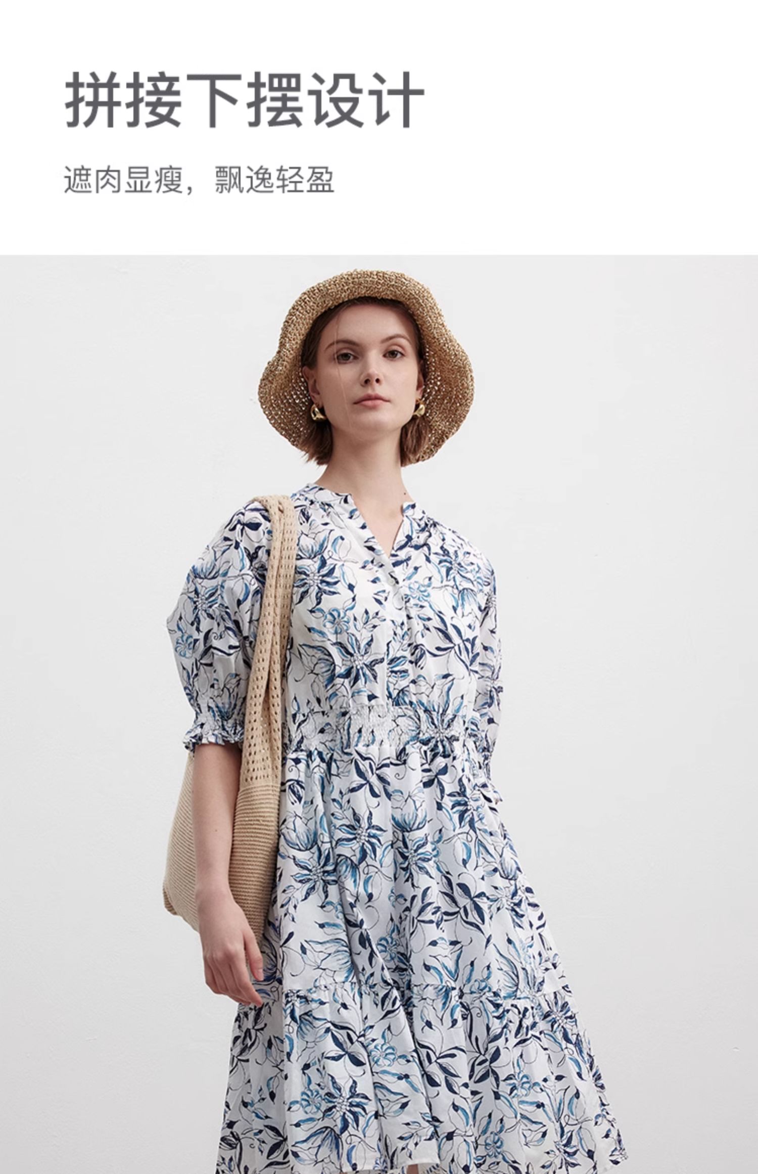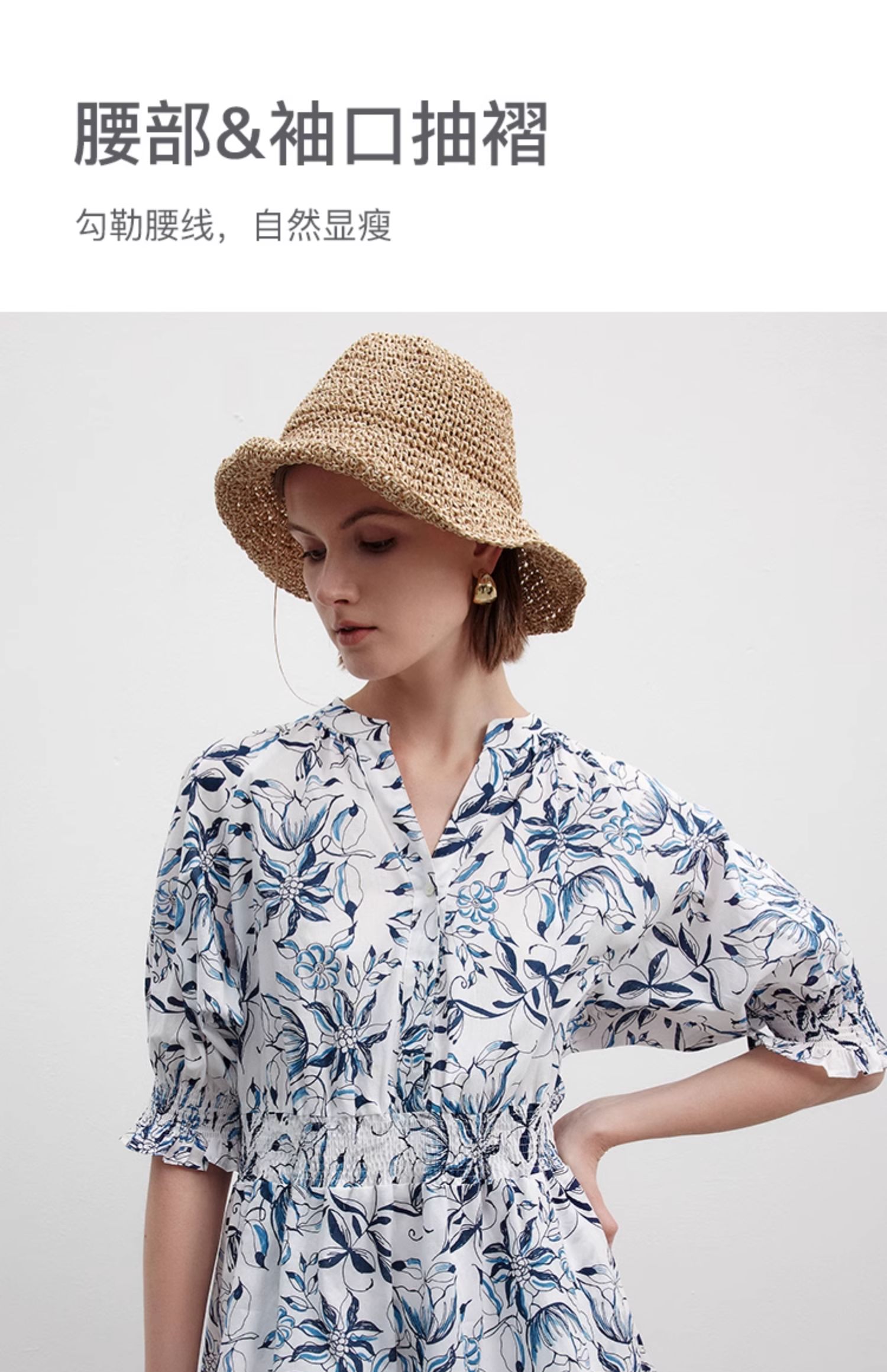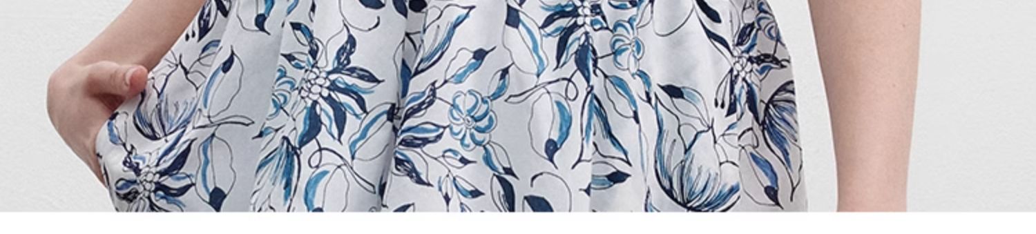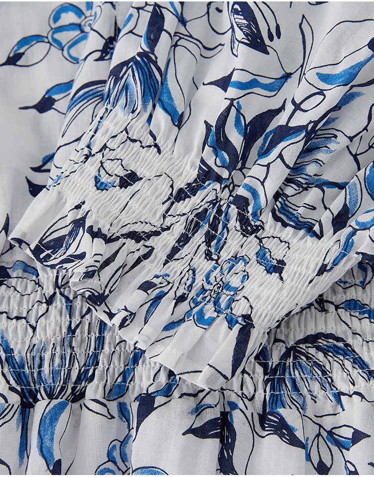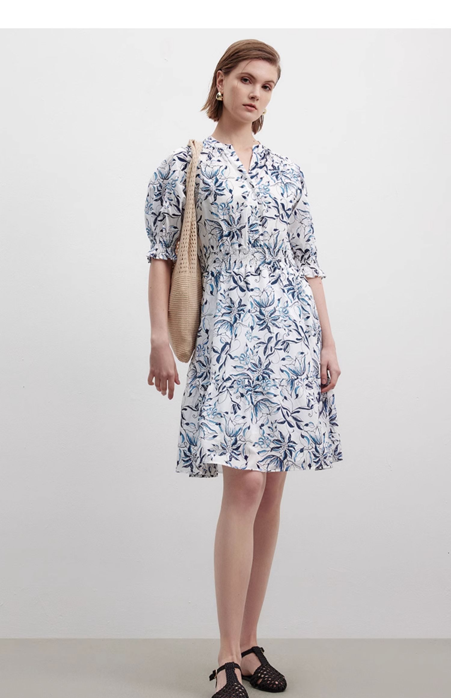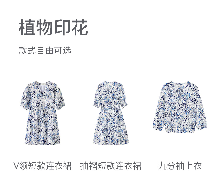 Marc O'Polo/MOP 夏季新款時尚新中式印花司馬克腰氣質中袖連衣裙