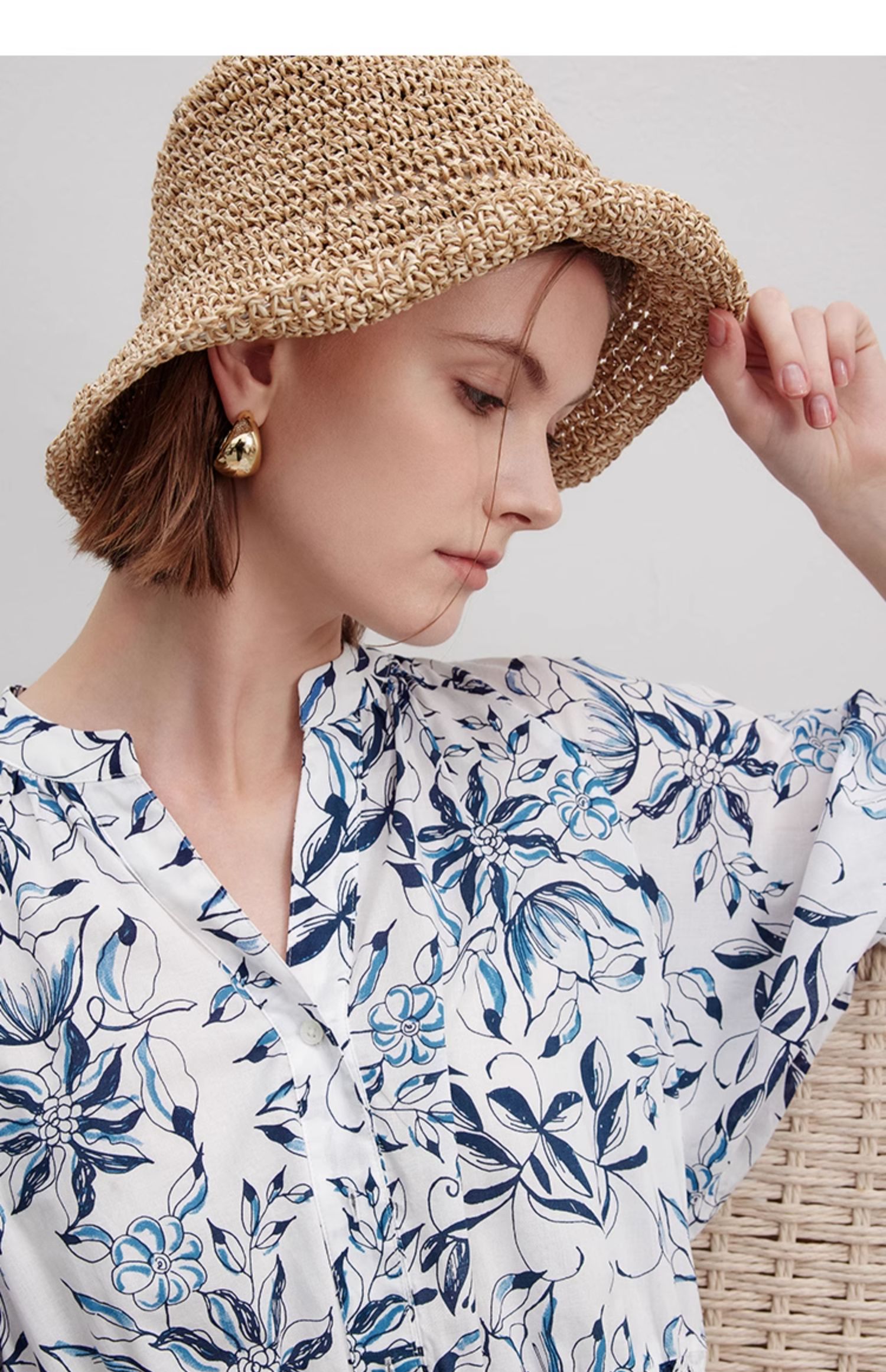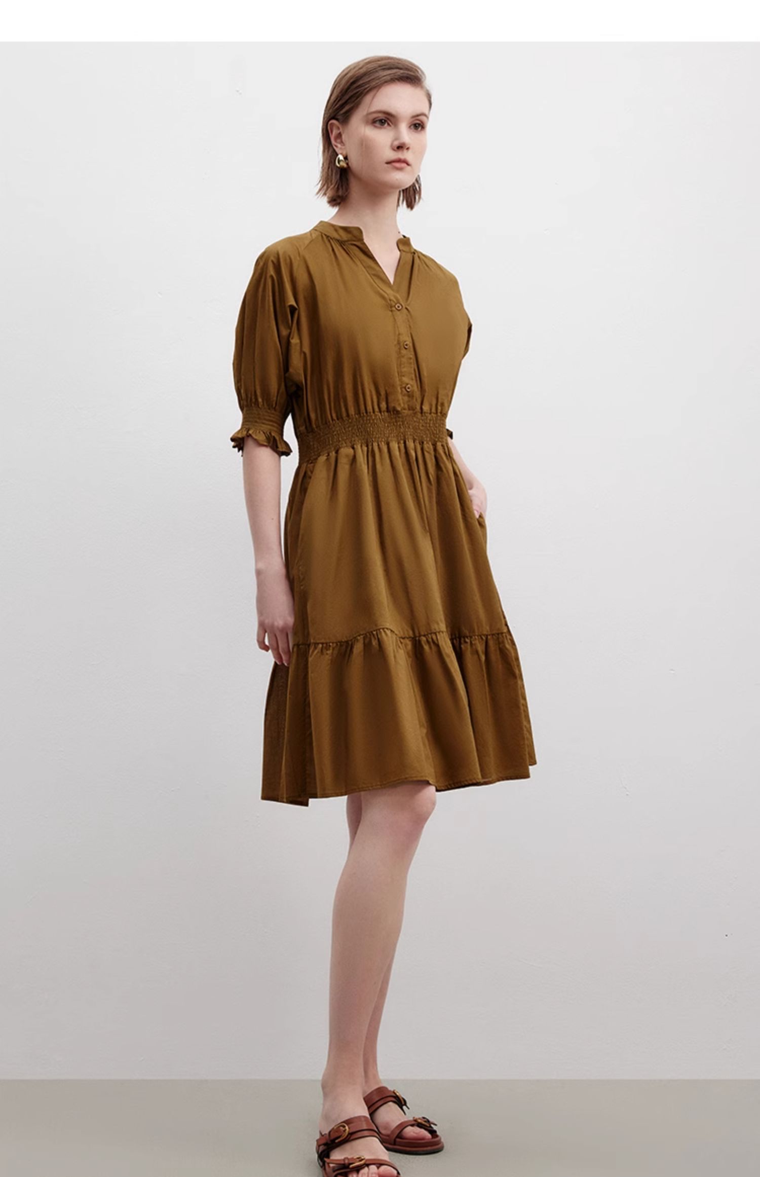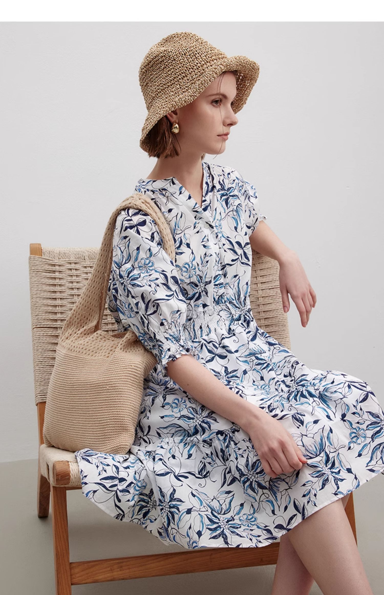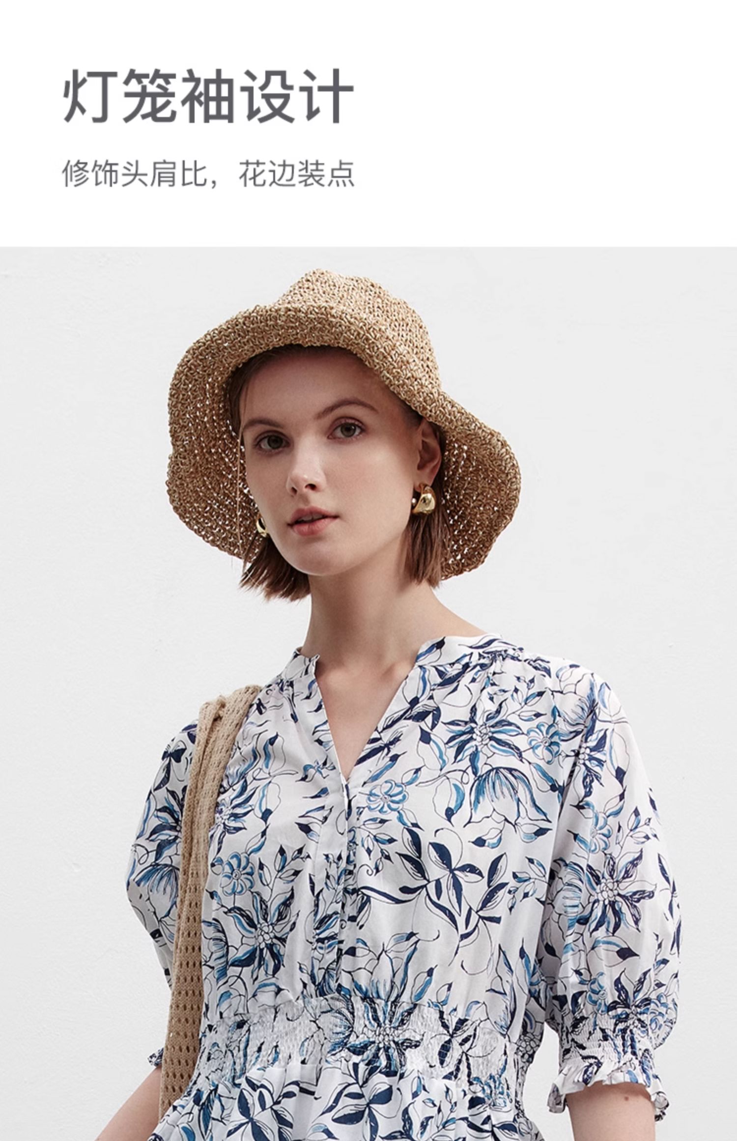 Marc O'Polo/MOP 夏季新款時尚新中式印花司馬克腰氣質中袖連衣裙