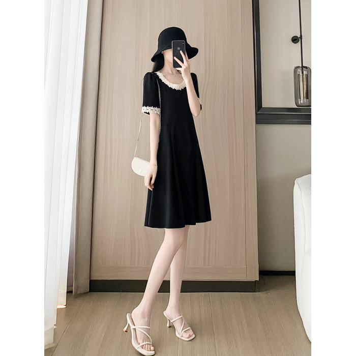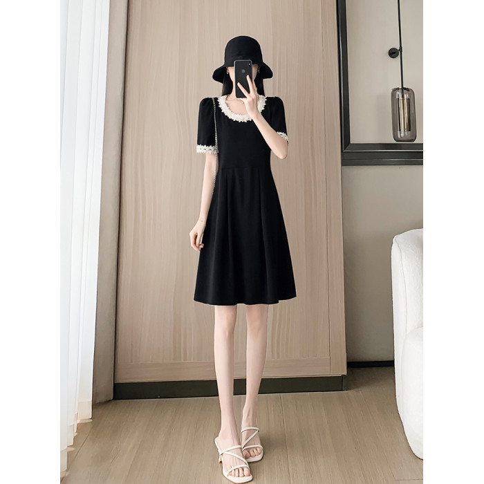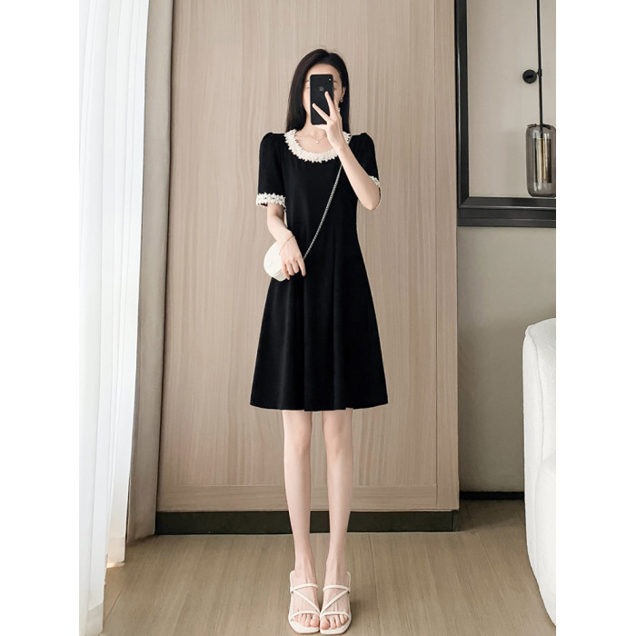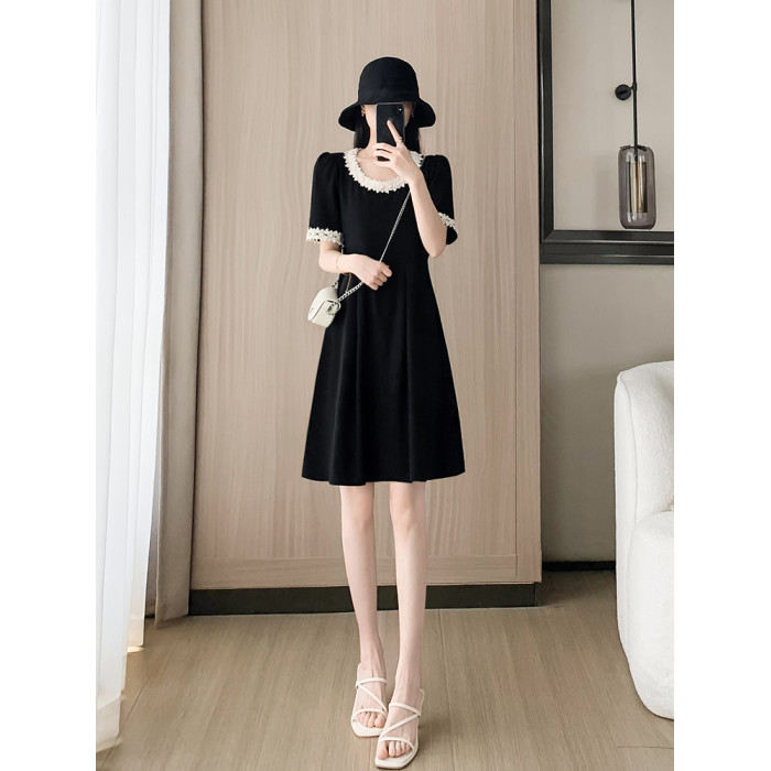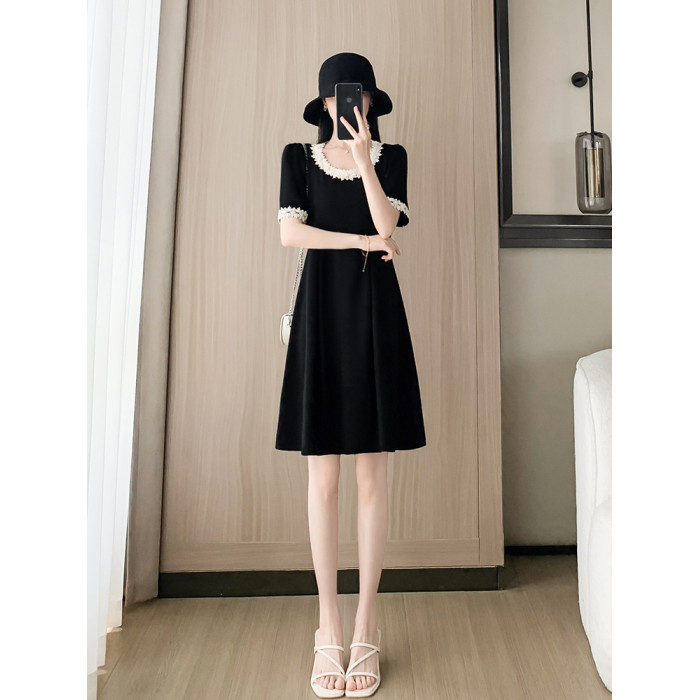 法式高級感黑色連衣裙夏女2025新款顯瘦氣質小黑裙a字裙子小個子