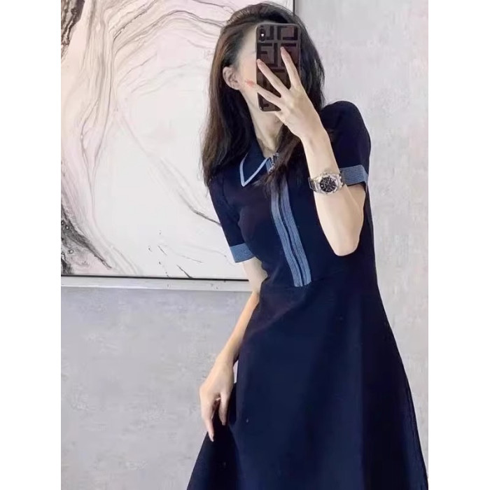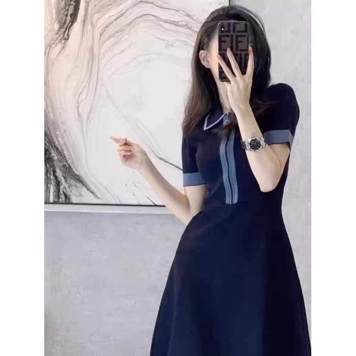 歐洲站夏季女裝2025新款法式小個子氣質修身顯瘦polo領連衣裙薄款